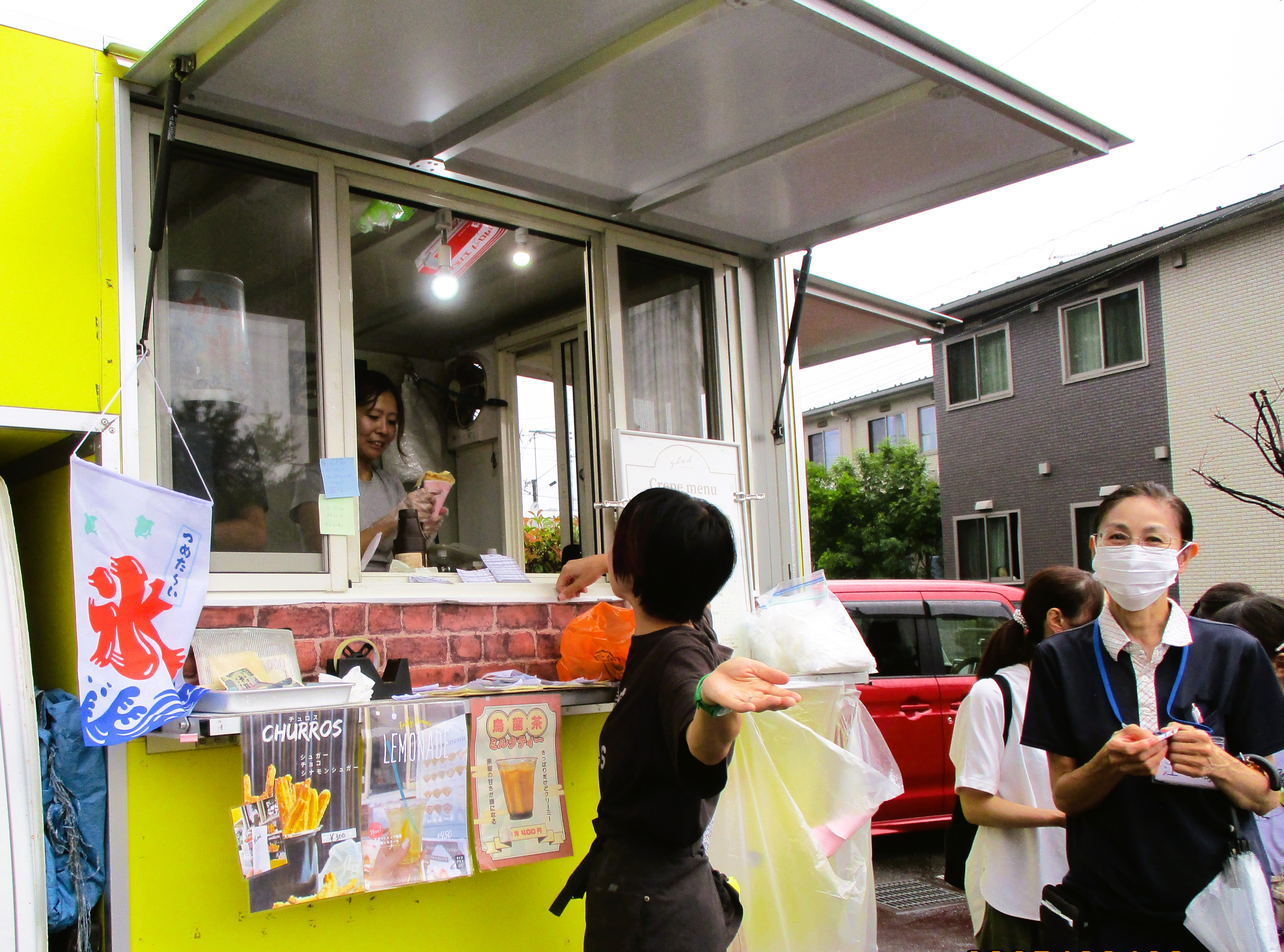 ミモザ川越4事業所合同『ミモザ秋祭り』を開催しました! 時より降っていた小雨を吹き飛ばす 和太鼓の圧巻の迫力に感動のあまり涙を流す方も…(*´▽`*) お昼はお祭り弁当、おやつはキッチンカーのクレープやかき氷から選んで頂きました♡