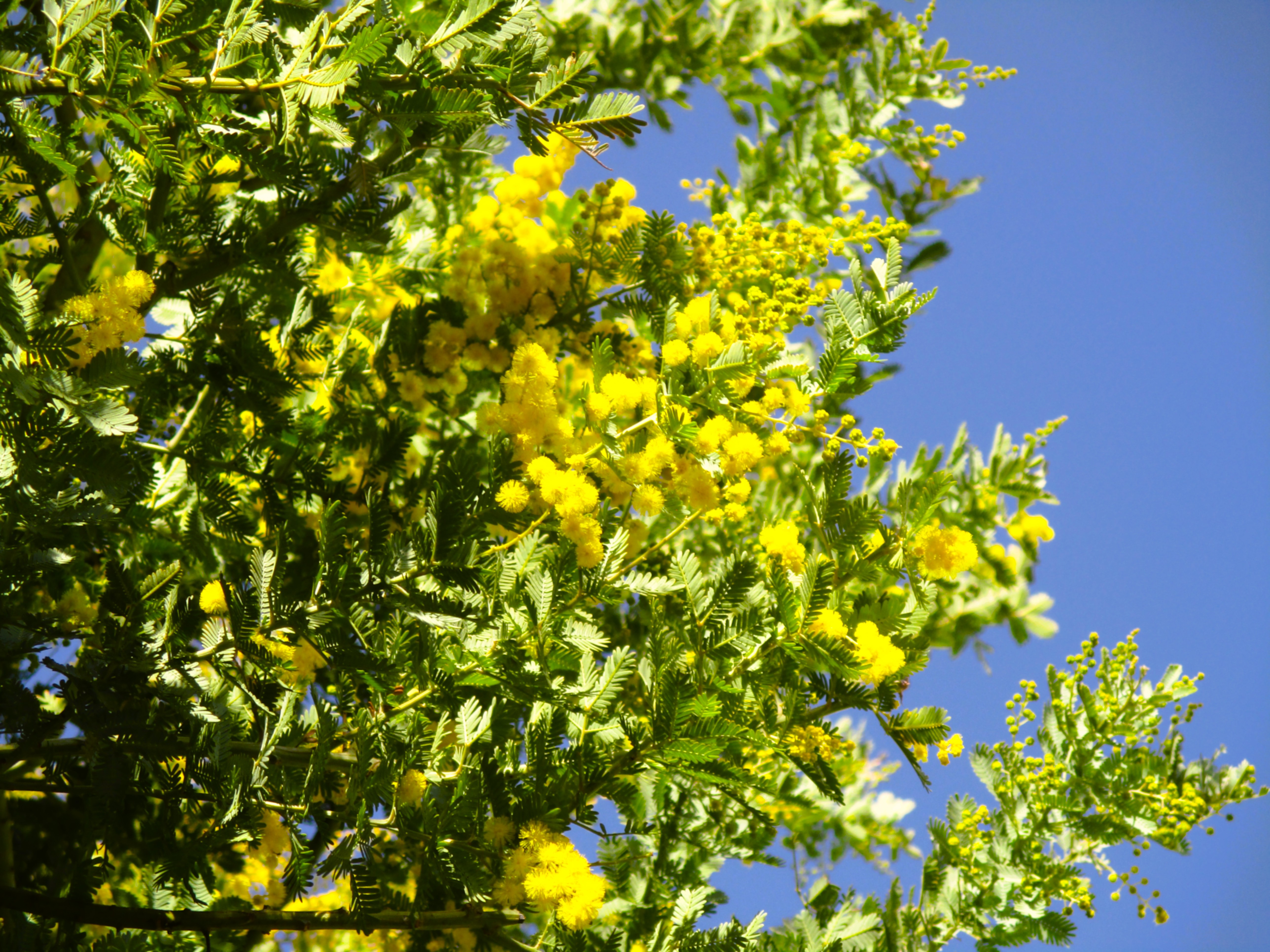 良く晴れた青空に 満開のミモザの花が、暖かい日差しをたっぷりと浴びキラキラと輝いて見えます♡
