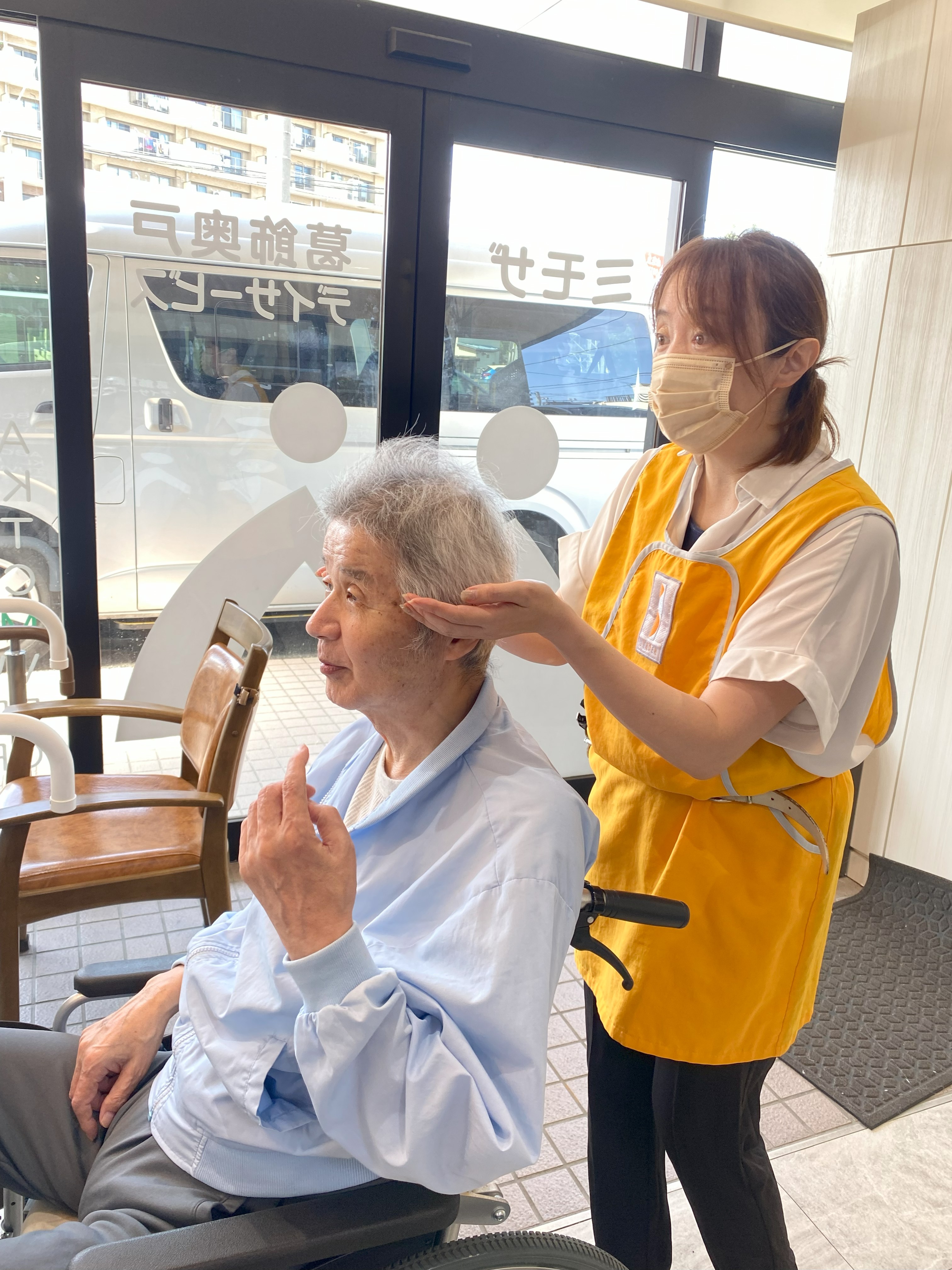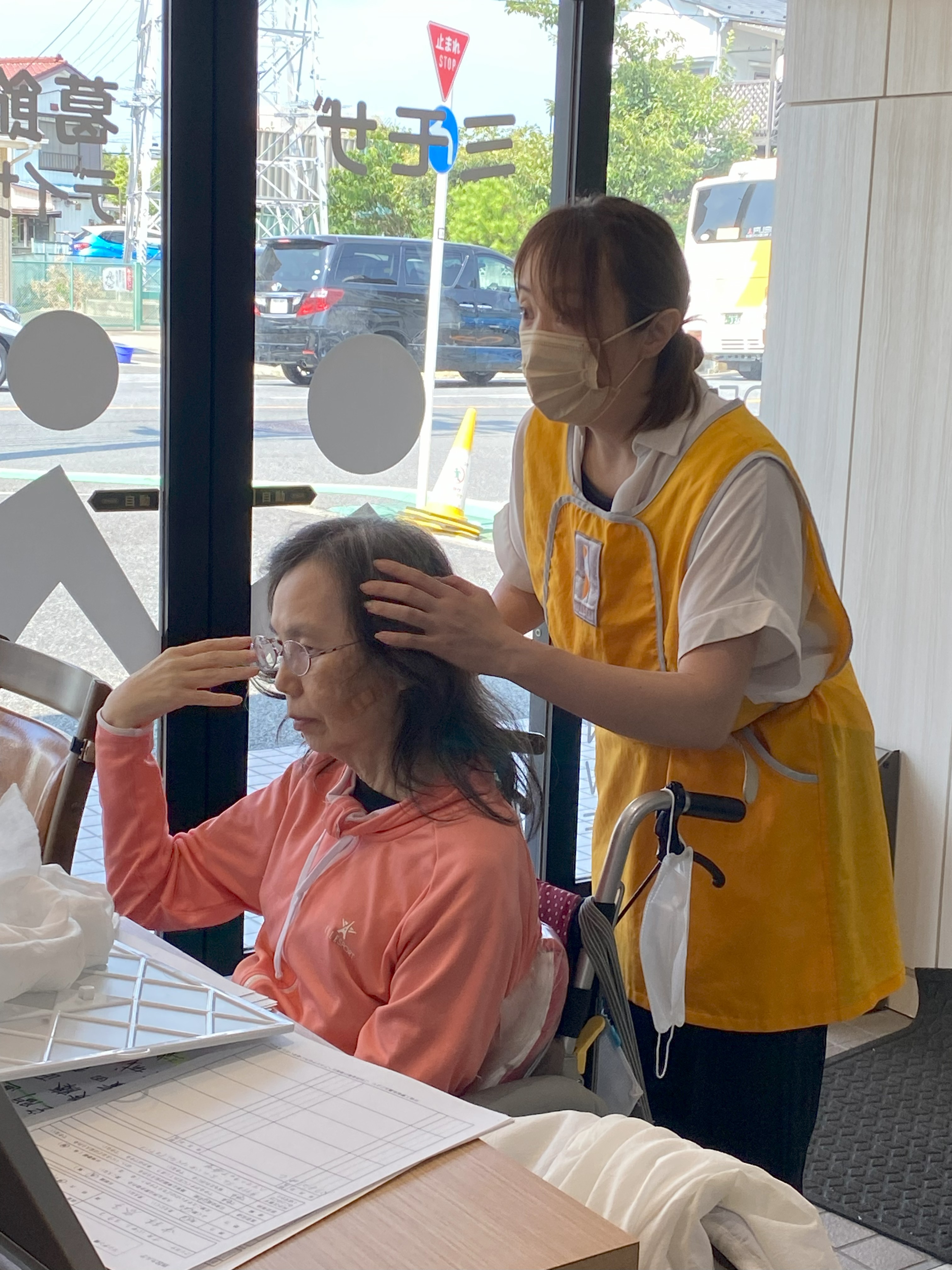 美容師さんに来所いただき希望の利用者様へカットやカラーをお願いしました。※実費