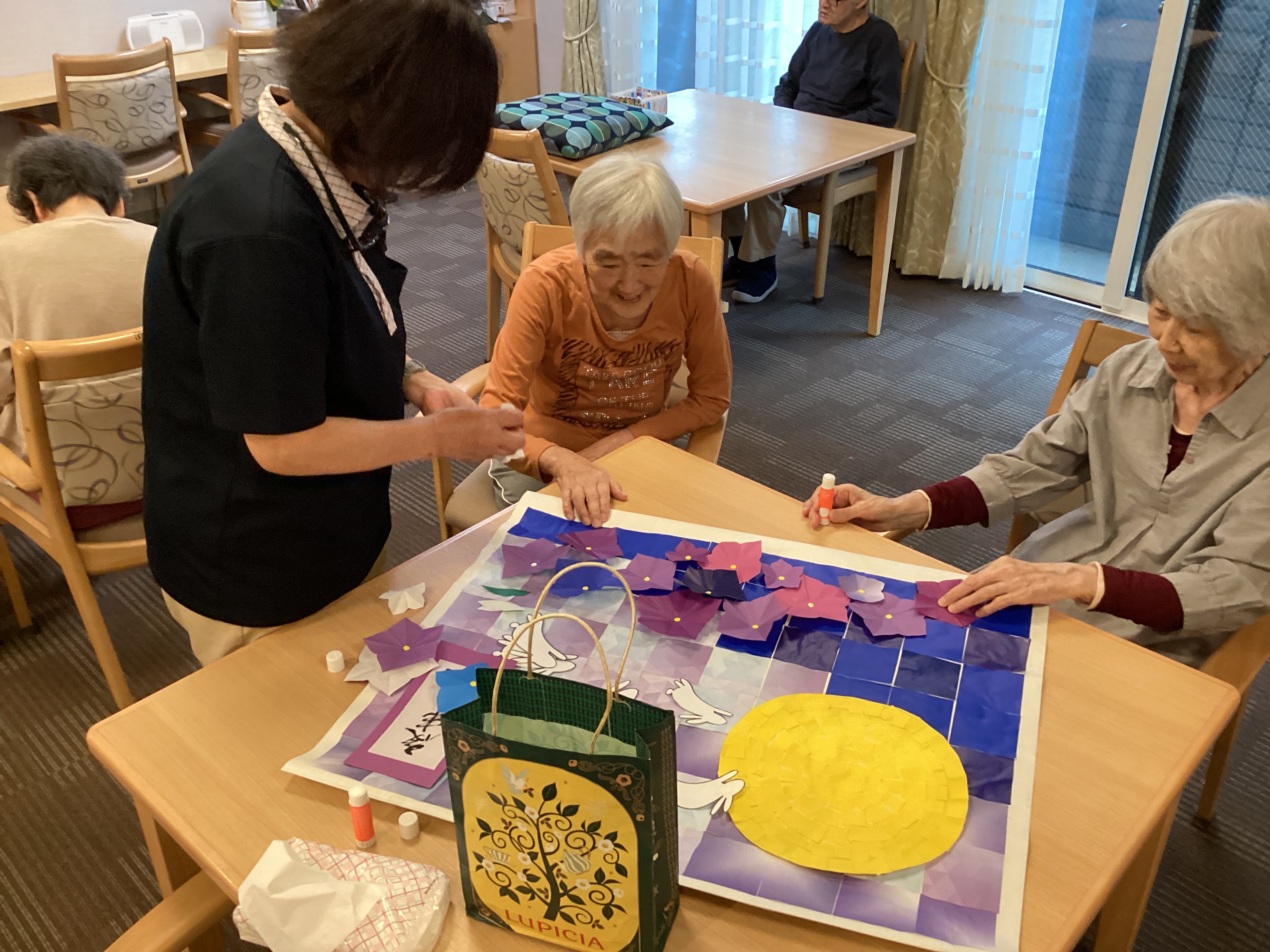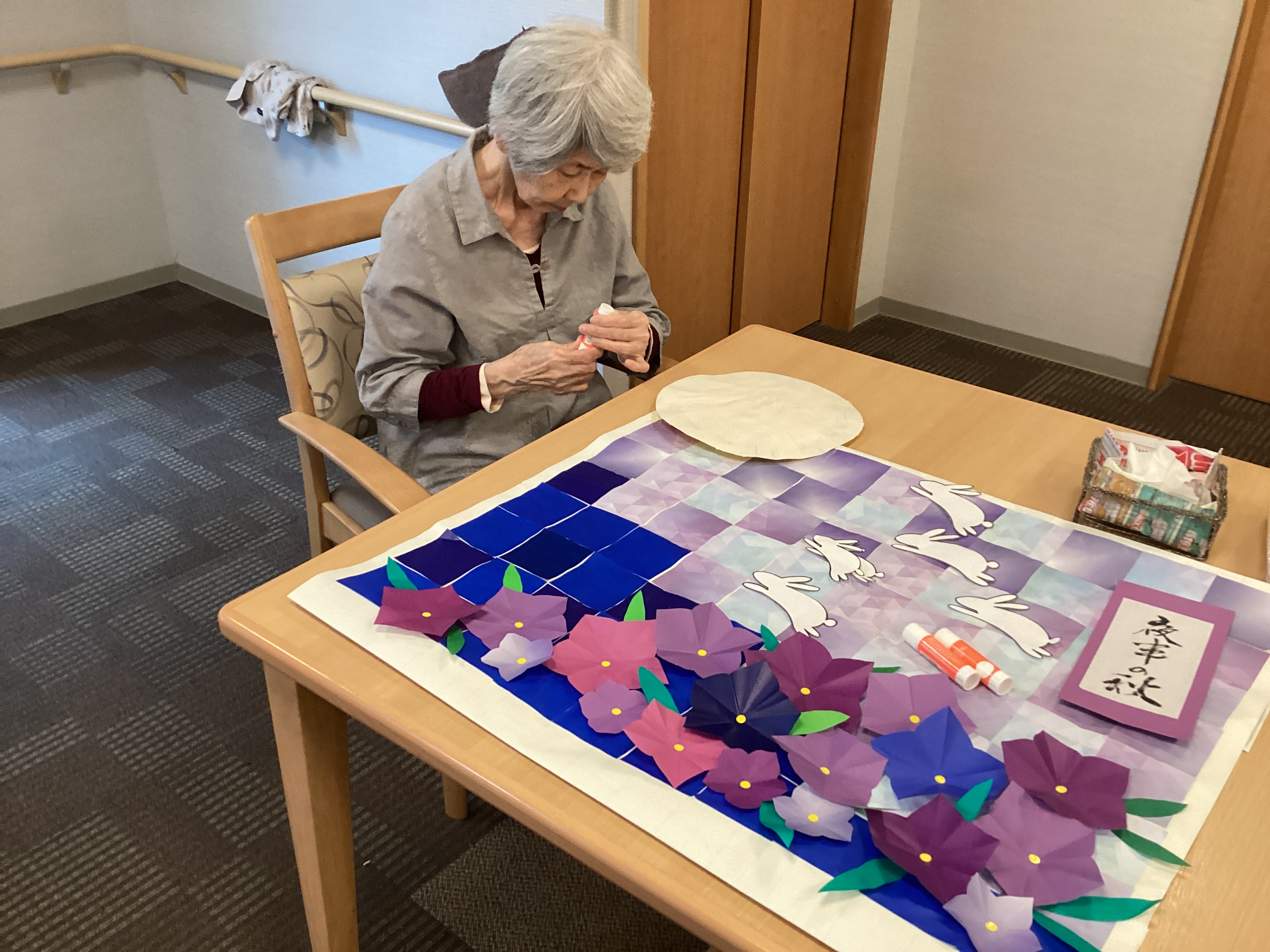 十五夜お月さん見ては~ねる🐰素敵な十五夜が出来ました!すっかりホームの中は秋めいてきました!(^^)!