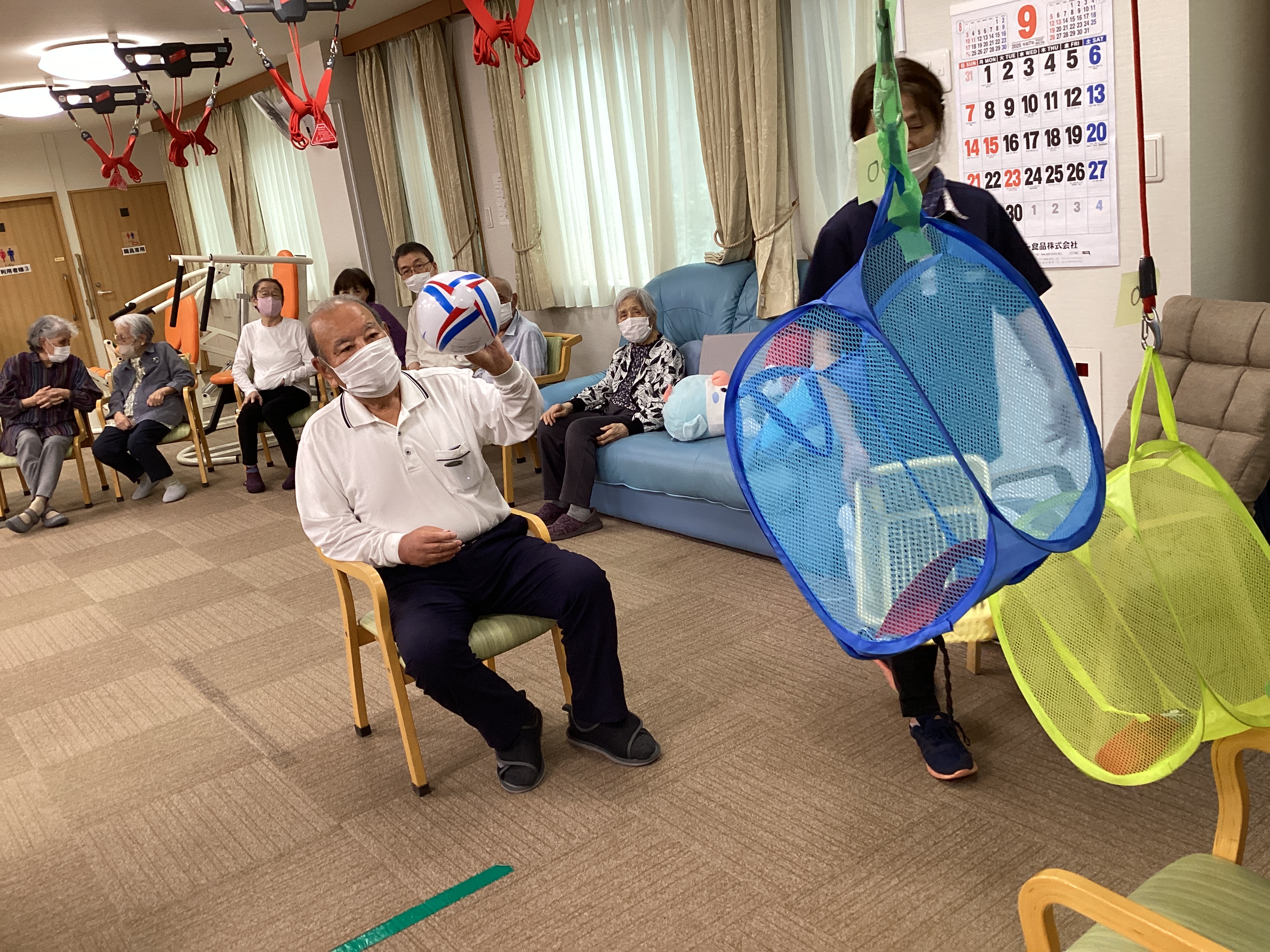 レクリエーションでバスケをしました!そばには美人な応援団長が!! 黄色い声援を浴びて皆さんシュートを決めていきます!!