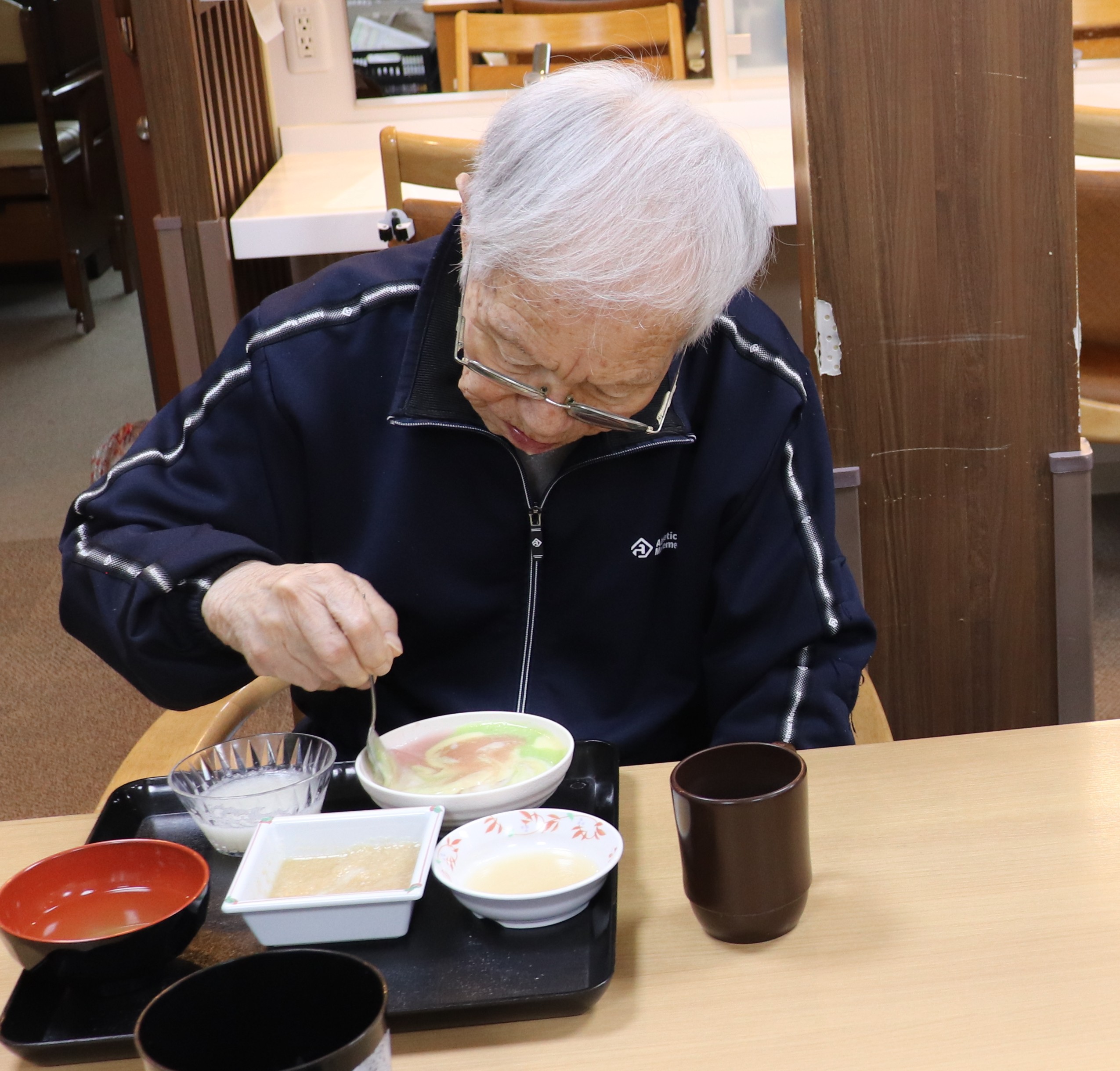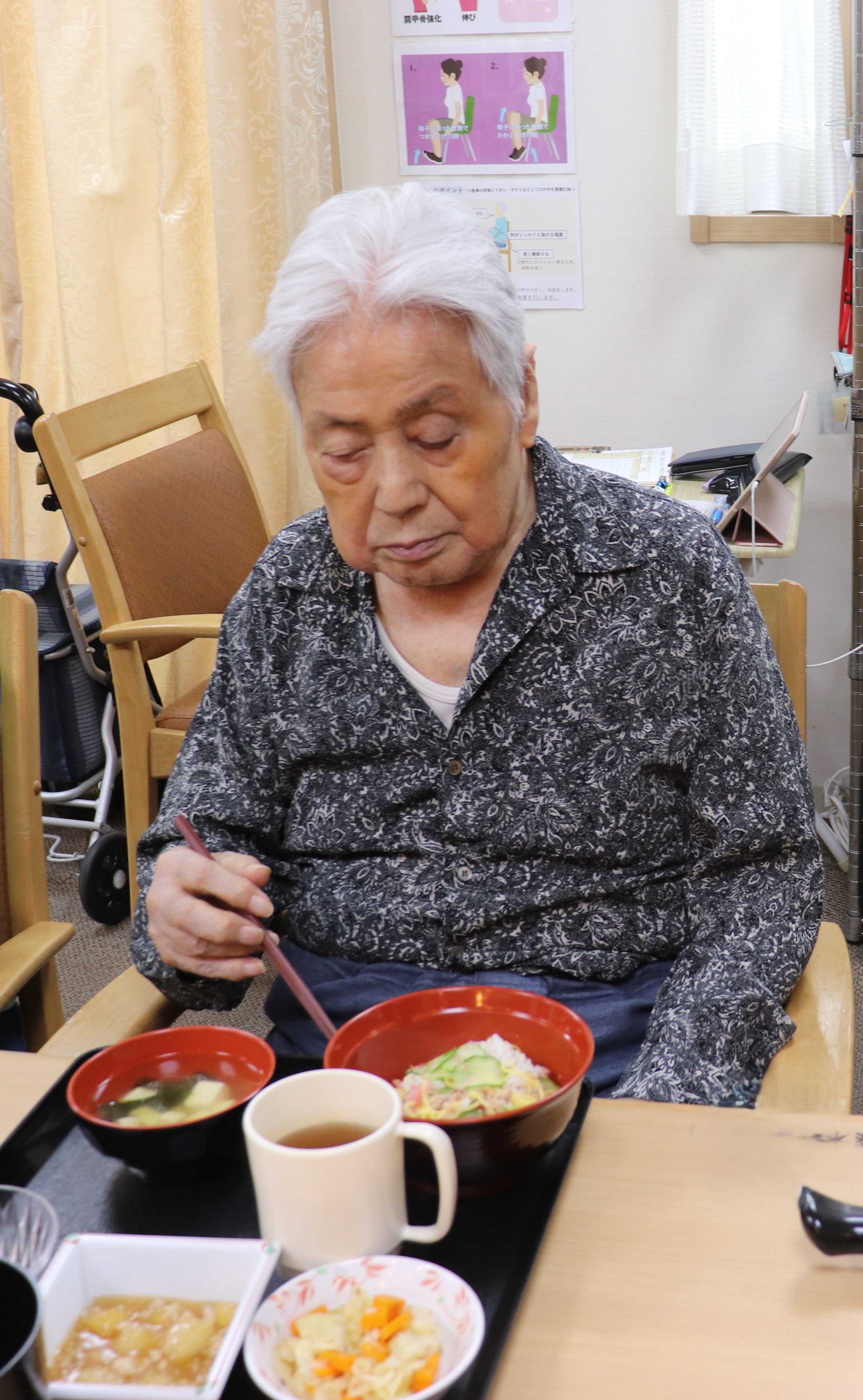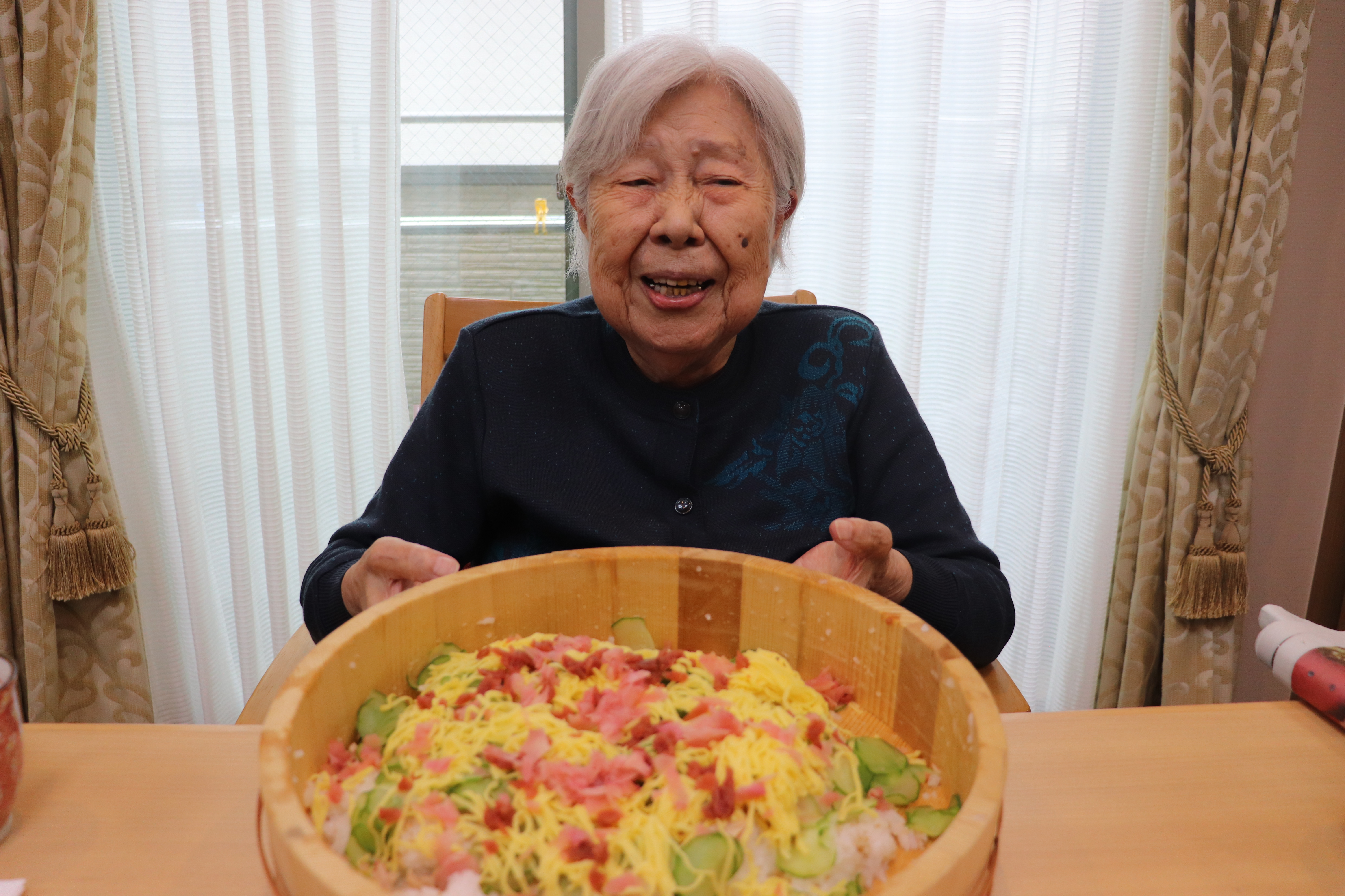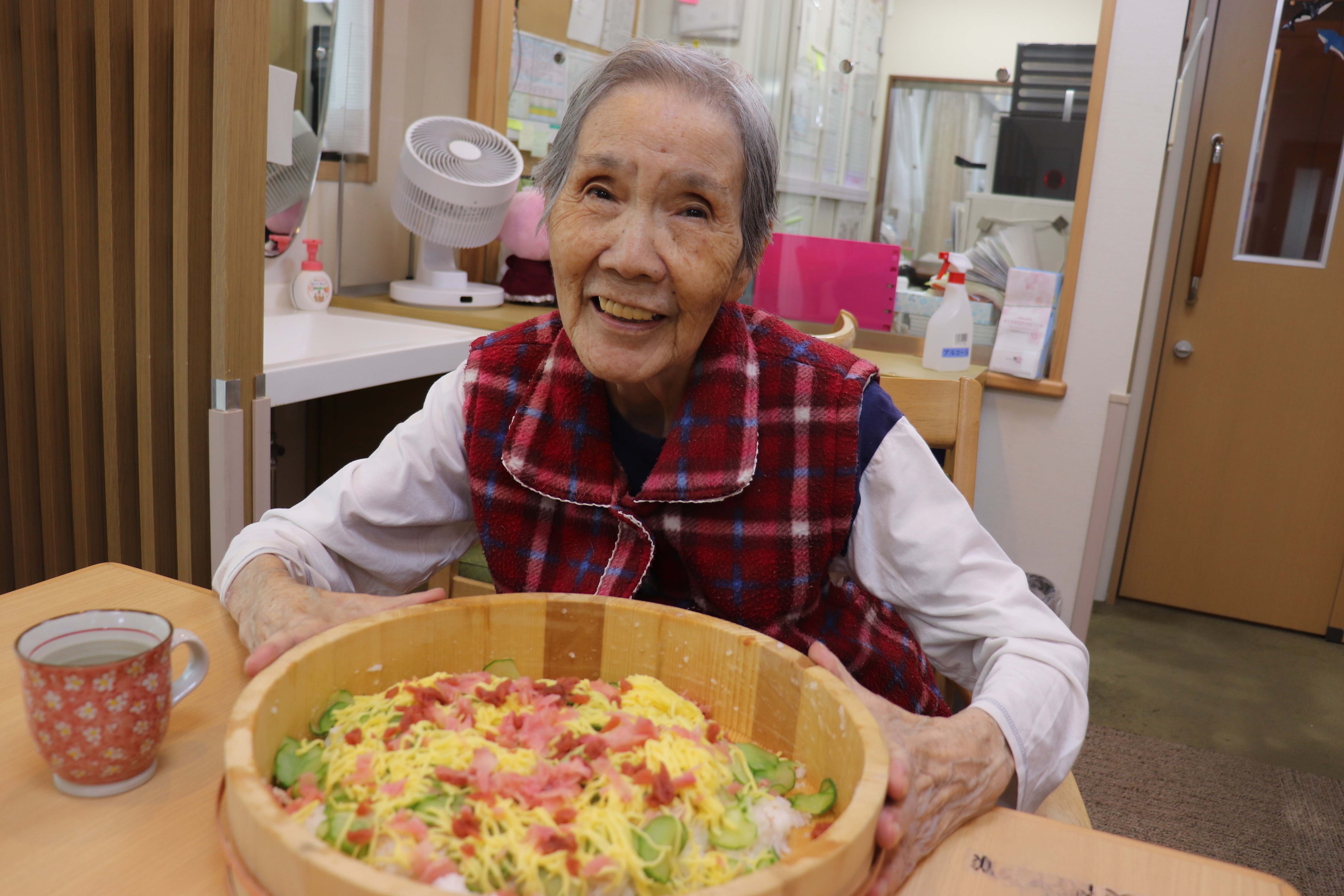 梅の香りがほんのりと(^^♪ 女性のご利用者様のご協力もあり 美味しい「梅ちらし寿司」が完成♪♪ 男性ご利用者様はカメラで撮られているのも分からないくらい、夢中((´∀`*))ヶラヶラ