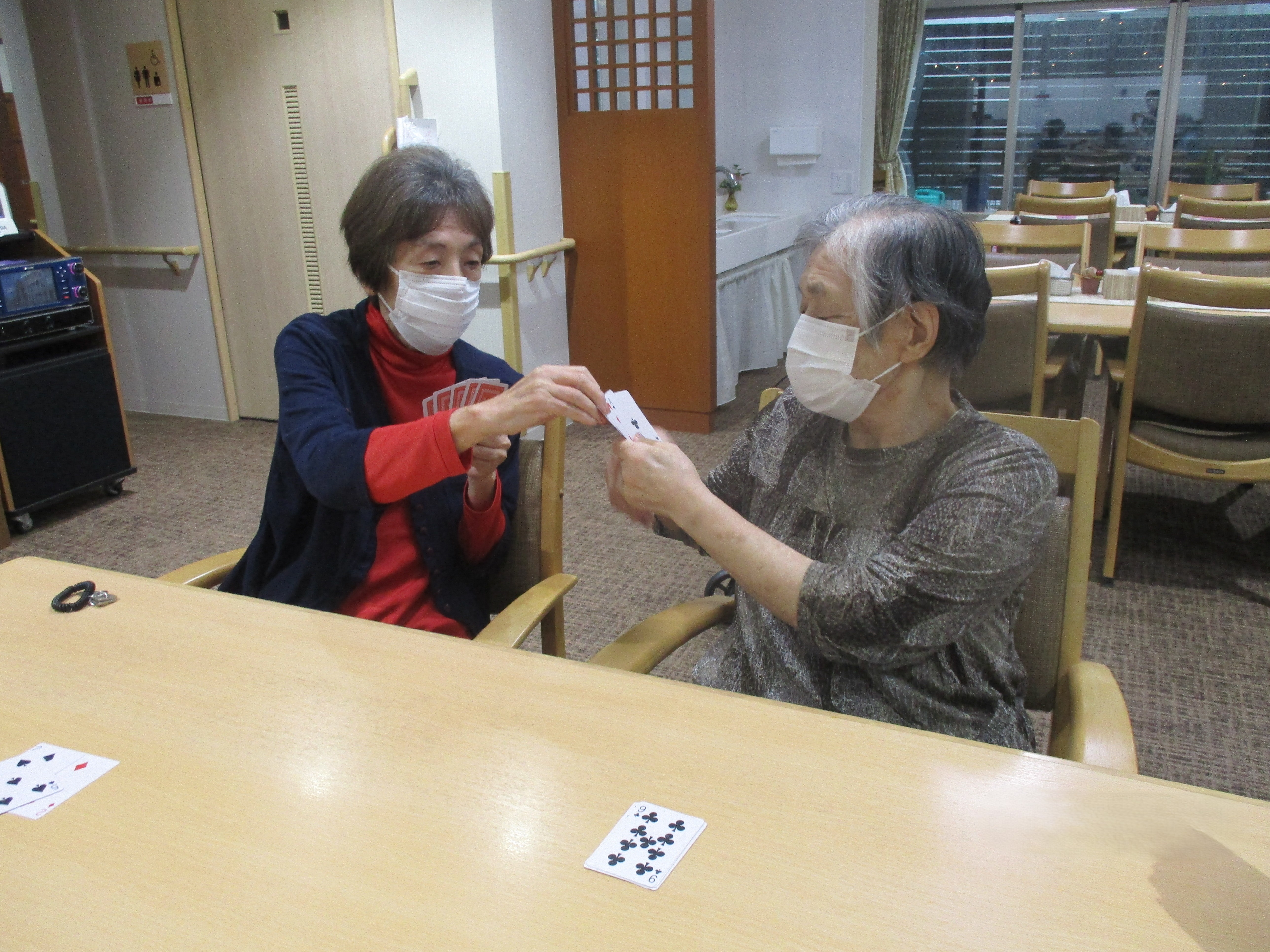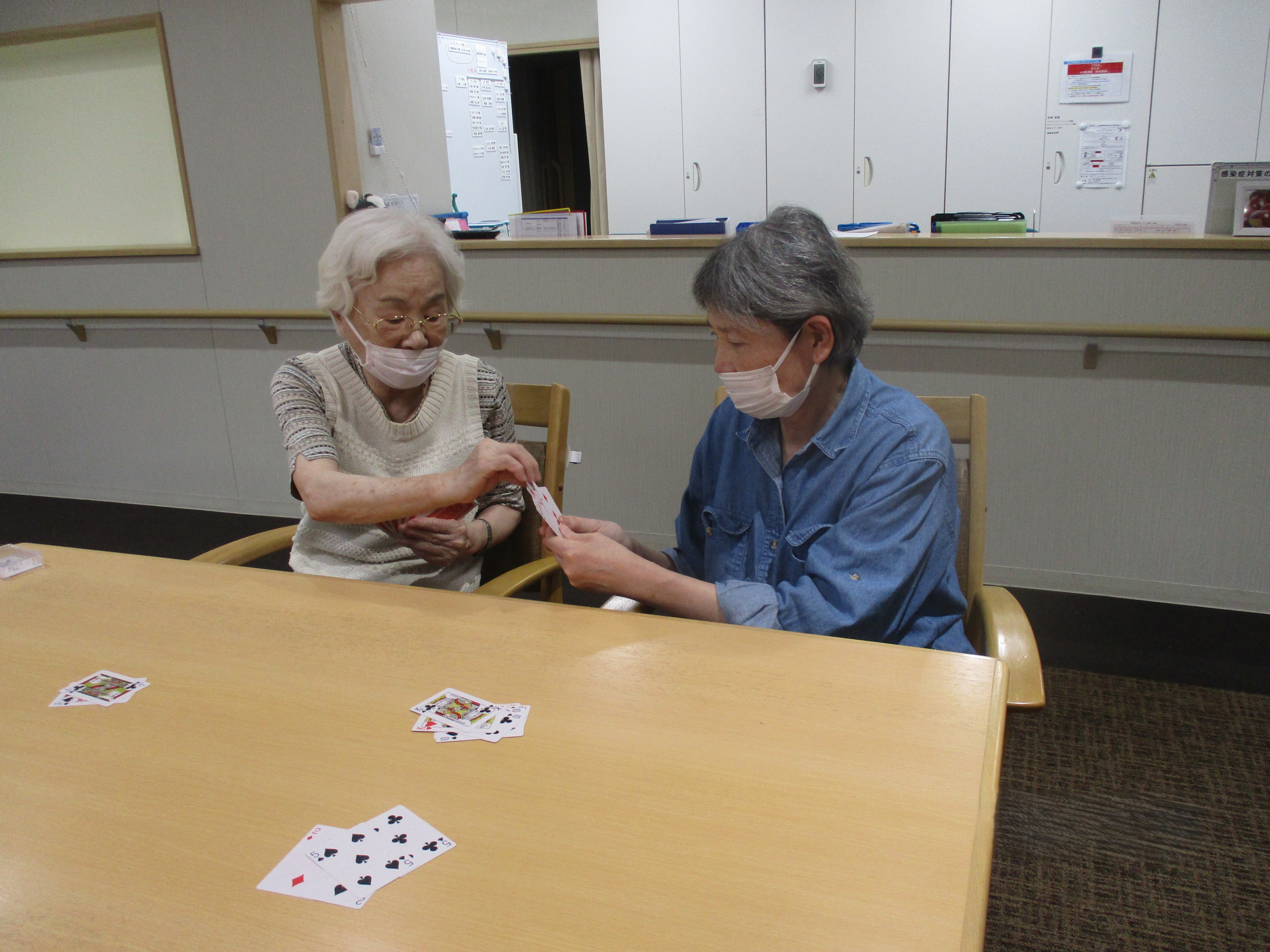 本日の午後のレクリエーションはトランプで、皆様ババ抜きを楽しんでいらっしゃいました♠。