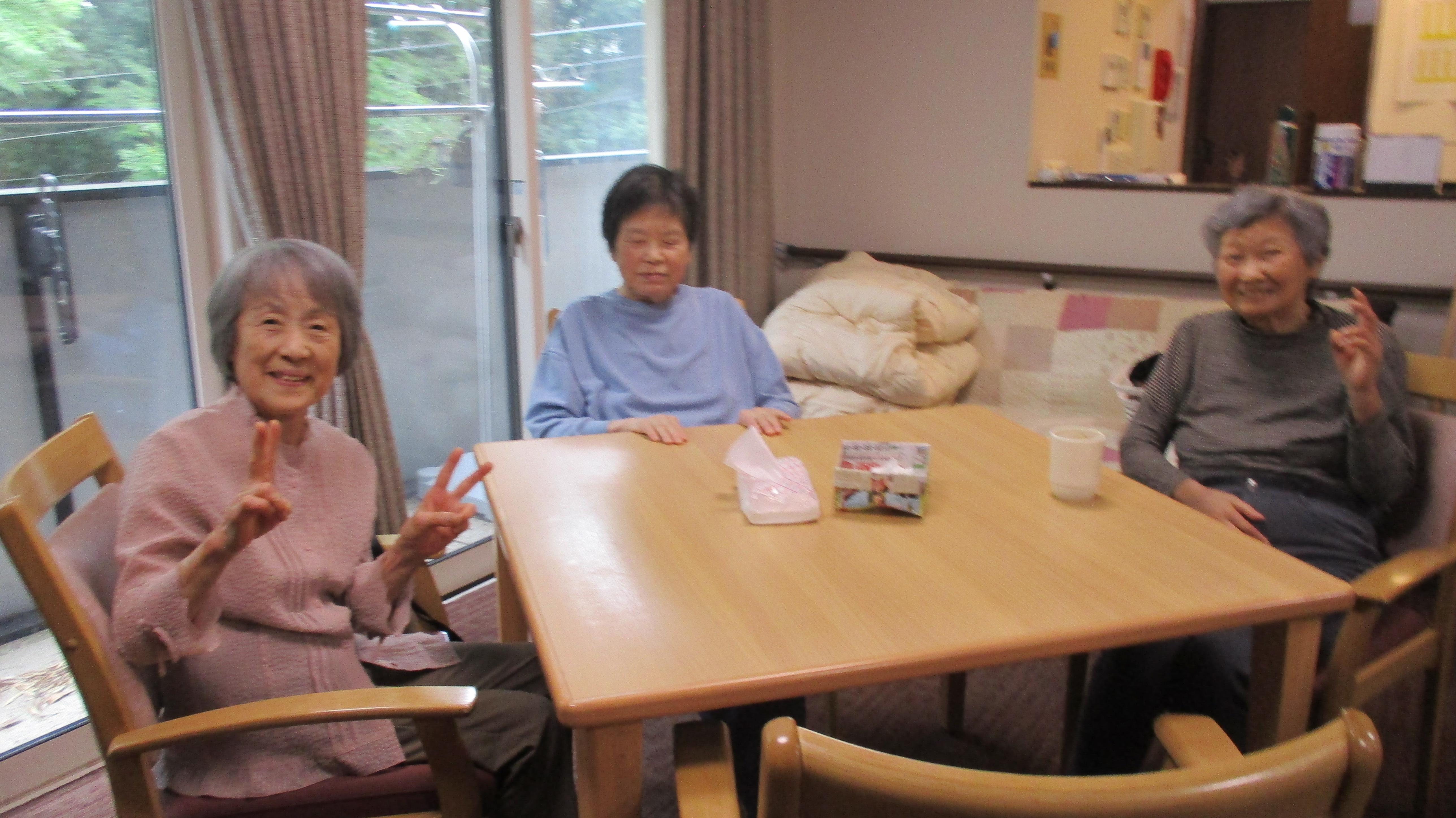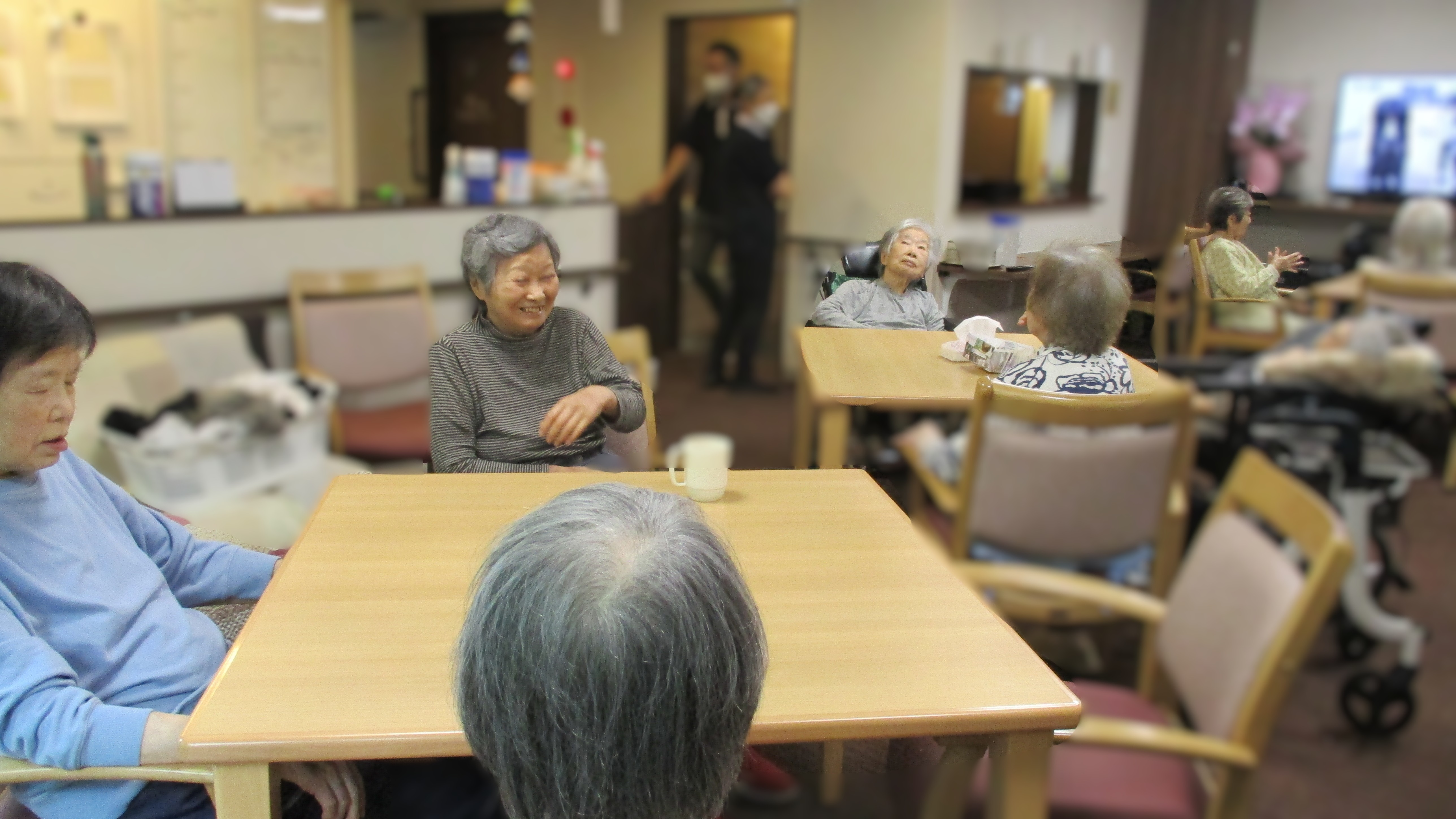 朝食後に一呼吸。「写真を撮るからよろしくおねがいします!!」と2階に上がっていきますと、みんな和やかにお話をされていました。「なにかいいことあったの?すごいみんなにこにこしてて。」と職員が言うと「何もないわよ。」と笑顔で返されます。とても素敵な時間。