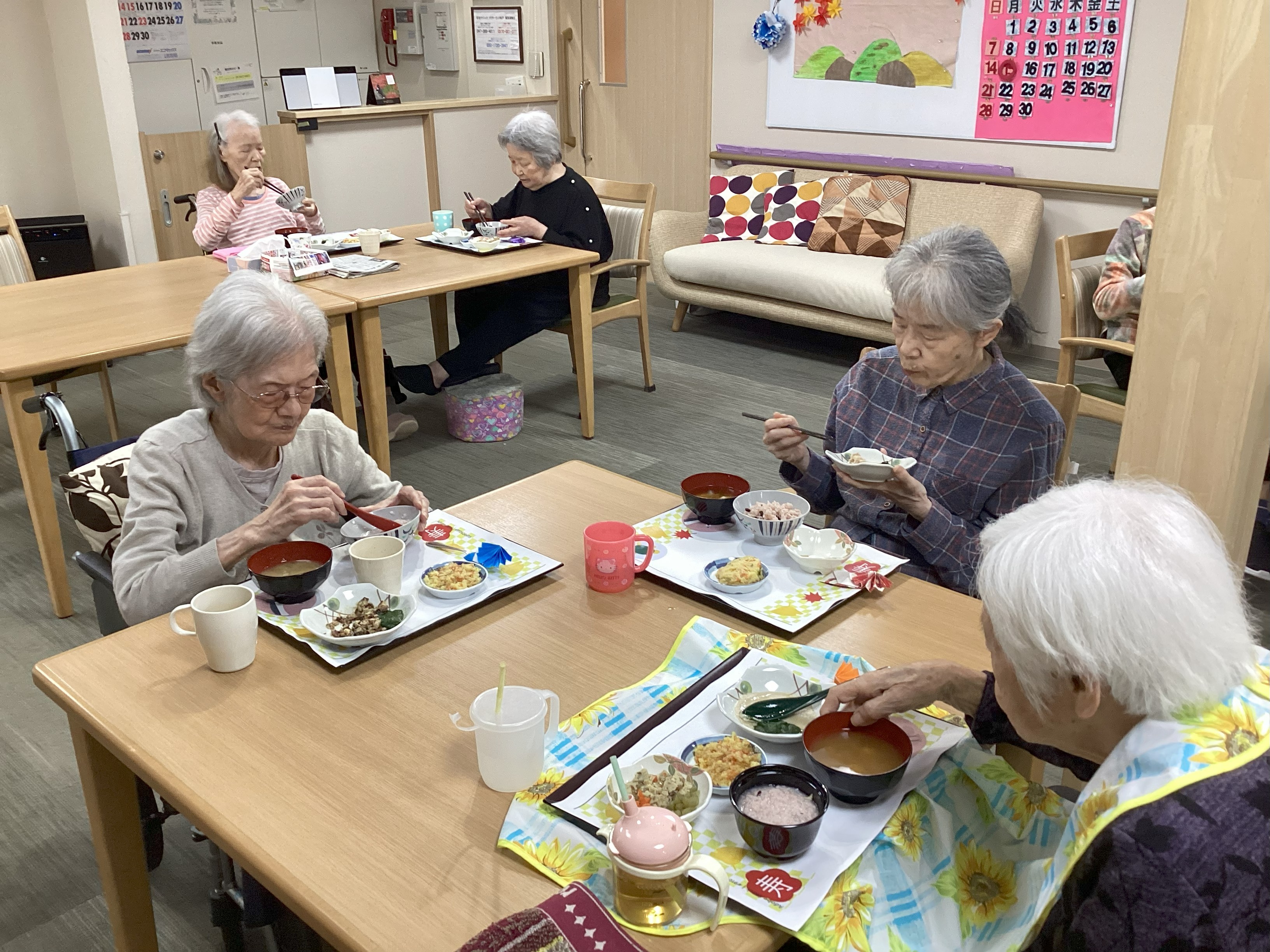 お赤飯に煮物天ぷらもついて豪華なランチ!皆さんぺろりと召し上がっていました。 健康は美味しい食事から!