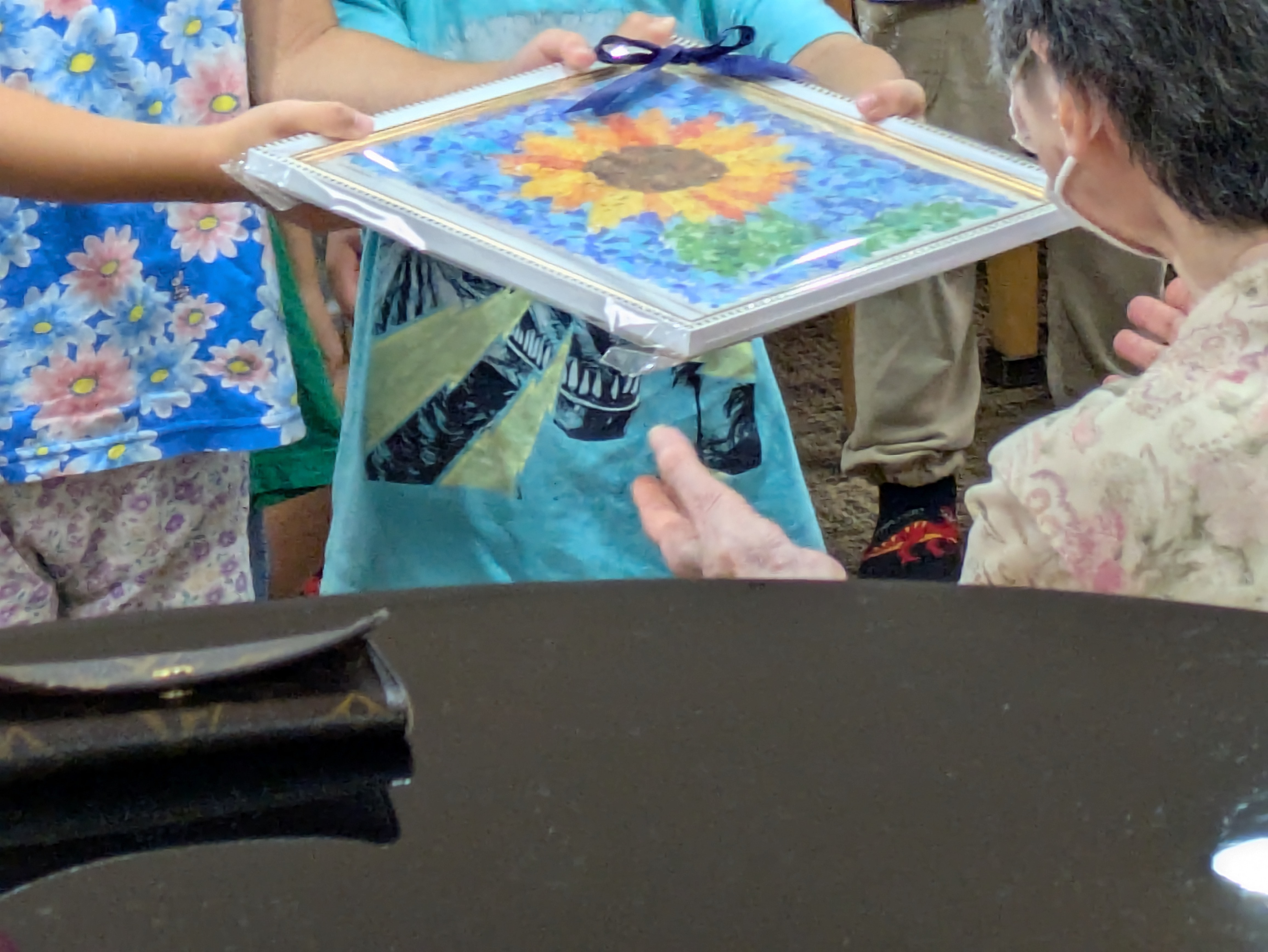 これ以上細くならない程に目を細めて、涙も流しながら可愛い姿を楽しんでいました。園児から卵の殻で作ったヒマワリのプレゼントも!