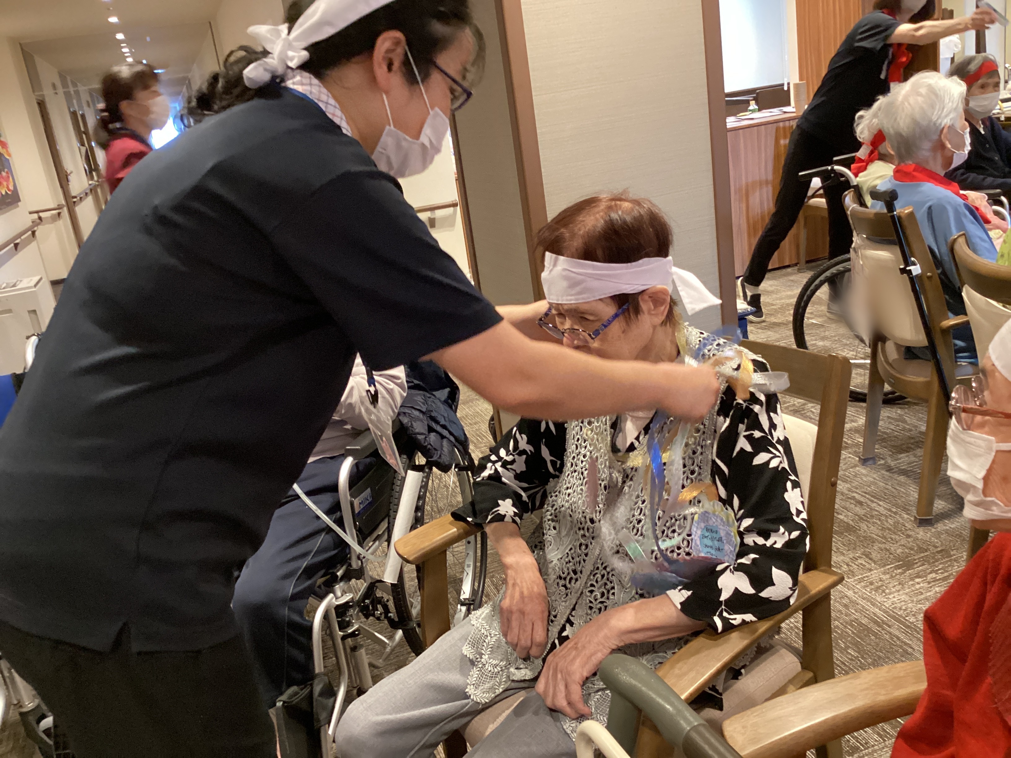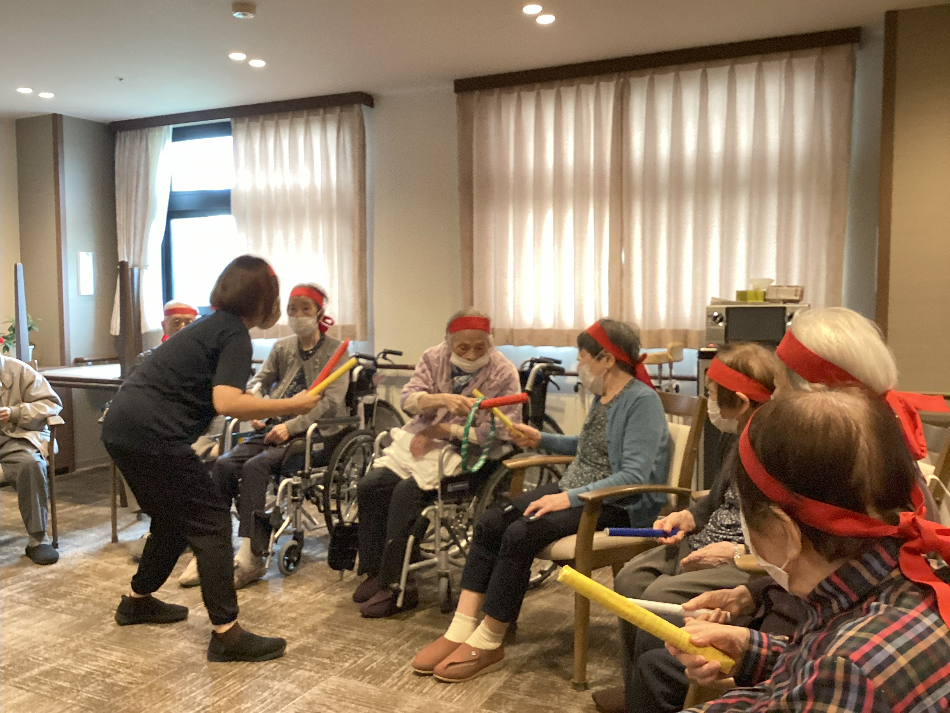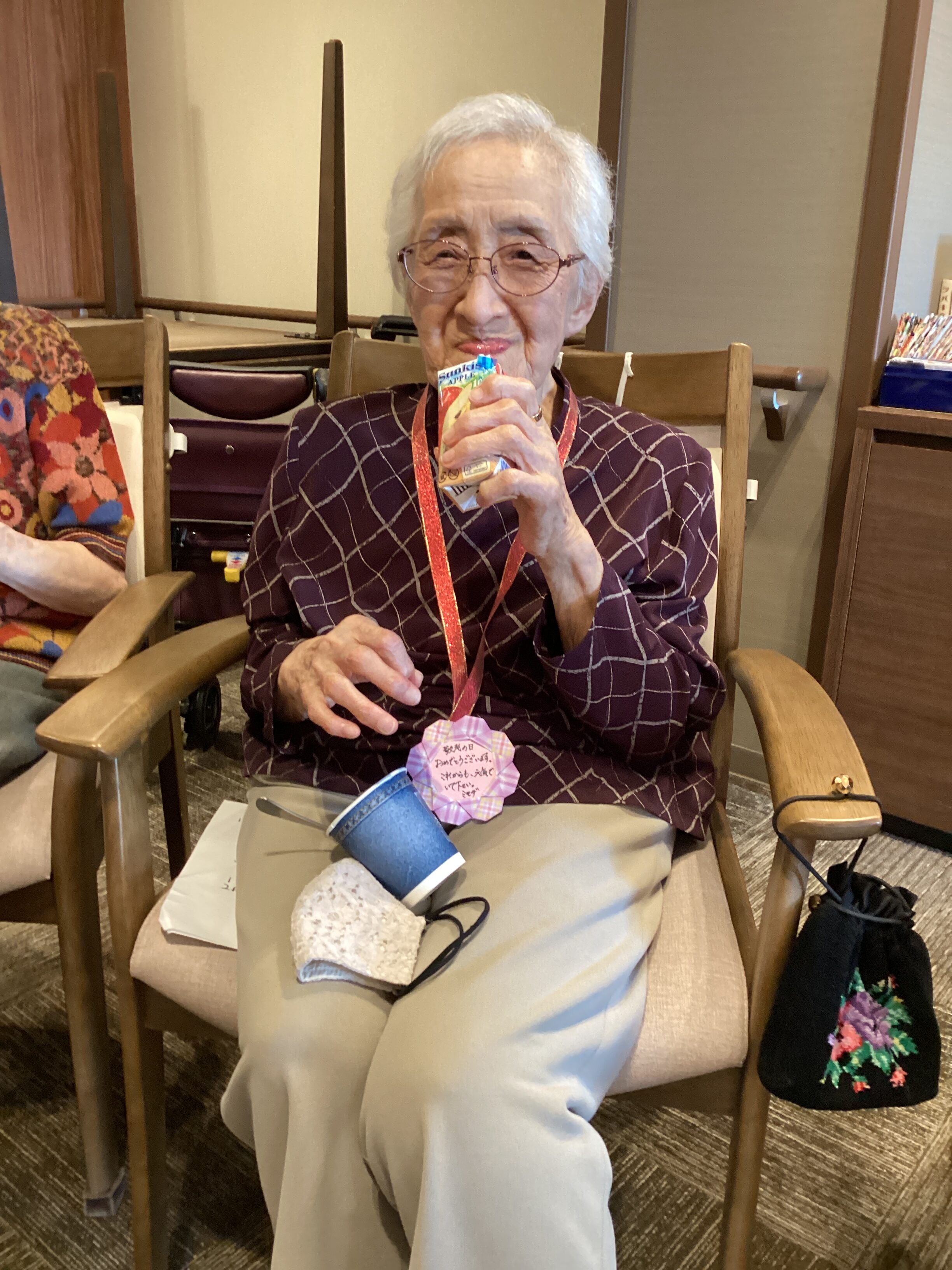 先日、運動会を行いました。 当日は誰でも参加できるような種目でした! 運動の後は、美味しいジュースとおやつを召し上がりました。 また最後には、職員手作りのメダルのプレゼントもありました。 みなさん喜んでもらえて良かったです。