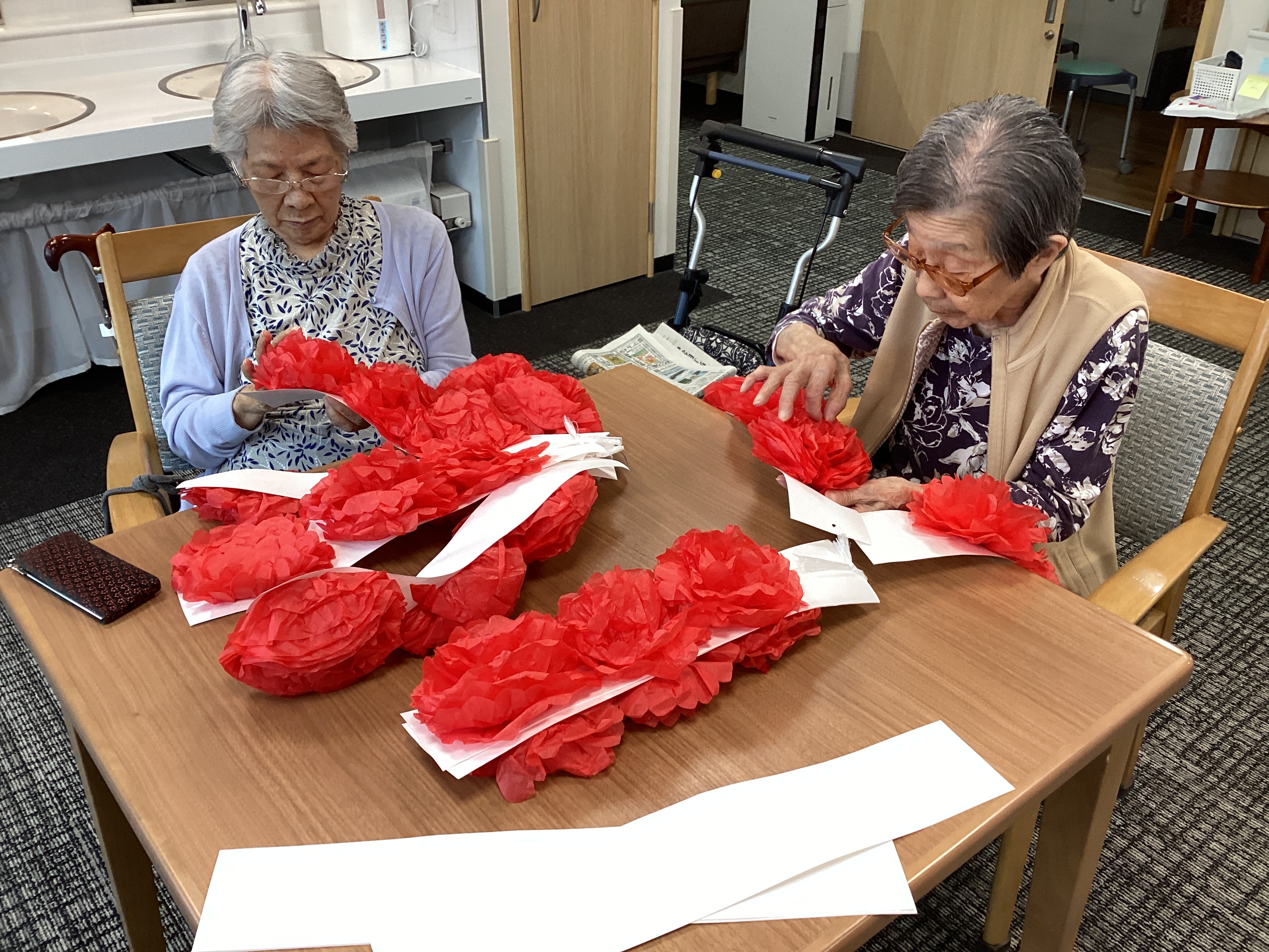 敬老会の飾りづくりを手伝っていただきました。 敬老会が待ち遠しいですね!