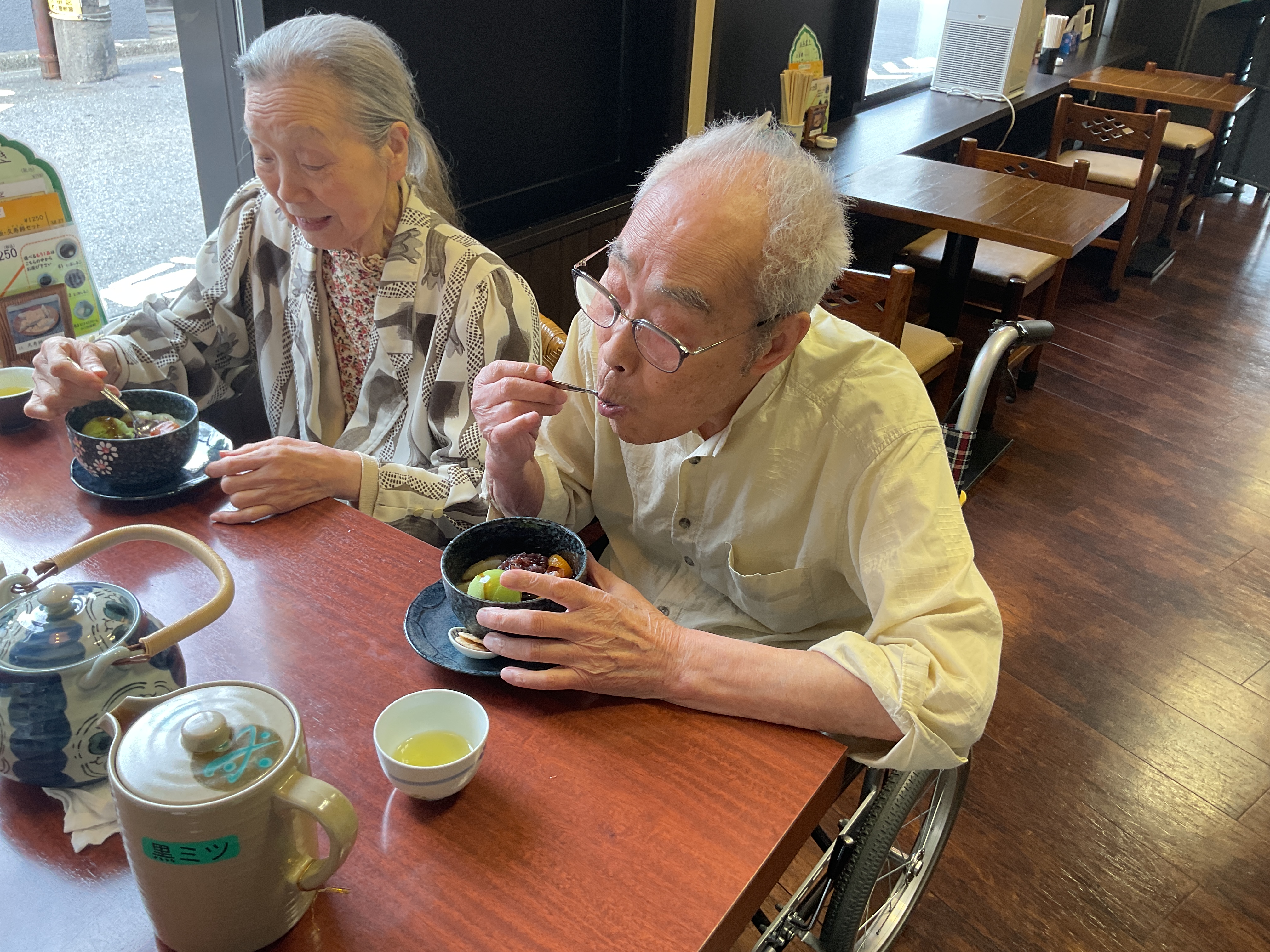 おやつレク開催🍰!2日間に分かれて池田屋に行き、皆さん好きなものを注文し美味しくいただきました!