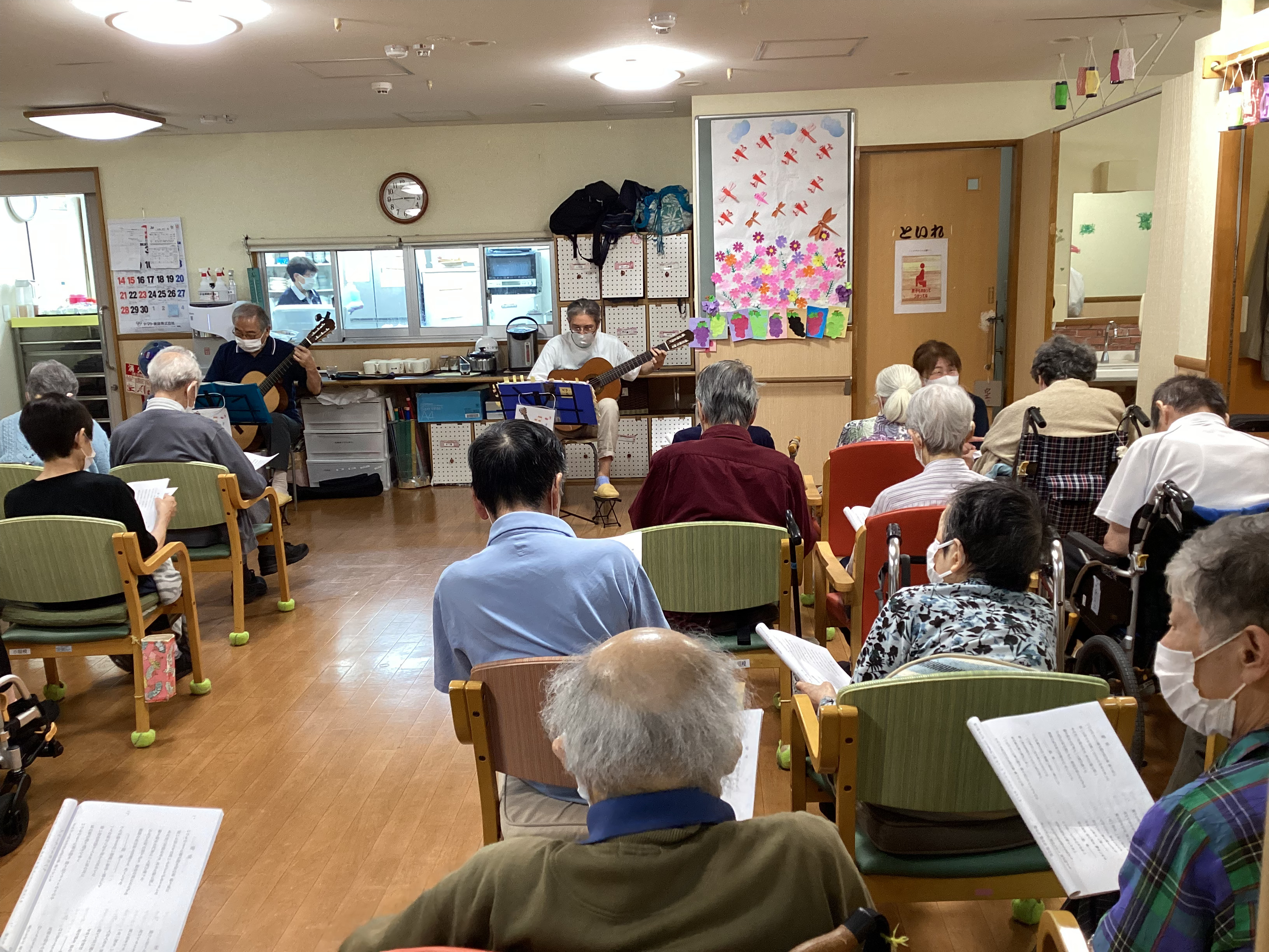 ほっとダンディーズの皆さまがみなみ台にいらっしゃり、美しいギター🎸演奏に合わせて皆さんと一緒に楽しい歌を歌いました。青い山脈、四季の歌、柔、いつでも夢をなど、心が温かになる懐かしい歌13曲を一緒に歌いました。