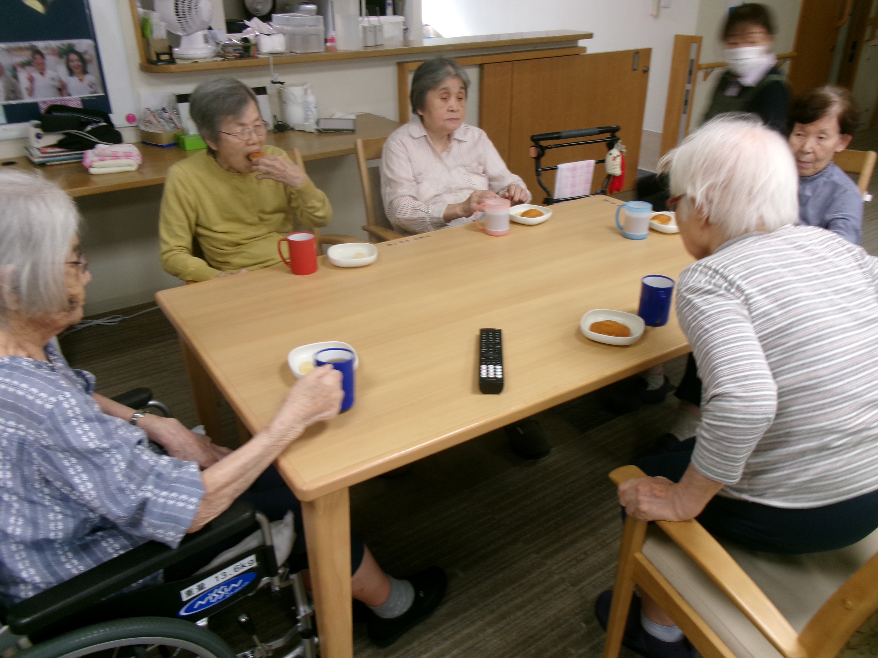 スポーツの秋ということで室内ではボール投げをして身体を動かしました!食欲の秋ということでおやつを皆揃ってたべました!