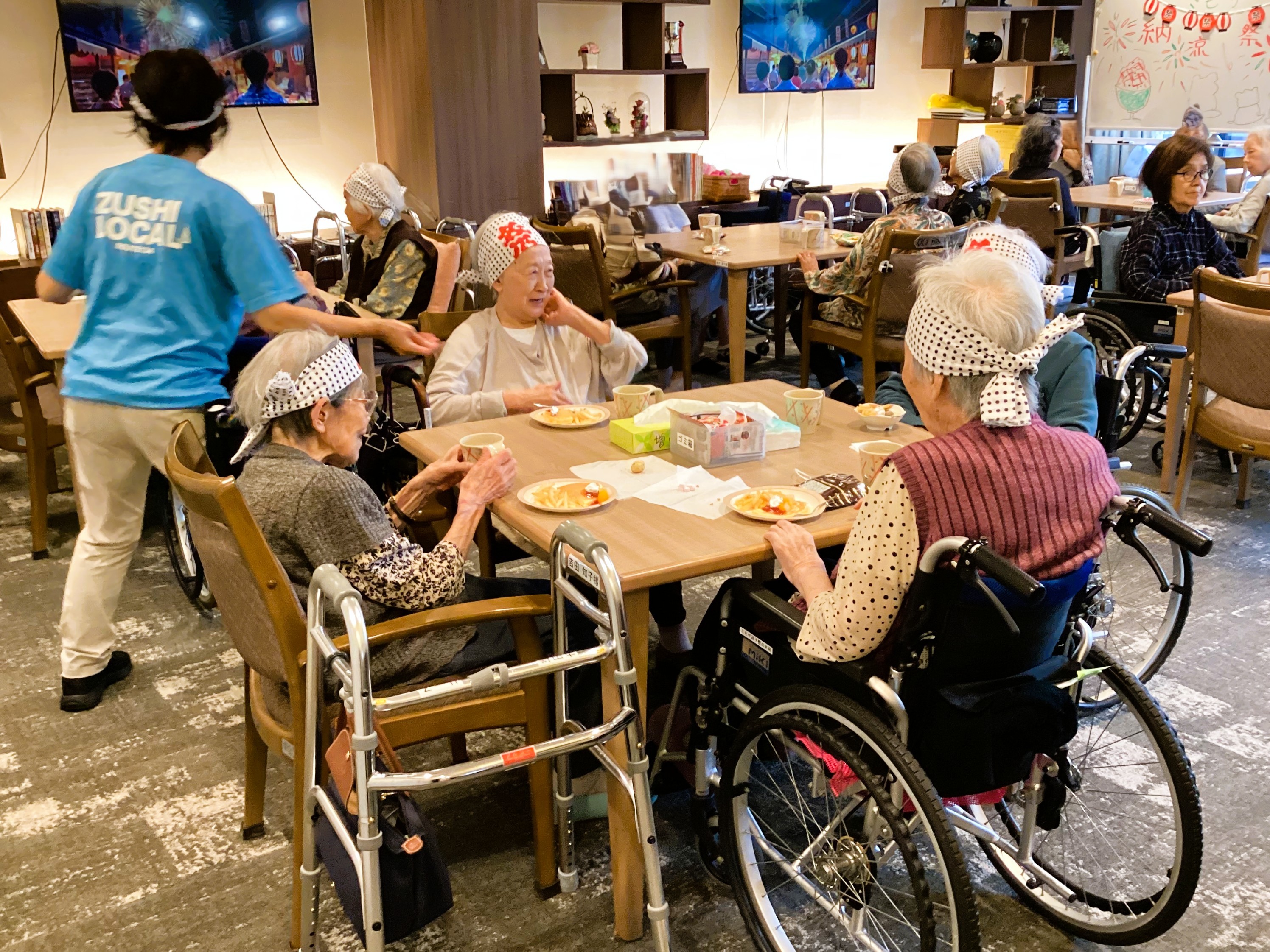 ゲームコーナーで楽しんで頂いた後は、おやつをお召し上がり頂きほっと一息。