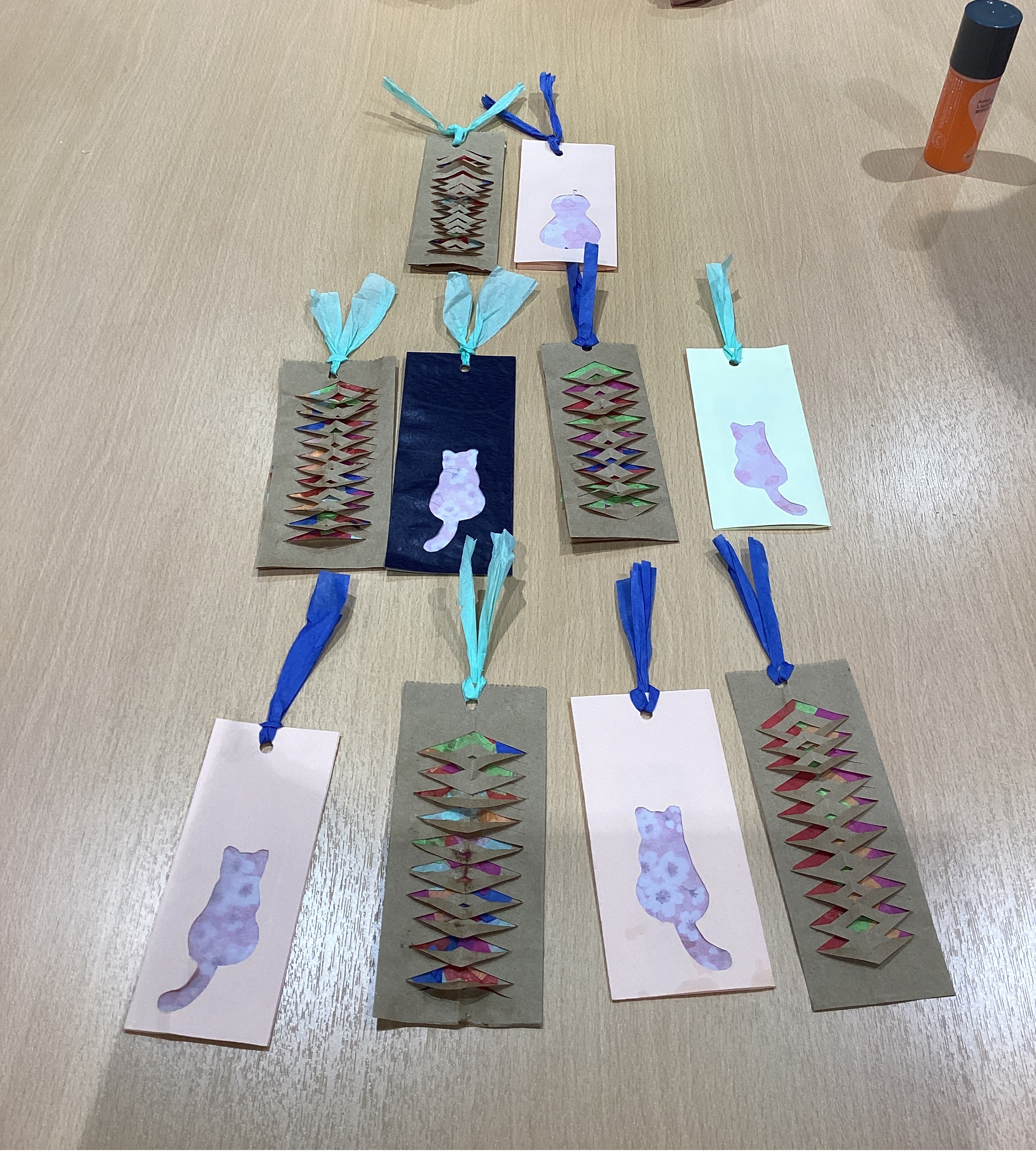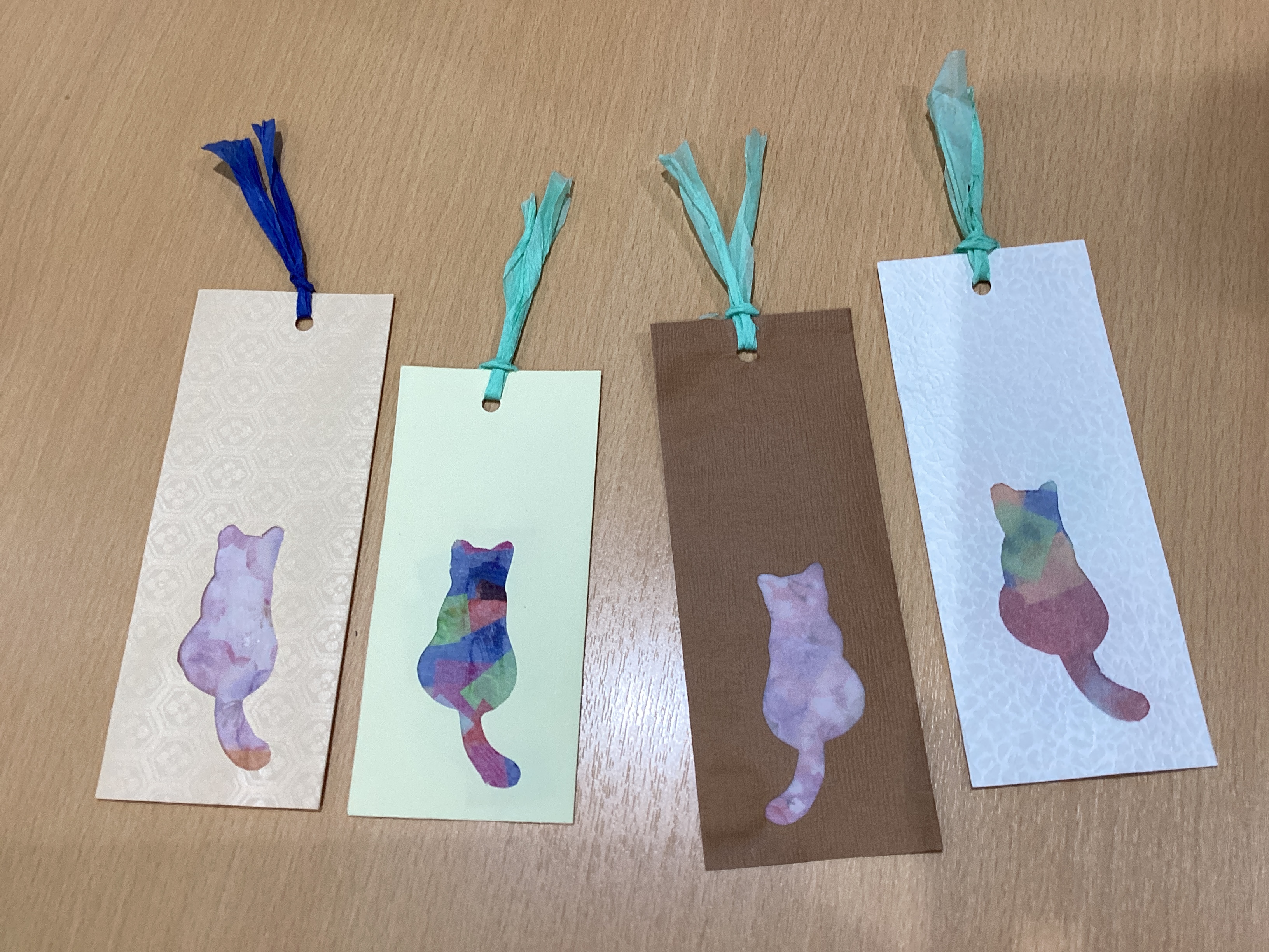 今日のレクリエーションではステンドグラス風しおりを作成しました。読書の秋のお供に活躍しそうですね♪