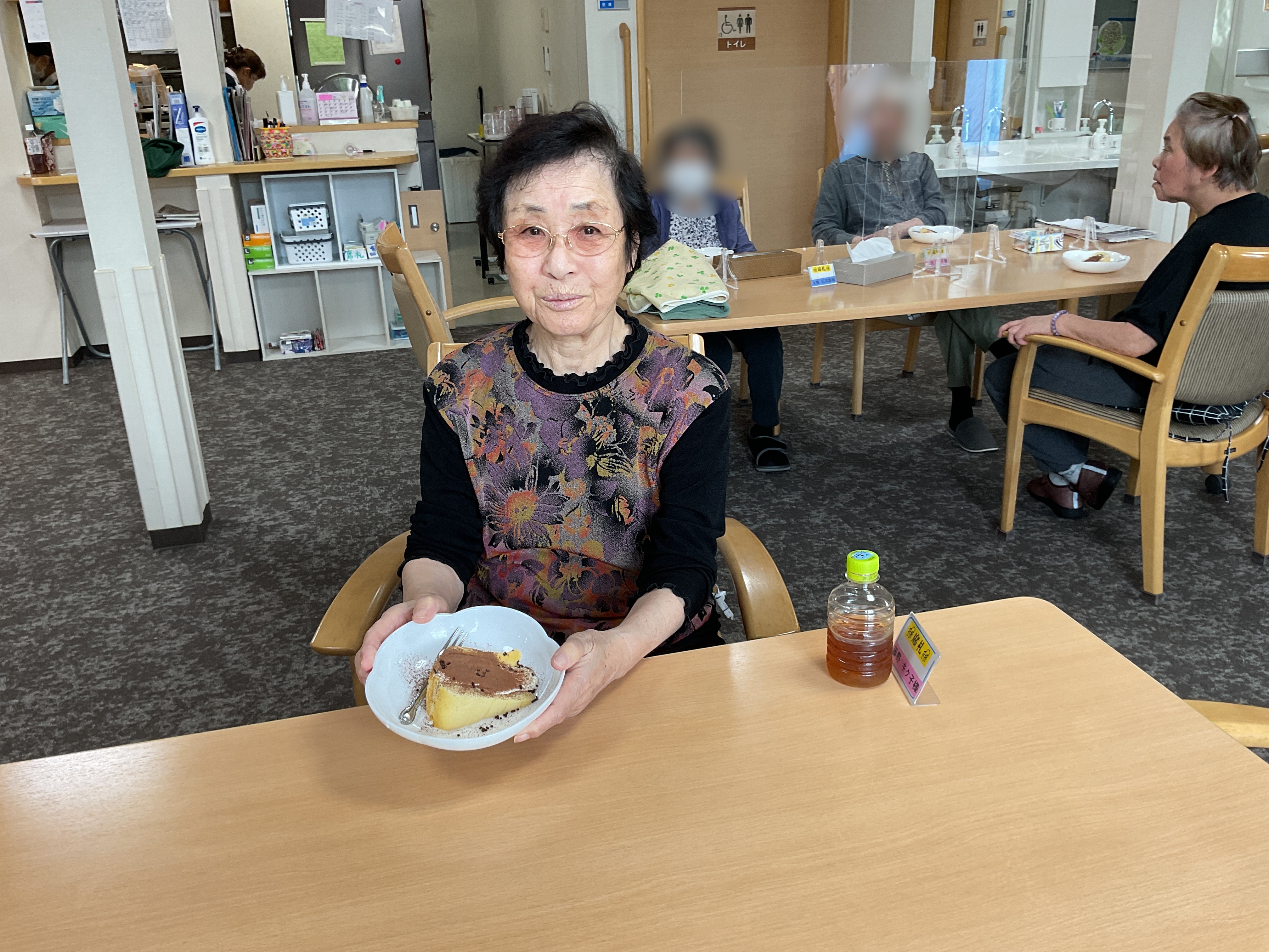 今日のおやつは職員が作った手作りシフォンケーキ!
