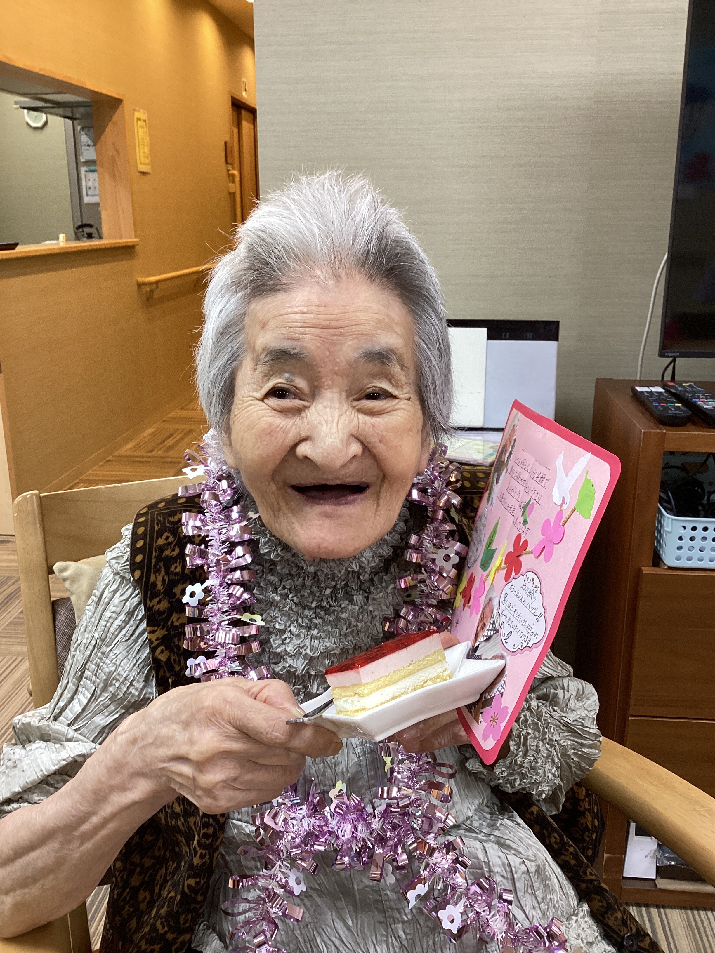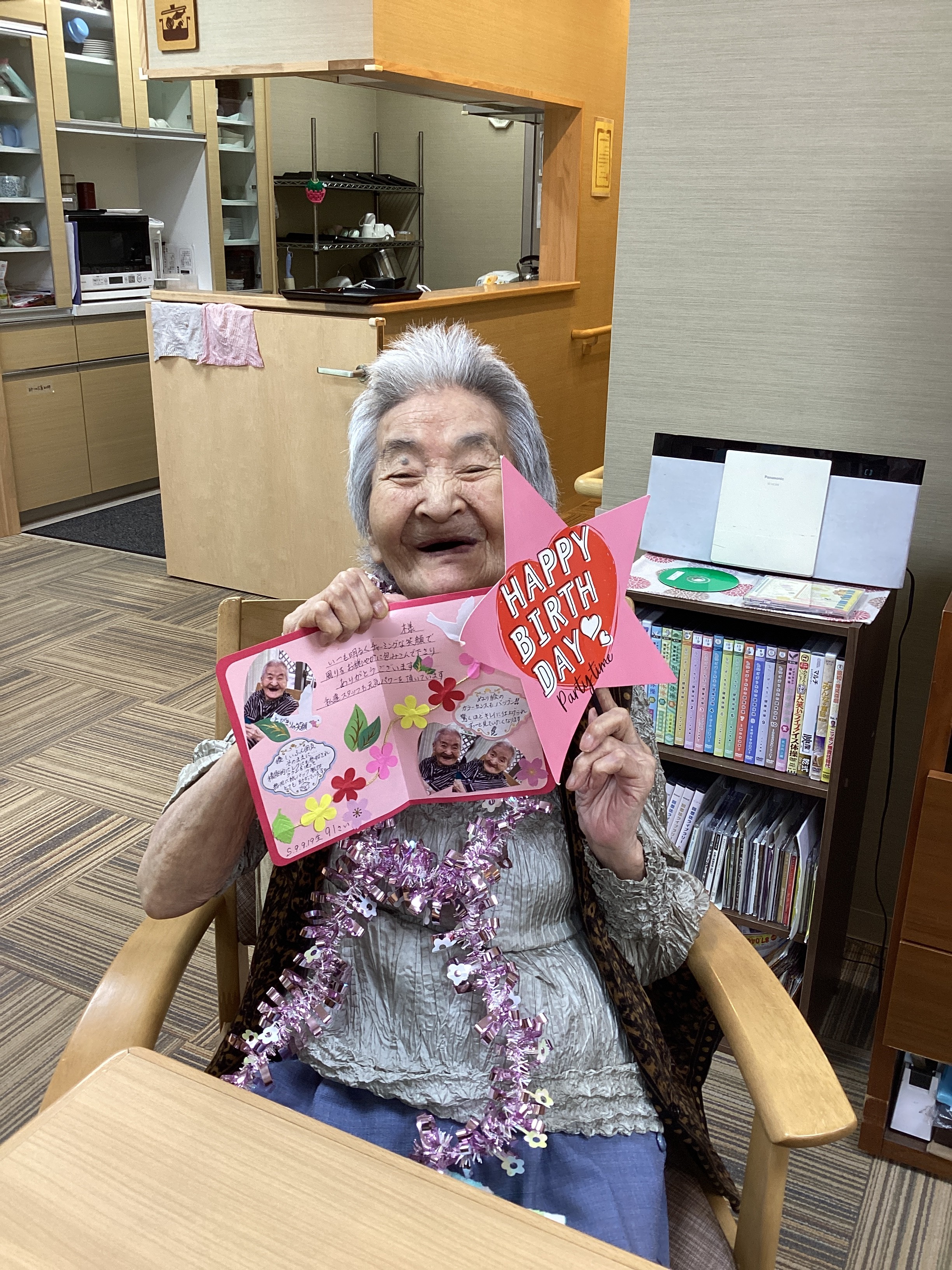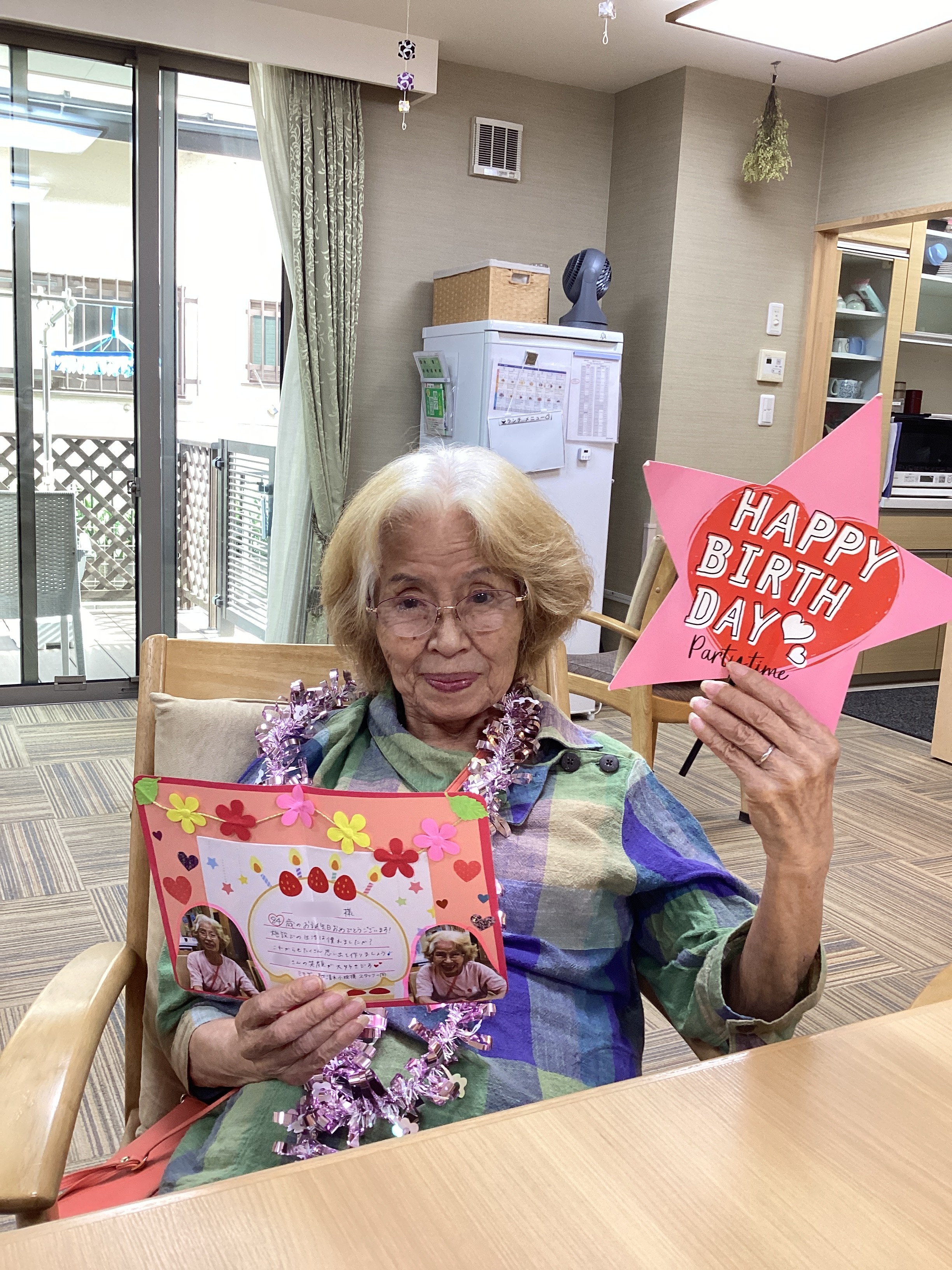 8月・9月のお誕生日会を行いました🎉皆さんでバースデーソングを歌い🎶職員手作りのメッセージカードをプレゼントさせていただきました💌おやつでは苺の可愛いケーキを召し上がり🍓皆さんの笑顔が見れてとても嬉しい気持ちになりました😌🍀