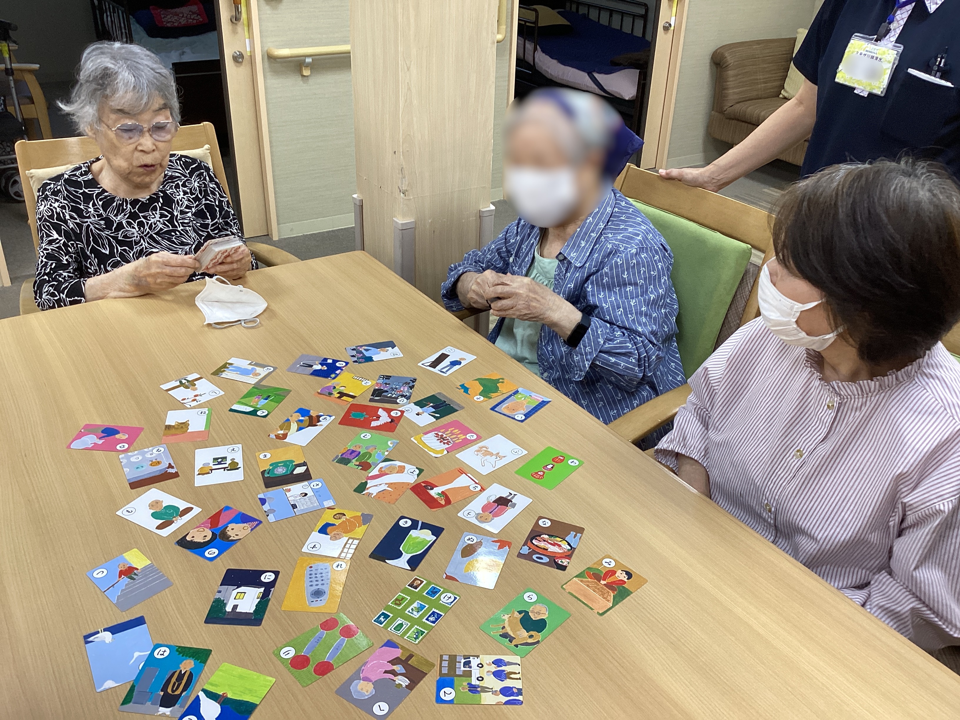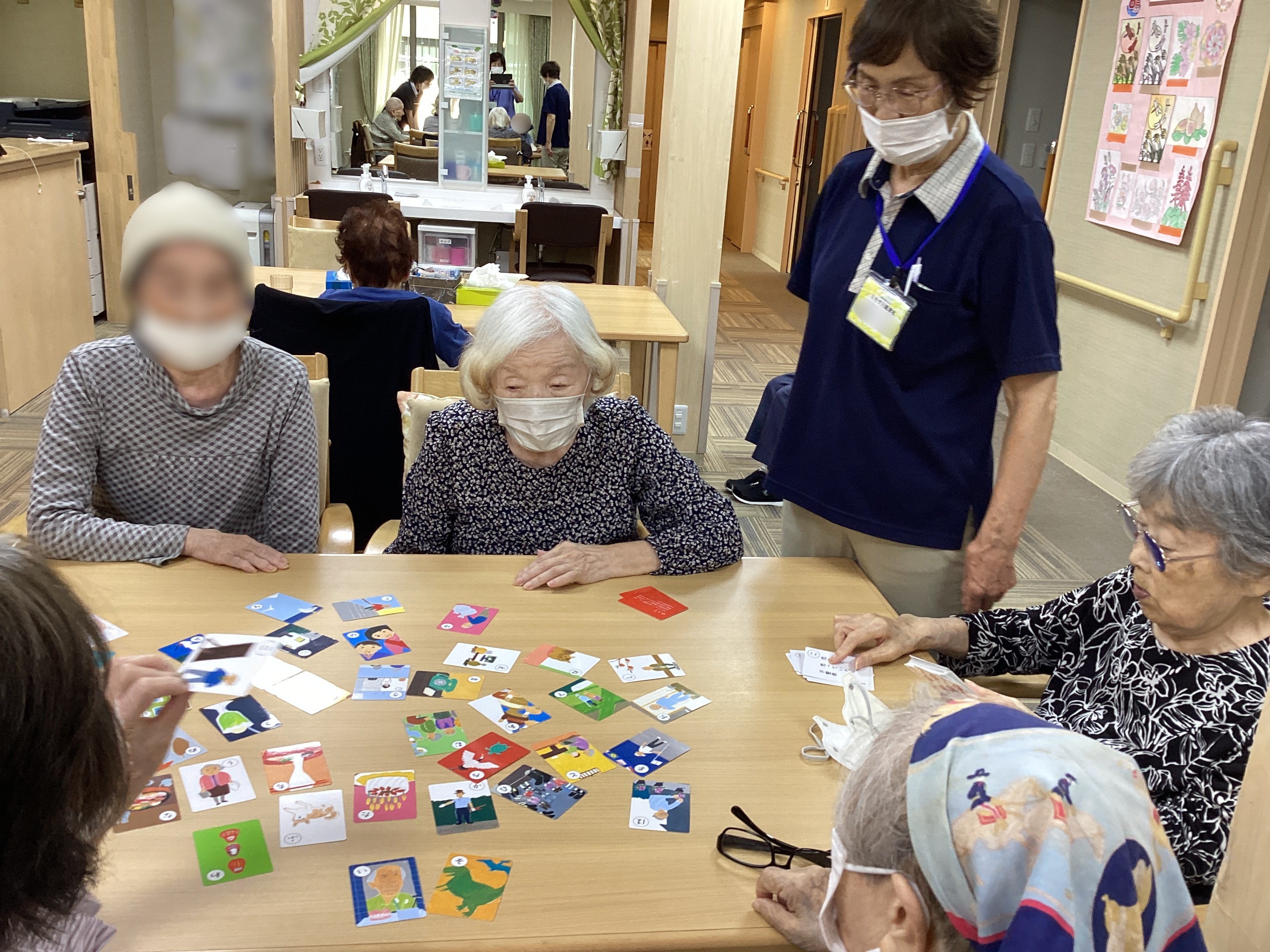 本日のレクリエーションはかるた取り🎴読み手もご利用者にやっていただき皆さん耳を澄ませて真剣な表情🤨札を見つけると素早く手を伸ばして「取った!」と嬉しそうな笑顔がみえました😊頭も体も使いながら、笑顔あふれる楽しい時間となりました✨