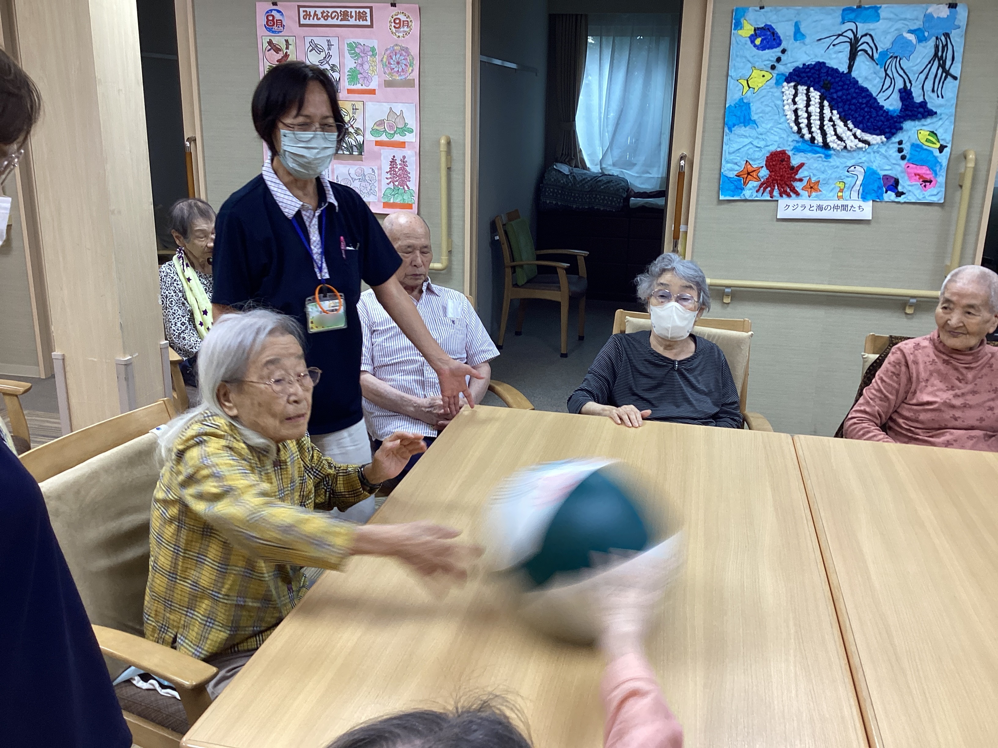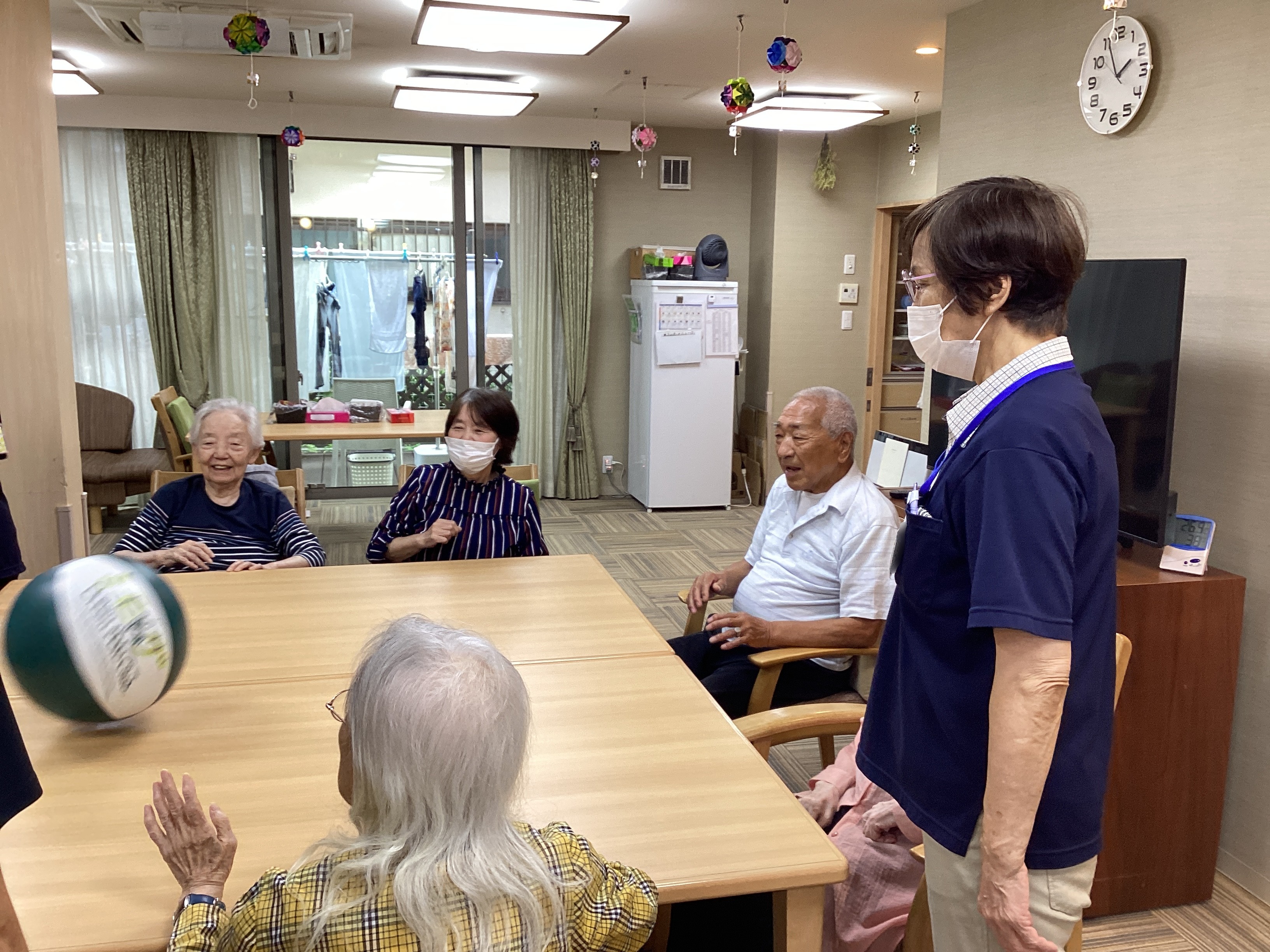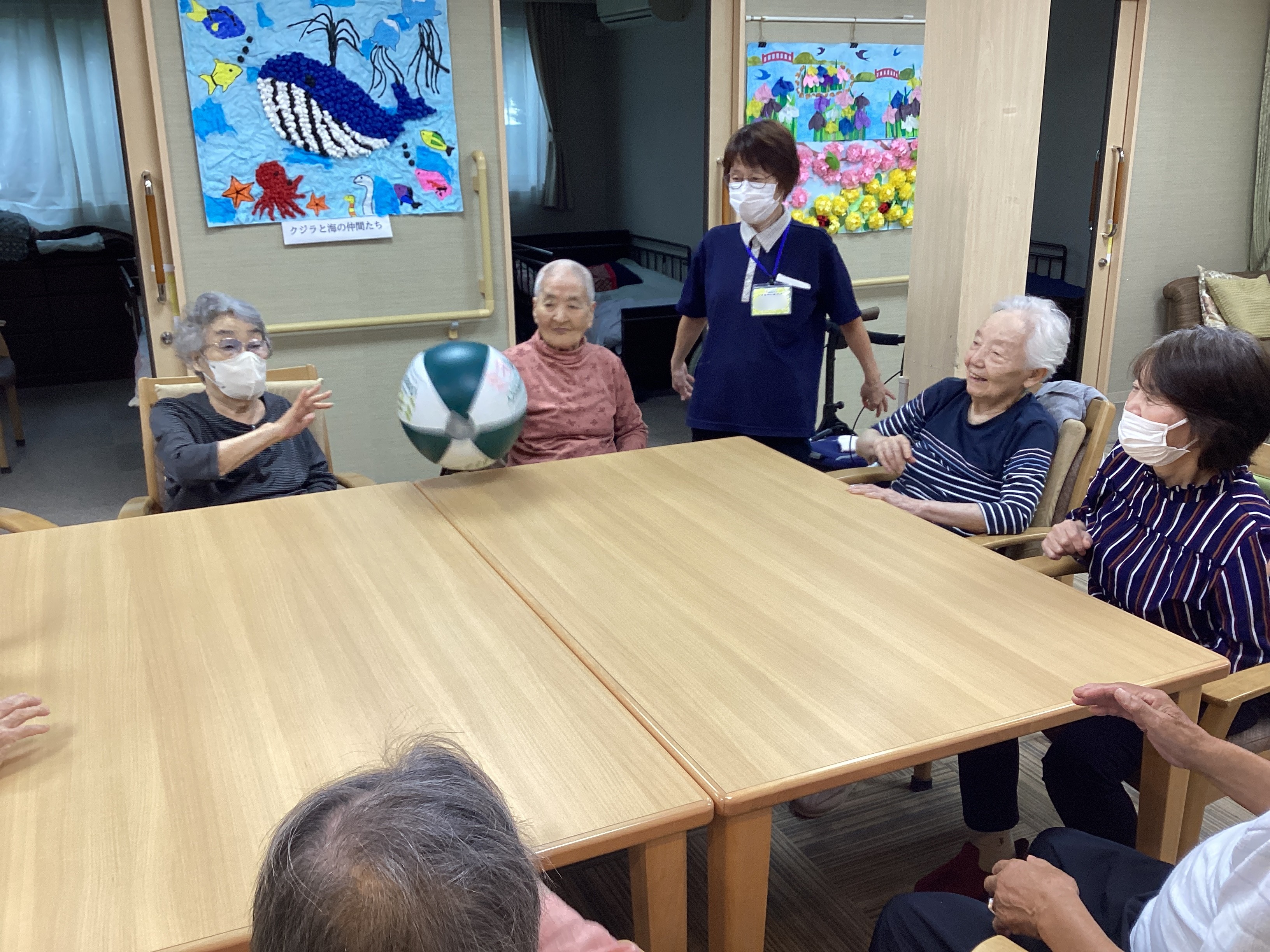 本日はビーチボールバレーをしました🏐机の上でボールを転がし落とさないように皆で声を掛け合いながら挑戦✨笑顔と笑い声が絶えず真剣な表情と楽しそうな表情が両方みえる時間でした🤨😄シンプルながら夢中になれる遊びで盛り上がりました!