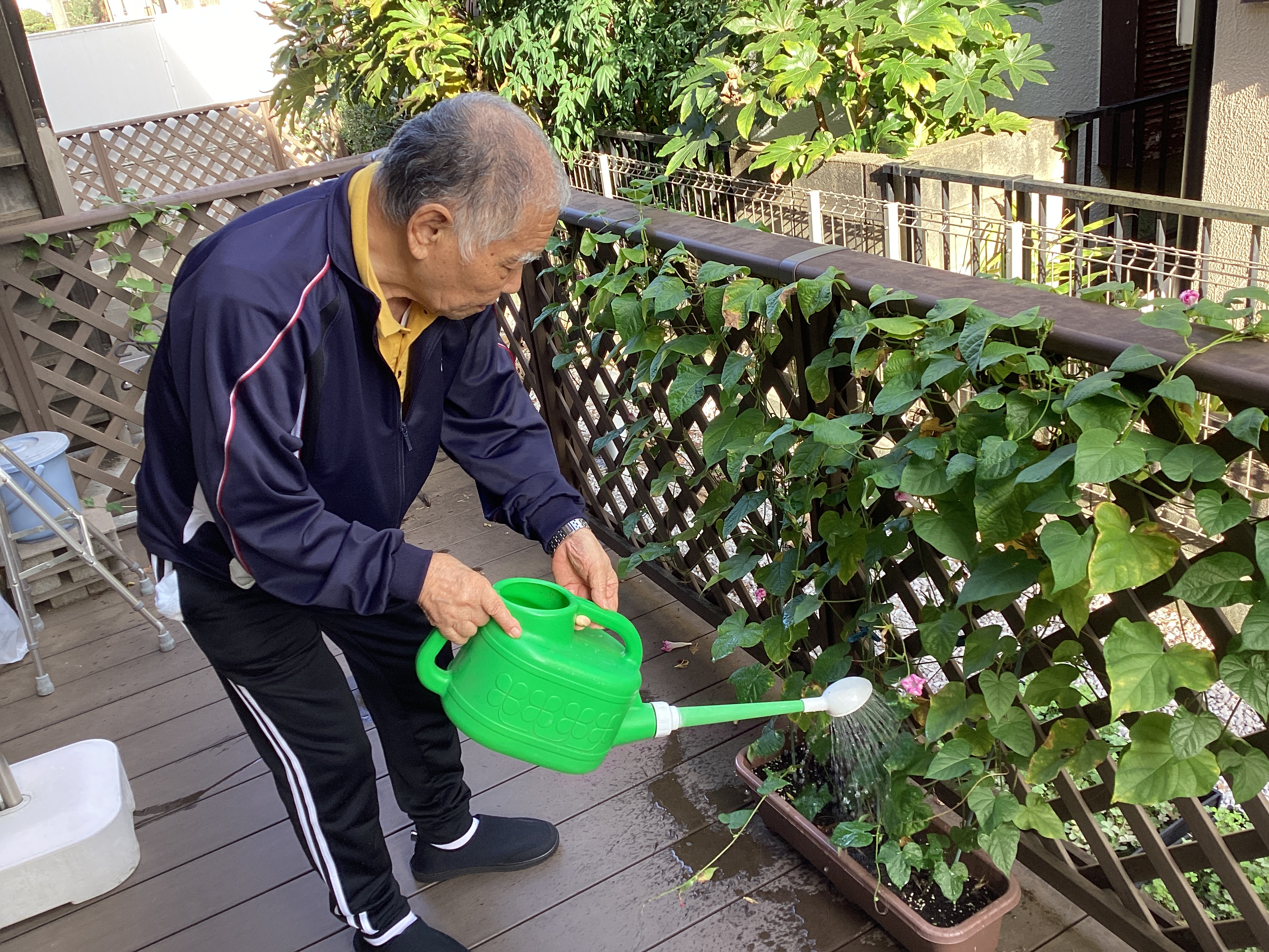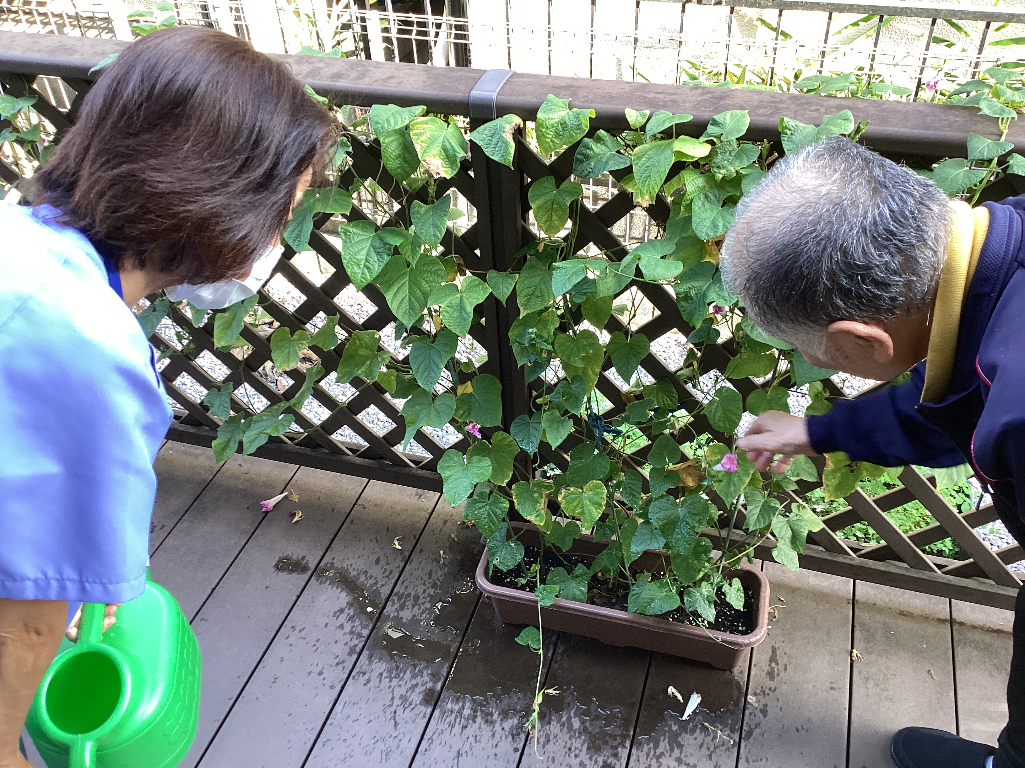 宿泊のご利用者に朝顔の水やりをしていただきました🫗お世話のかいあって綺麗な朝顔が咲き、朝顔をバックに記念撮影もしました📸爽やかな朝の時間を皆さんで楽しむことができました😊✨