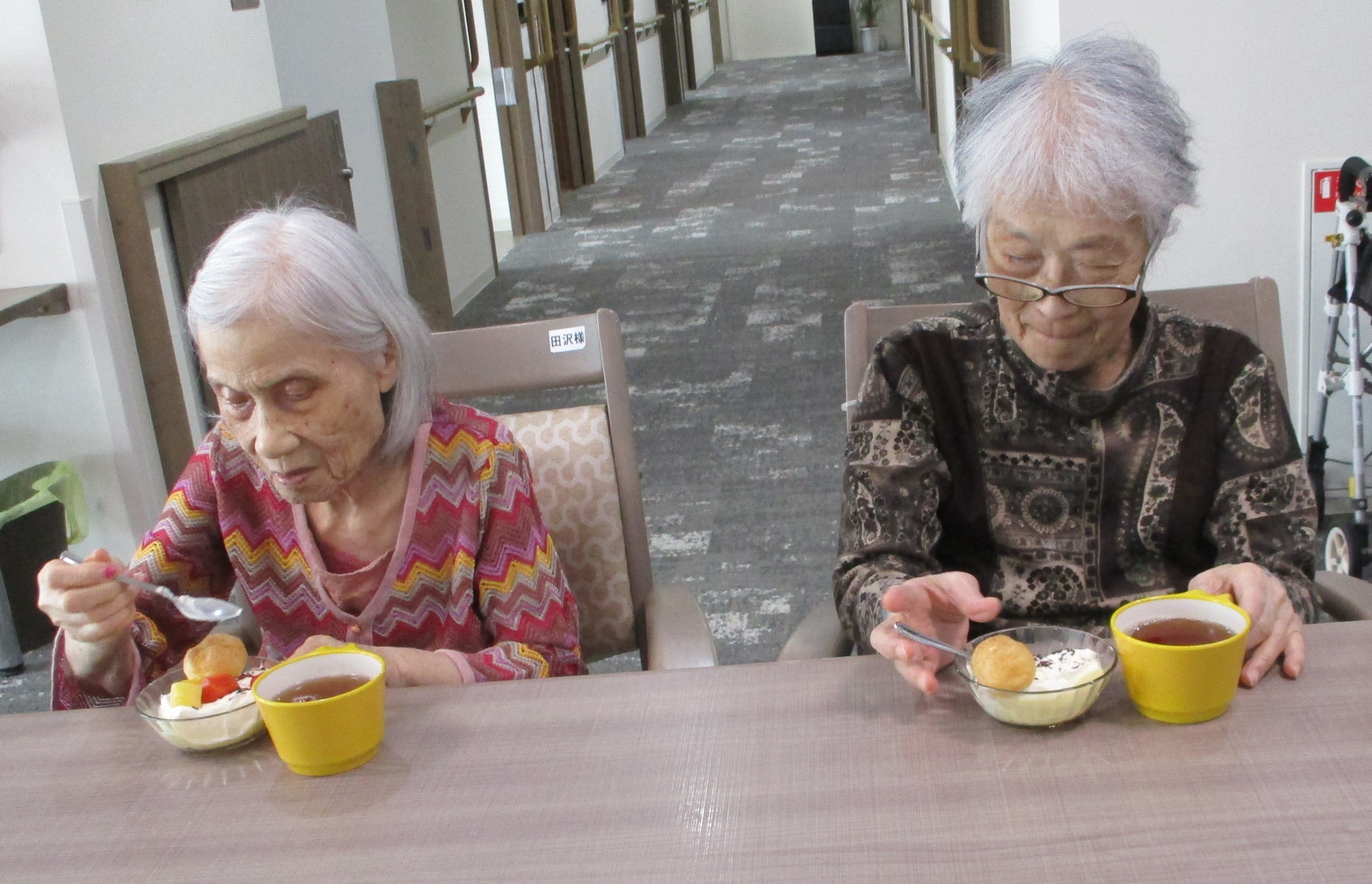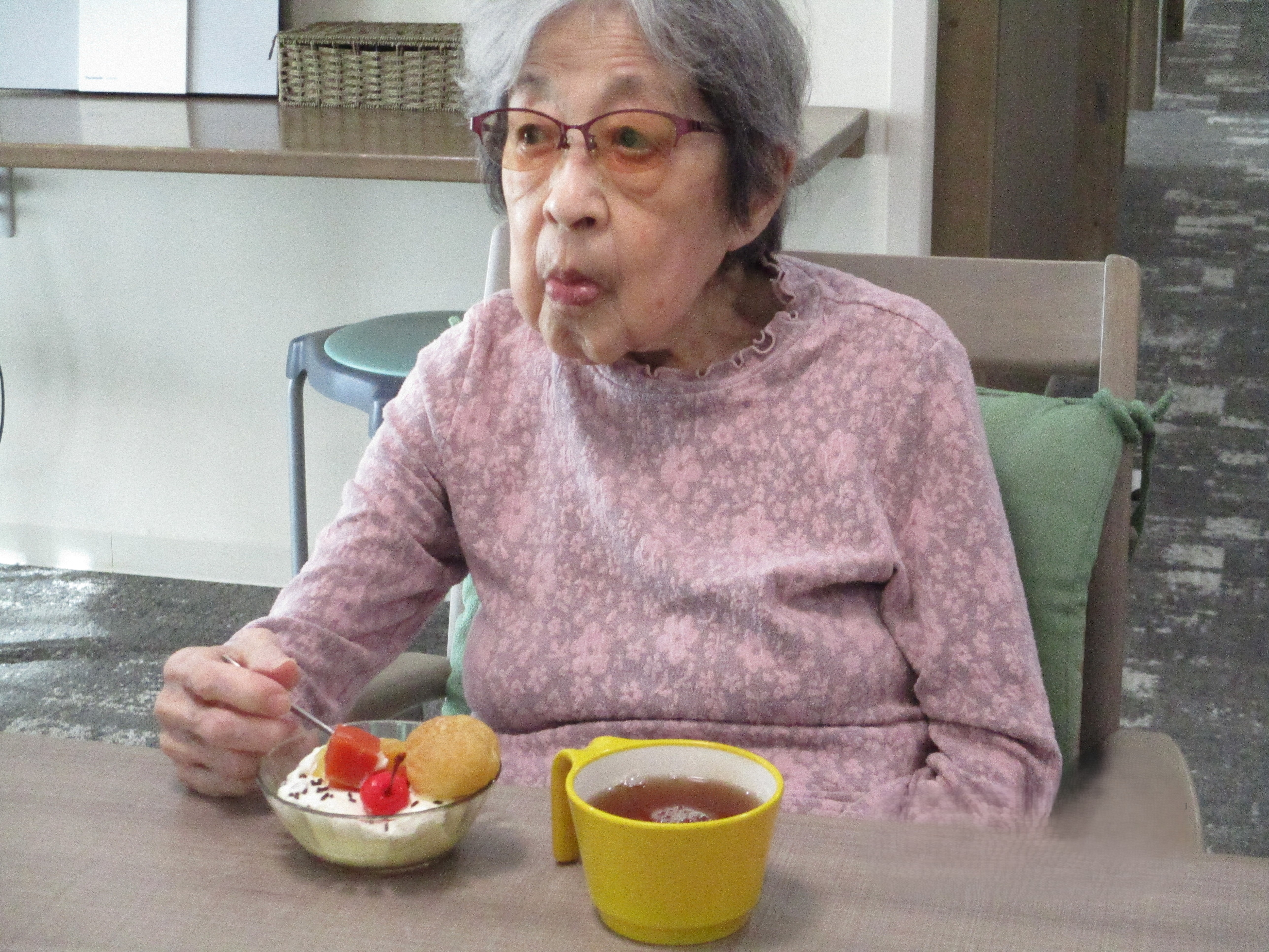 皆でバースデイソングを歌って、職員が作ったプリンを美味しい美味しいと食べてくださいました🍰