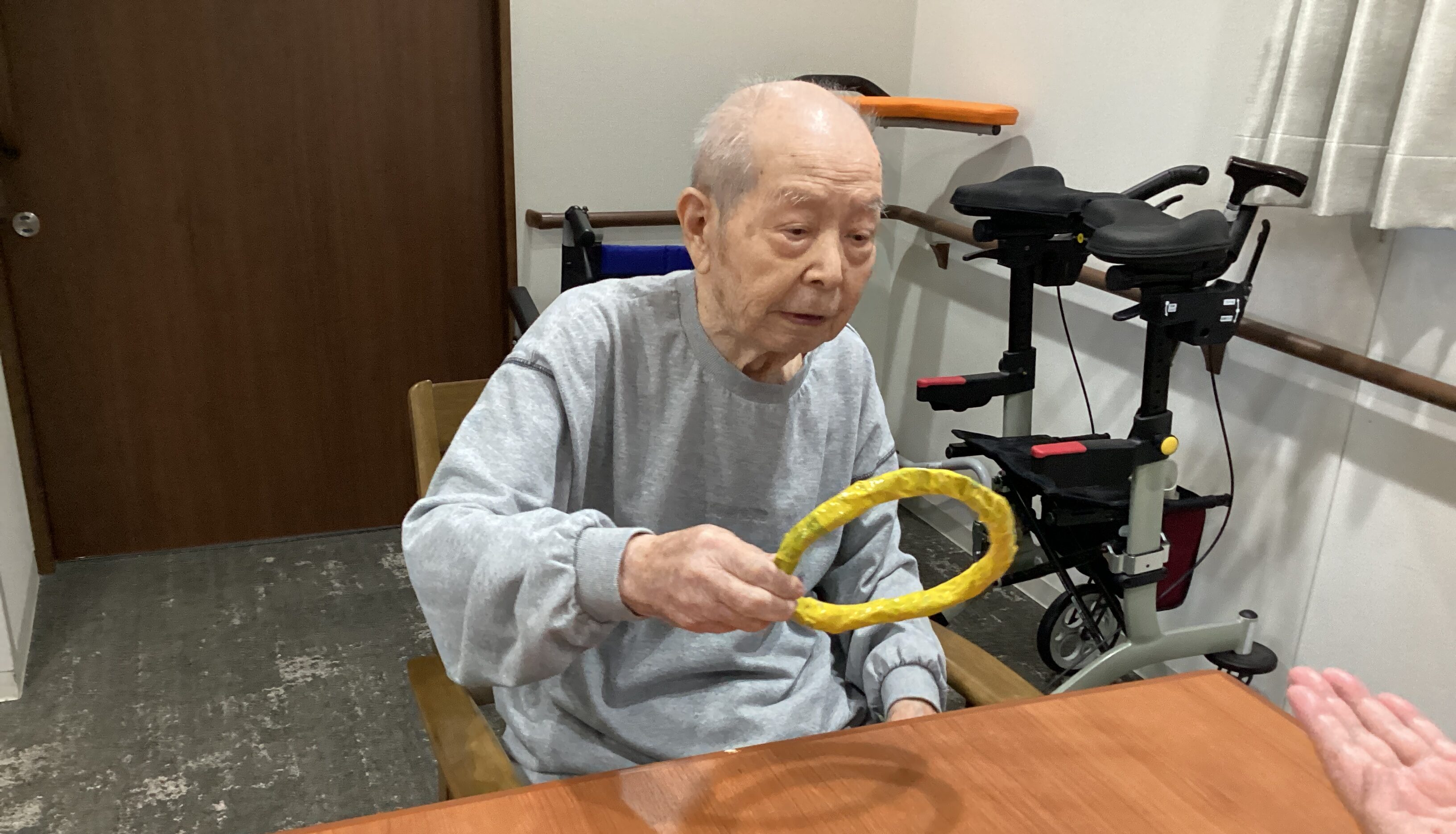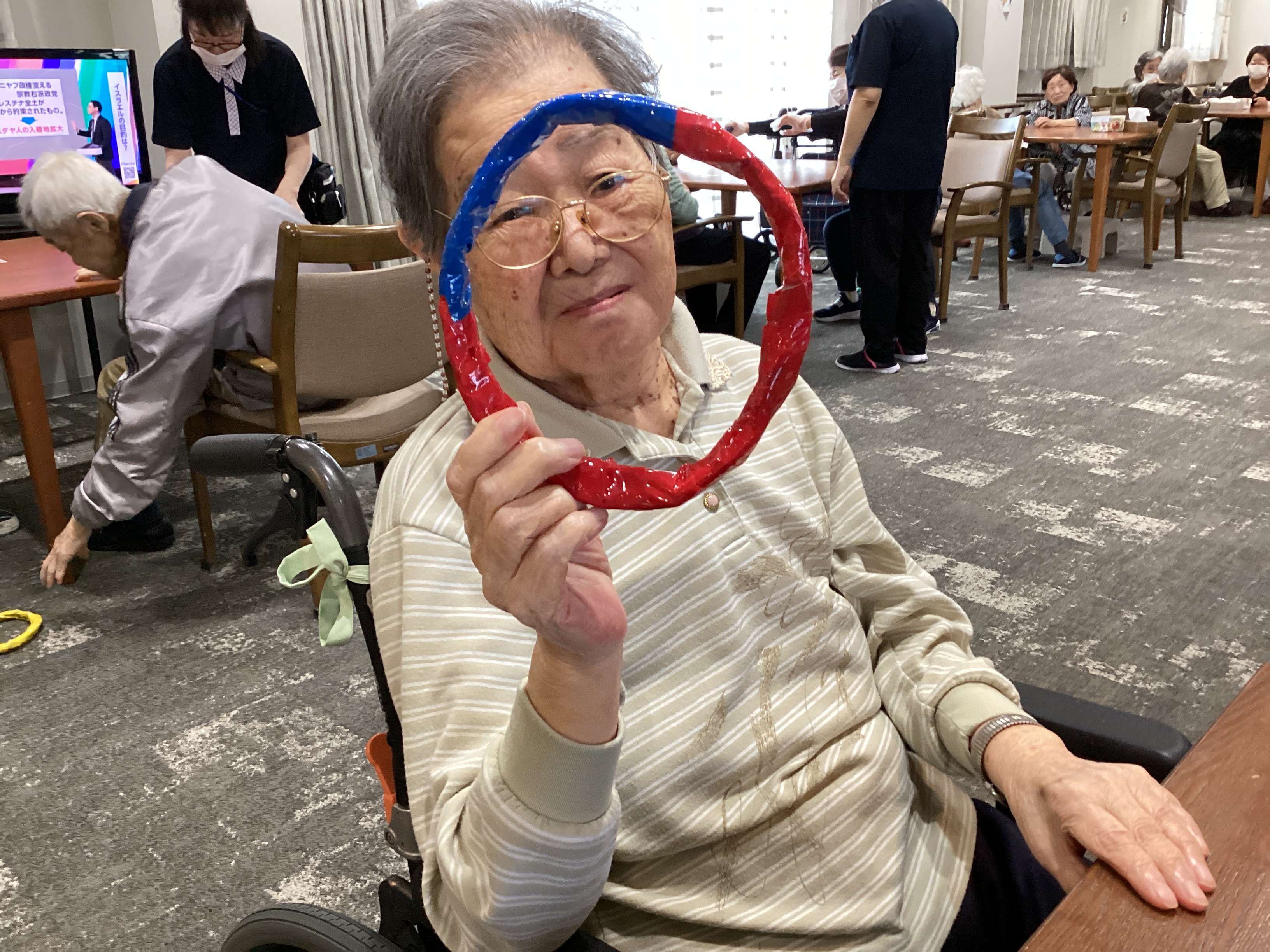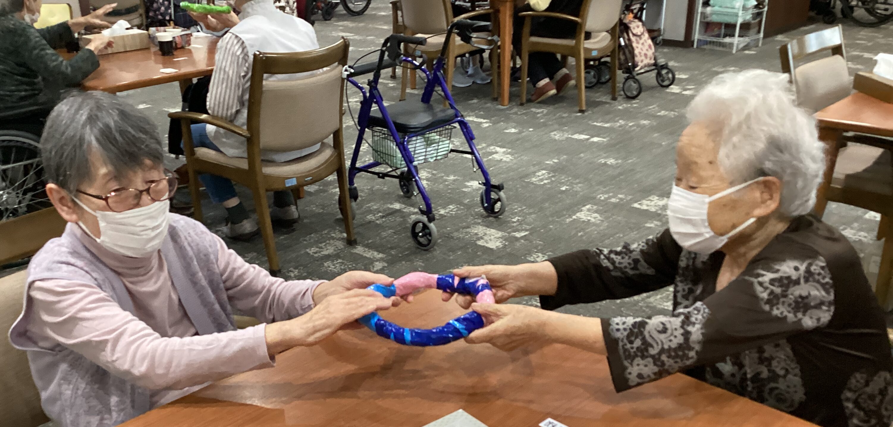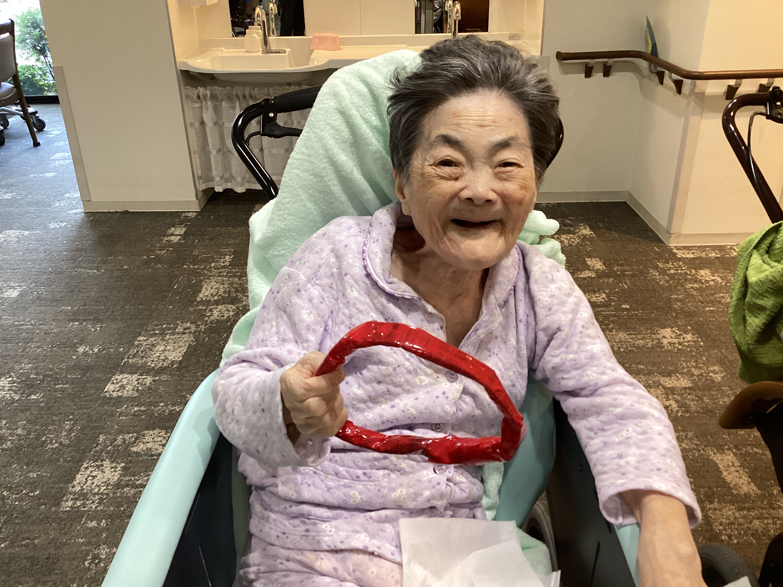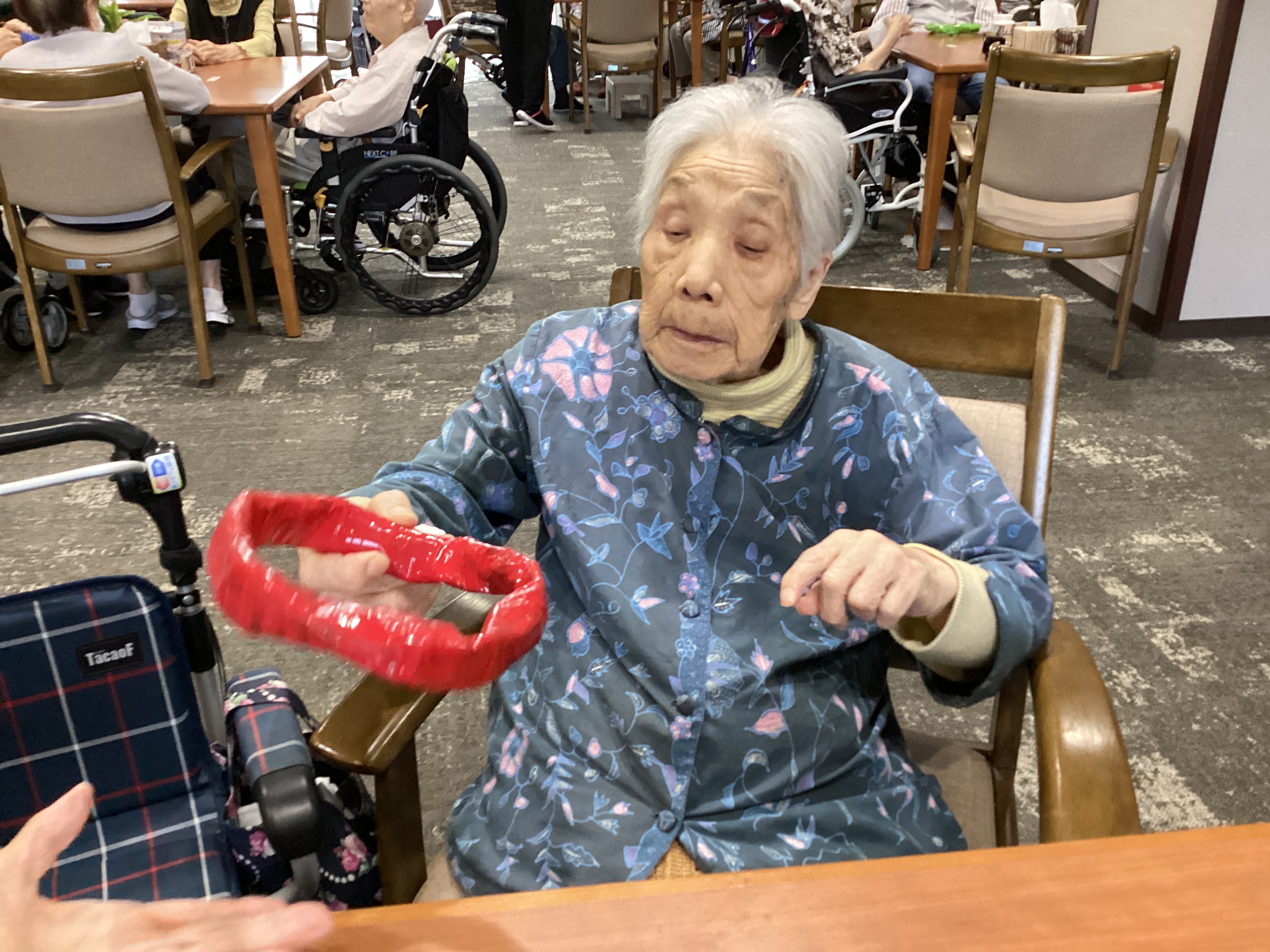 しっかり握って~落とさないように~・・・見ているよりも上半身を動かす運動にもなっております(*^。^*)