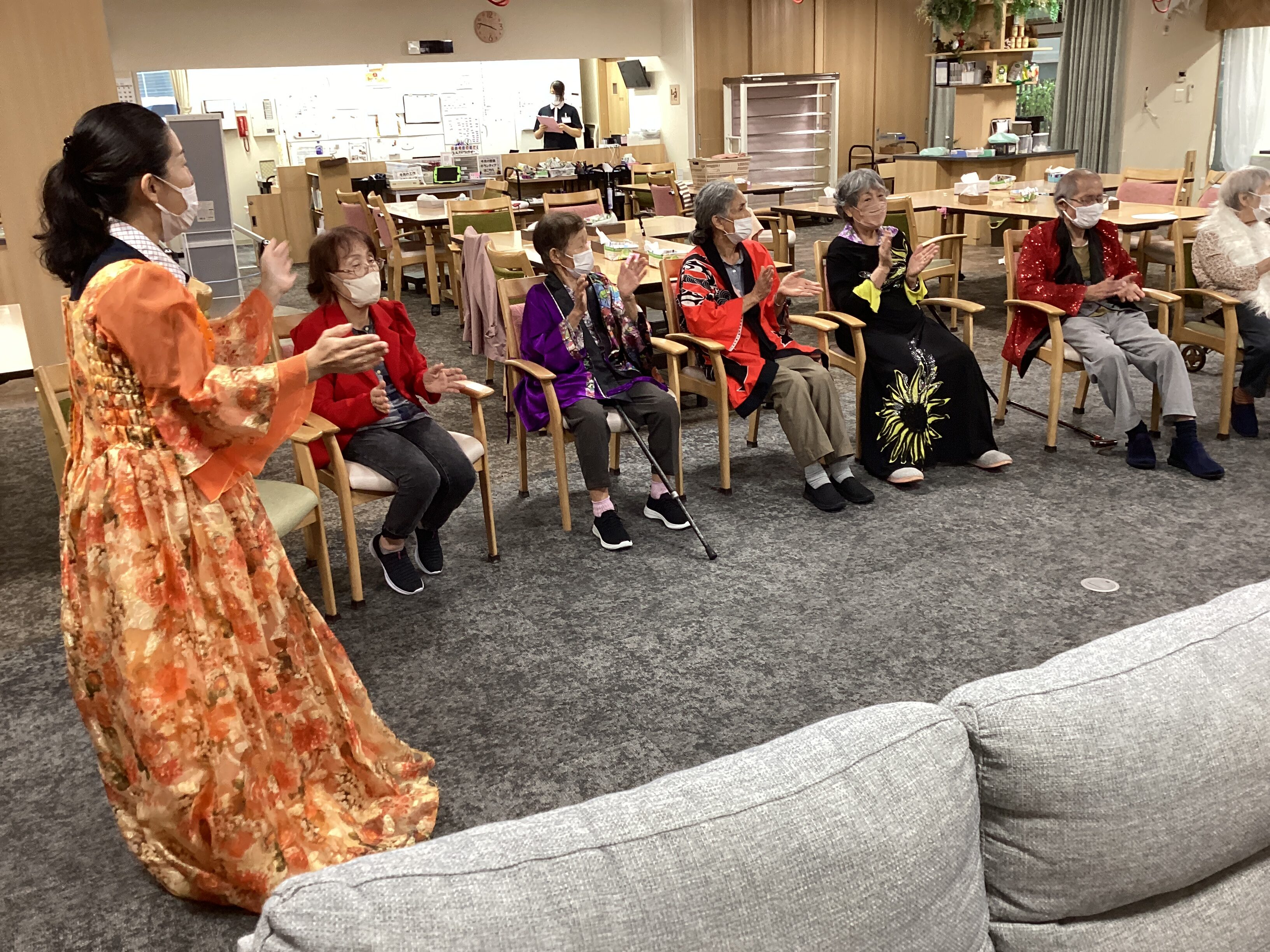 前回に続き、豪華衣装✨ 皆さん回想法をご存じでしょうか? 島田宿や大井川の川越え…そんな歴史的な講和の中にも蘇る記憶。 そうだったそうだったとの声が上がります👏 歌謡、思い出や過去を語り合うことで、精神安定や認知機能 改善を図る心理療法なんです😉