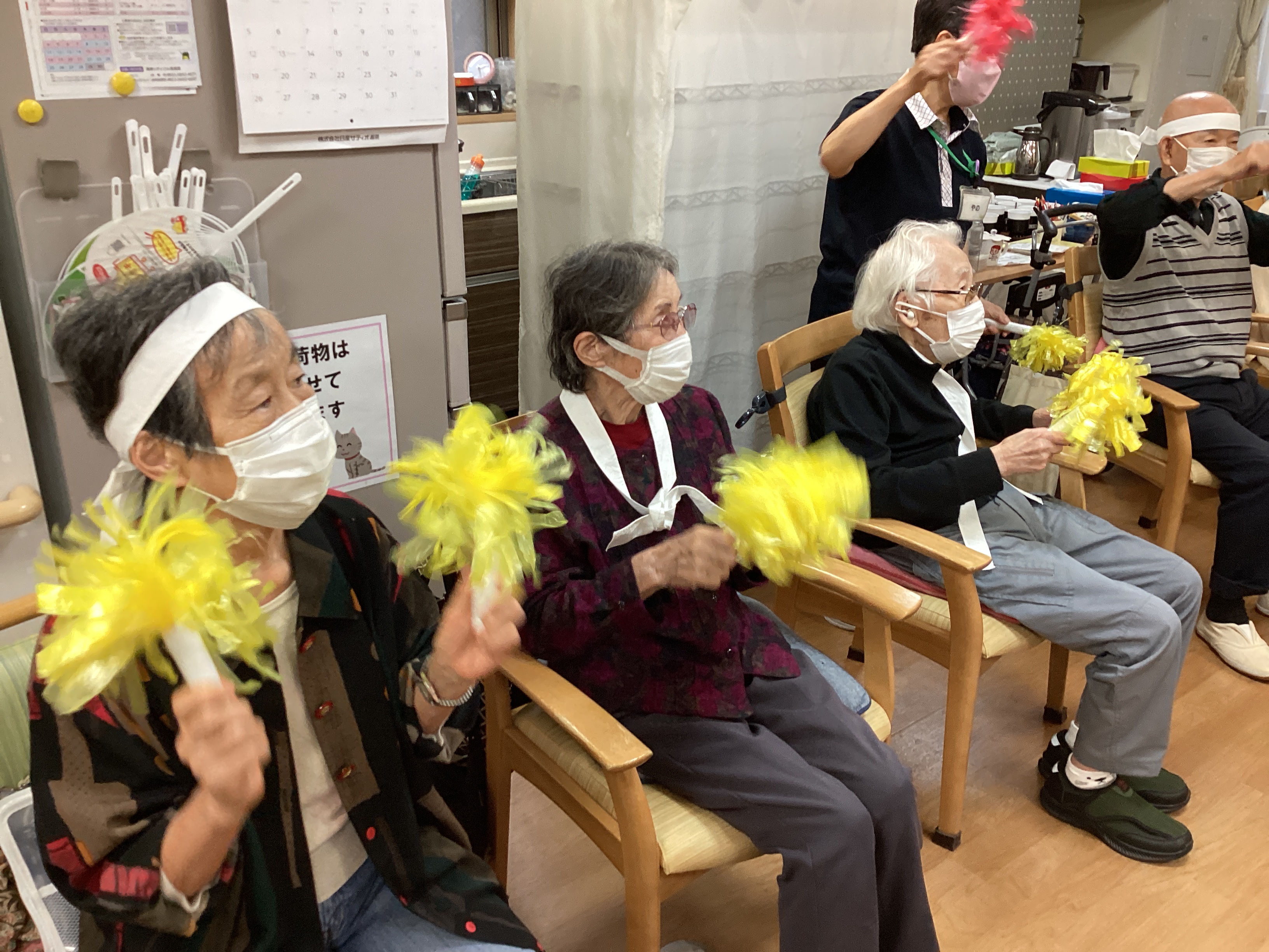 応援合戦や、うちわ仰ぎ、玉入れなどの競技に参加していただきました。