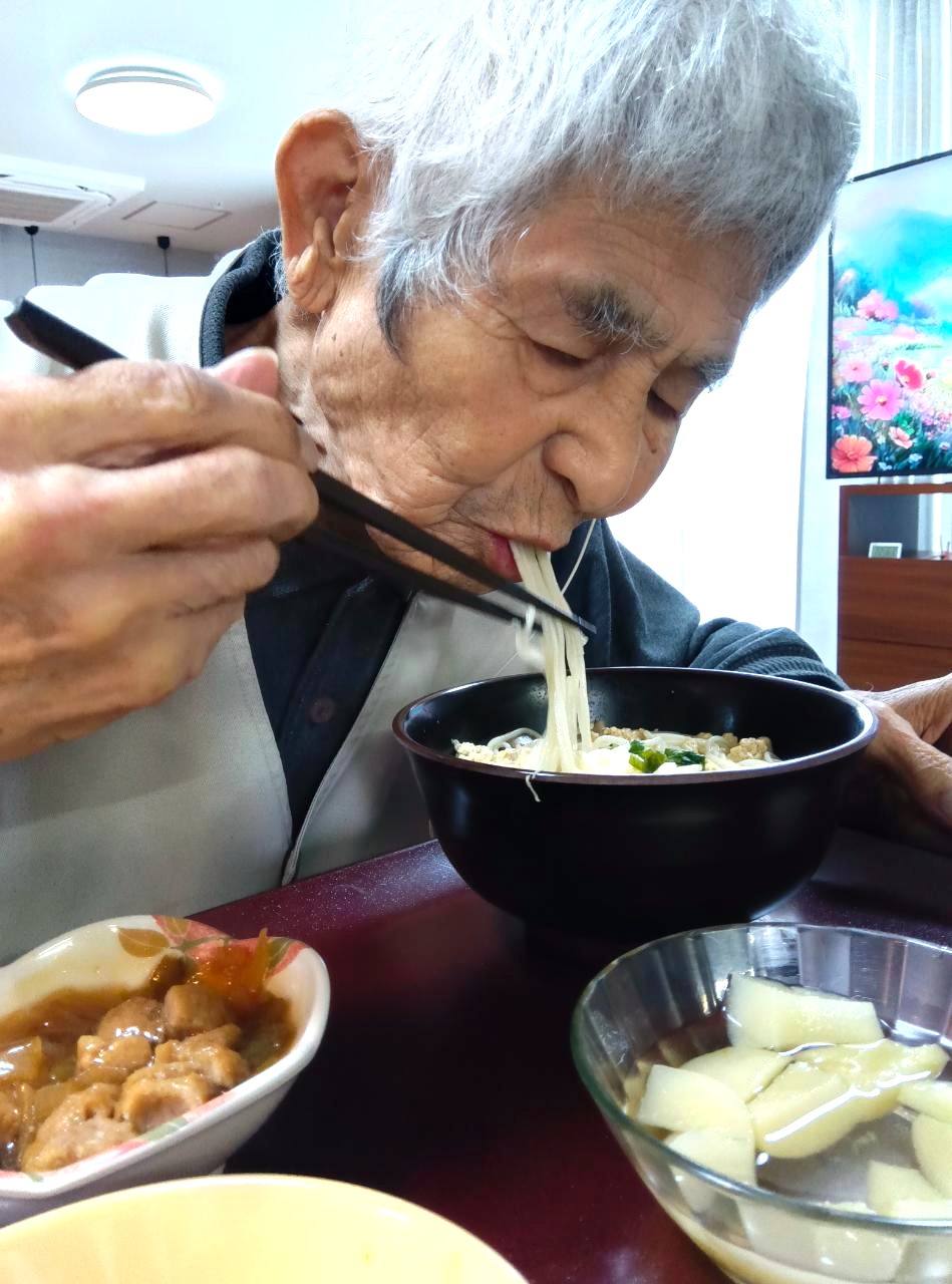 「かに玉にゅうめん」が出ました!温かい麵をすすって、皆さんお腹いっぱい!大満足されていました☺️
