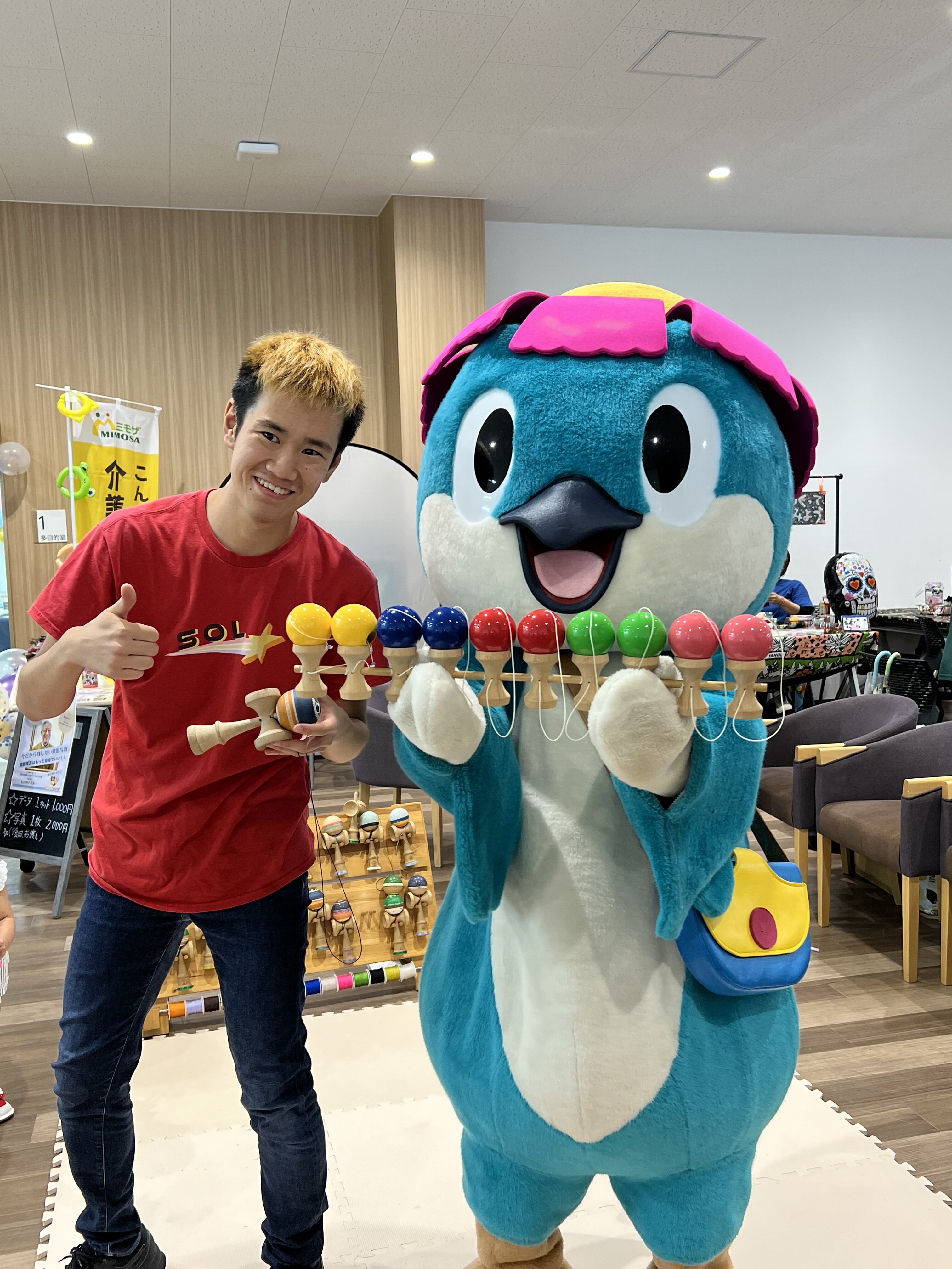 けん玉世界チャンピオンと呼べるのはMottyさんだけ!!凄すぎるプロけん玉プレイヤーまでミモ市に参加!! 当日生で見れた方はラッキーでしたね🎶 ショーだけでなく、けん玉を教えてくれる特別タイムもありました!! おっさ君もチャンピオンとけん玉したよ!