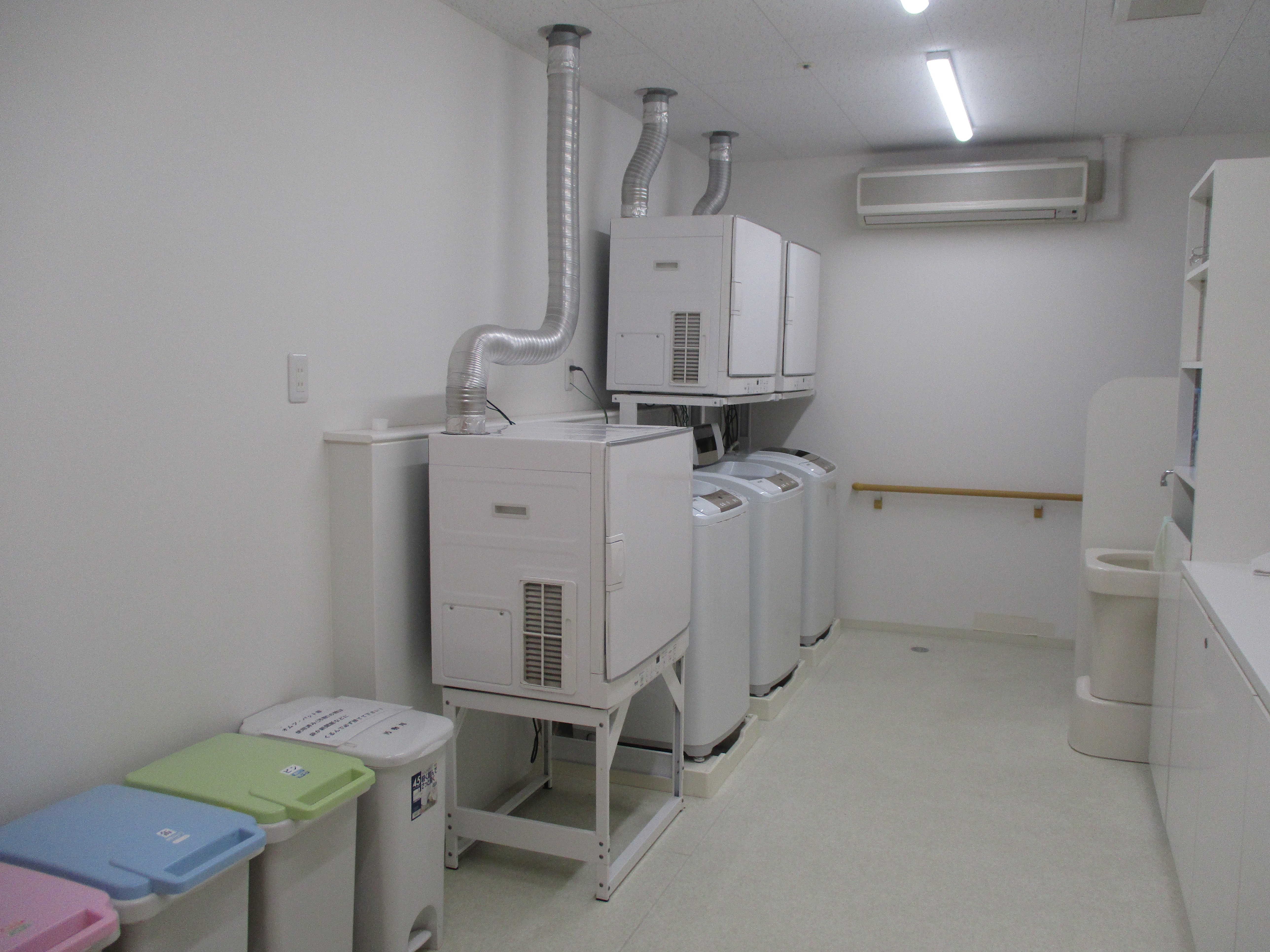 各階には共有スペースもあり、料理も可能。また、洗濯室には乾燥機もついているので早く洗濯物を整理できます。
