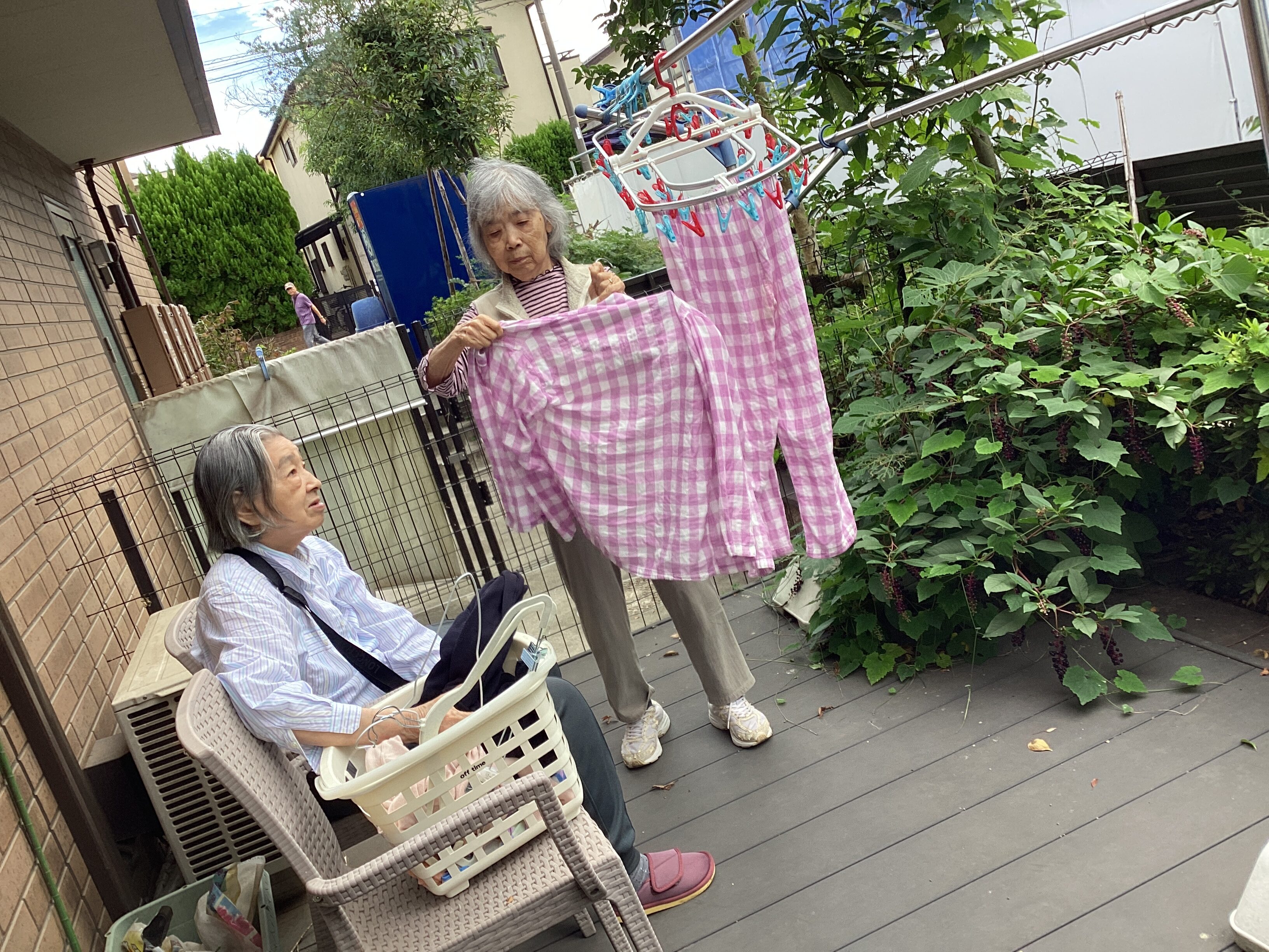 テラスで洗濯物干しです。彼女はとても活動的💛率先して行ってくれます!