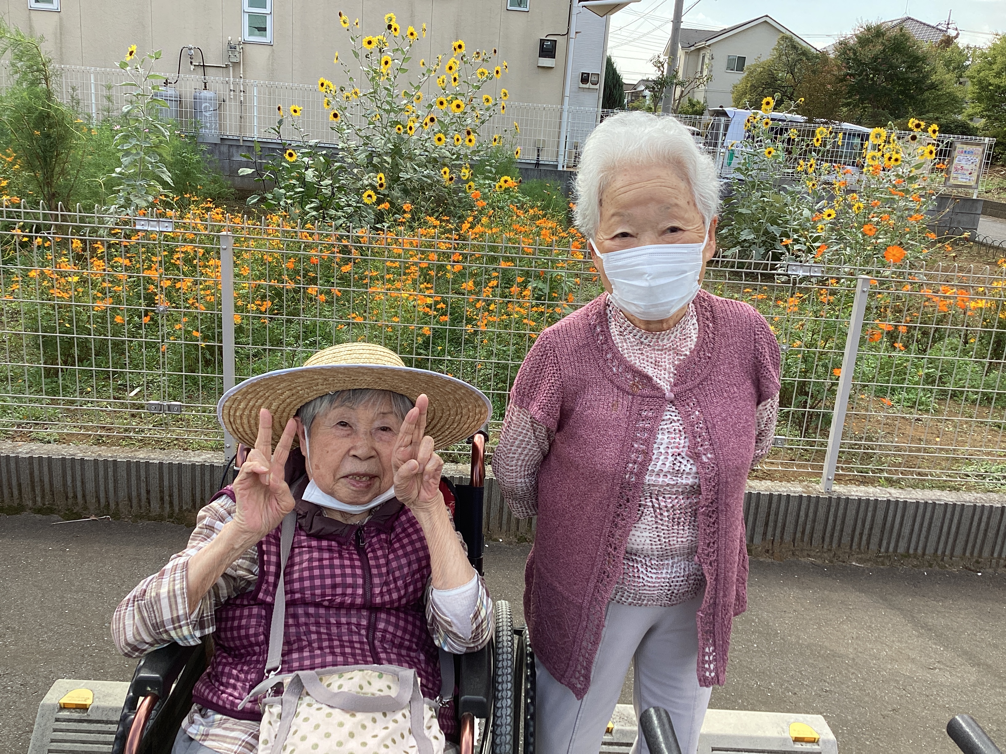 お散歩に行きましょう(*^。^*)あおき苑の周囲を少し歩きましたが気分転換ができてよかったとの声をいただきました。これから寒くなりますが防寒をしっかりしてお散歩行きましょうね