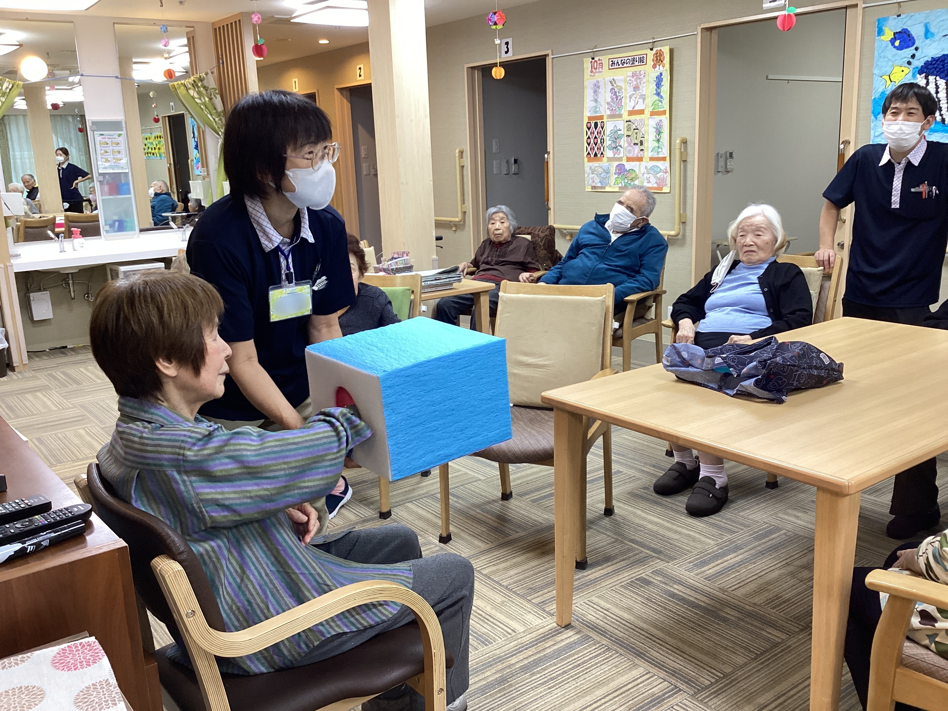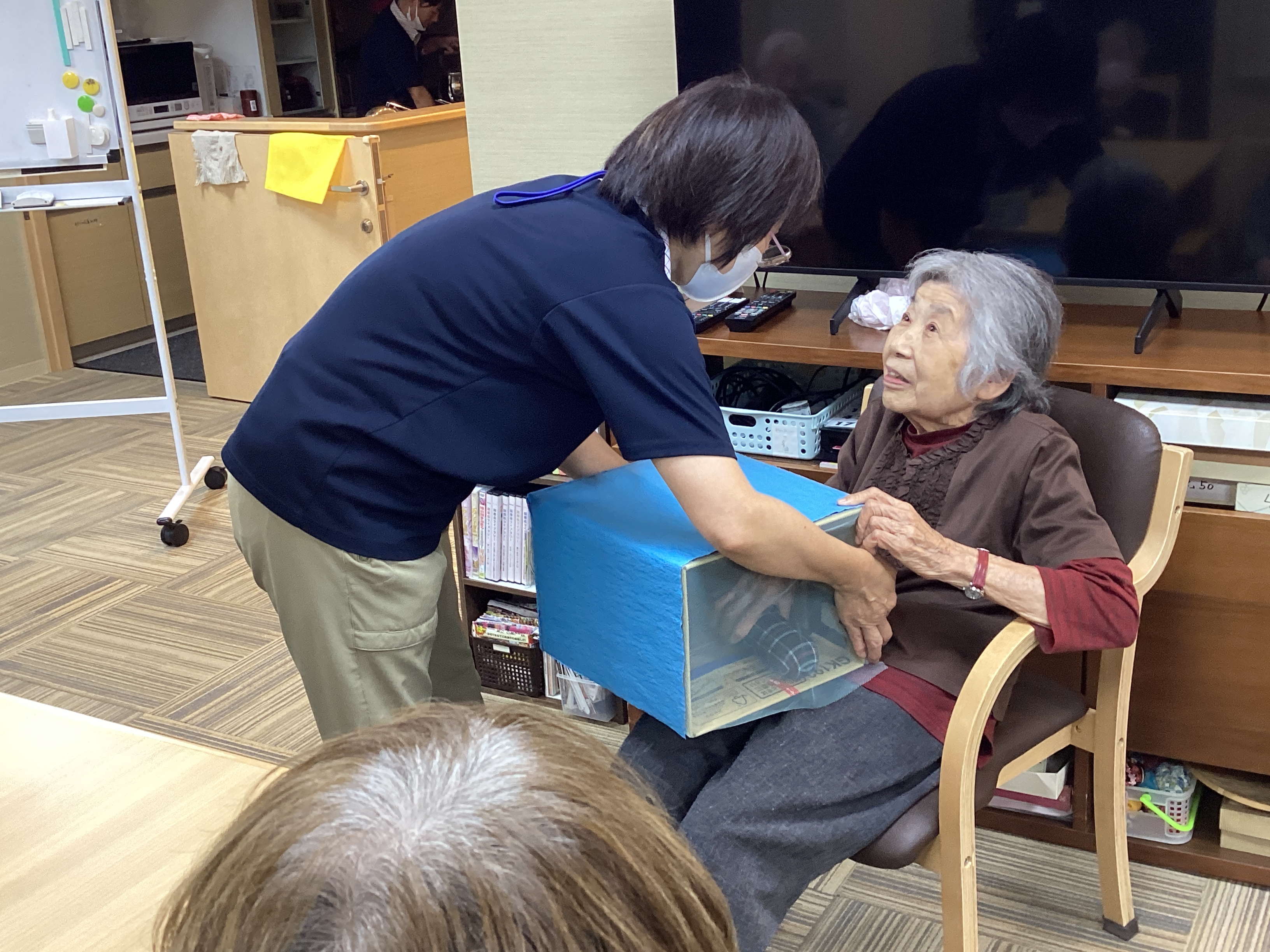 箱の中身はなんだろな⁉️を楽しみました!箱に手を入れ「これは何だろう?」とドキドキしながら触り、考えたり悩んだりされる皆さんの表情が見れました🤔「わかった!」と正解がわかった時には笑顔があふれ、わくわくドキドキの楽しい時間となりました✨