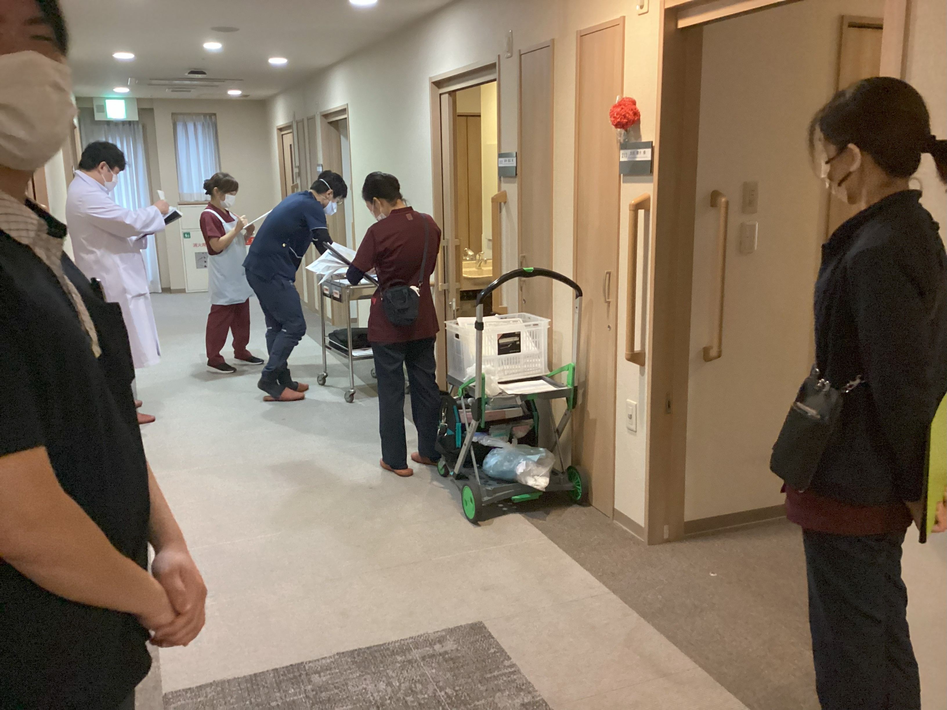 往診の様子の一コマです。 皆さまは居室でお待ちいただき順番に診察いたします。