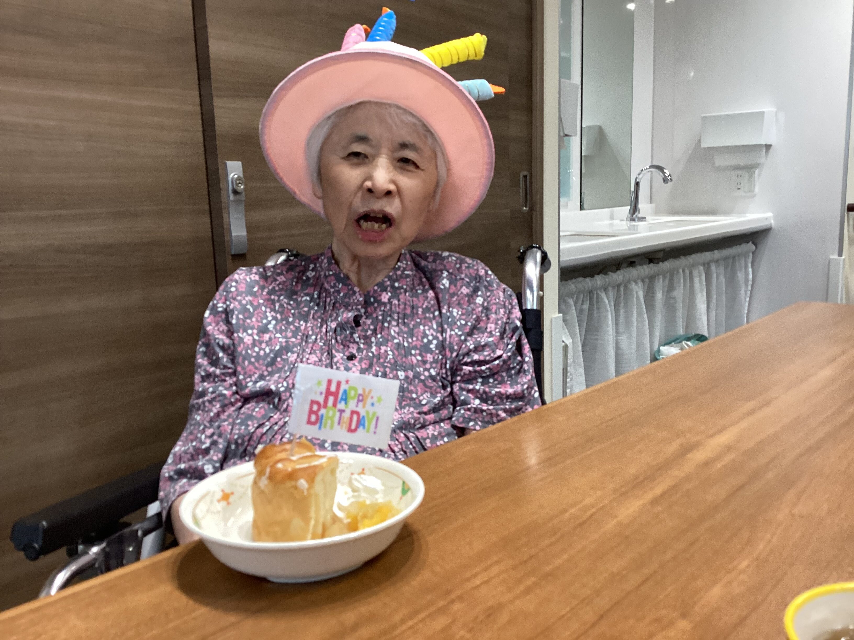 嬉しそうなお顔です。9月と10月の合同お誕生会でした。