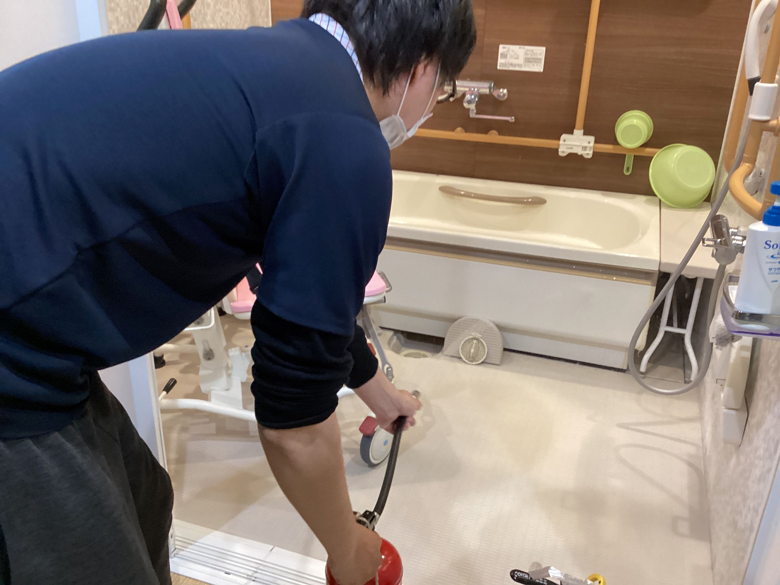 火災、地震を想定して避難訓練を行いました。消防署より水消火器をお借りして初期消火の訓練も実施!『災害は忘れたころにやってくる!!』『備えあれば患いなし』ですね(^_-)-☆