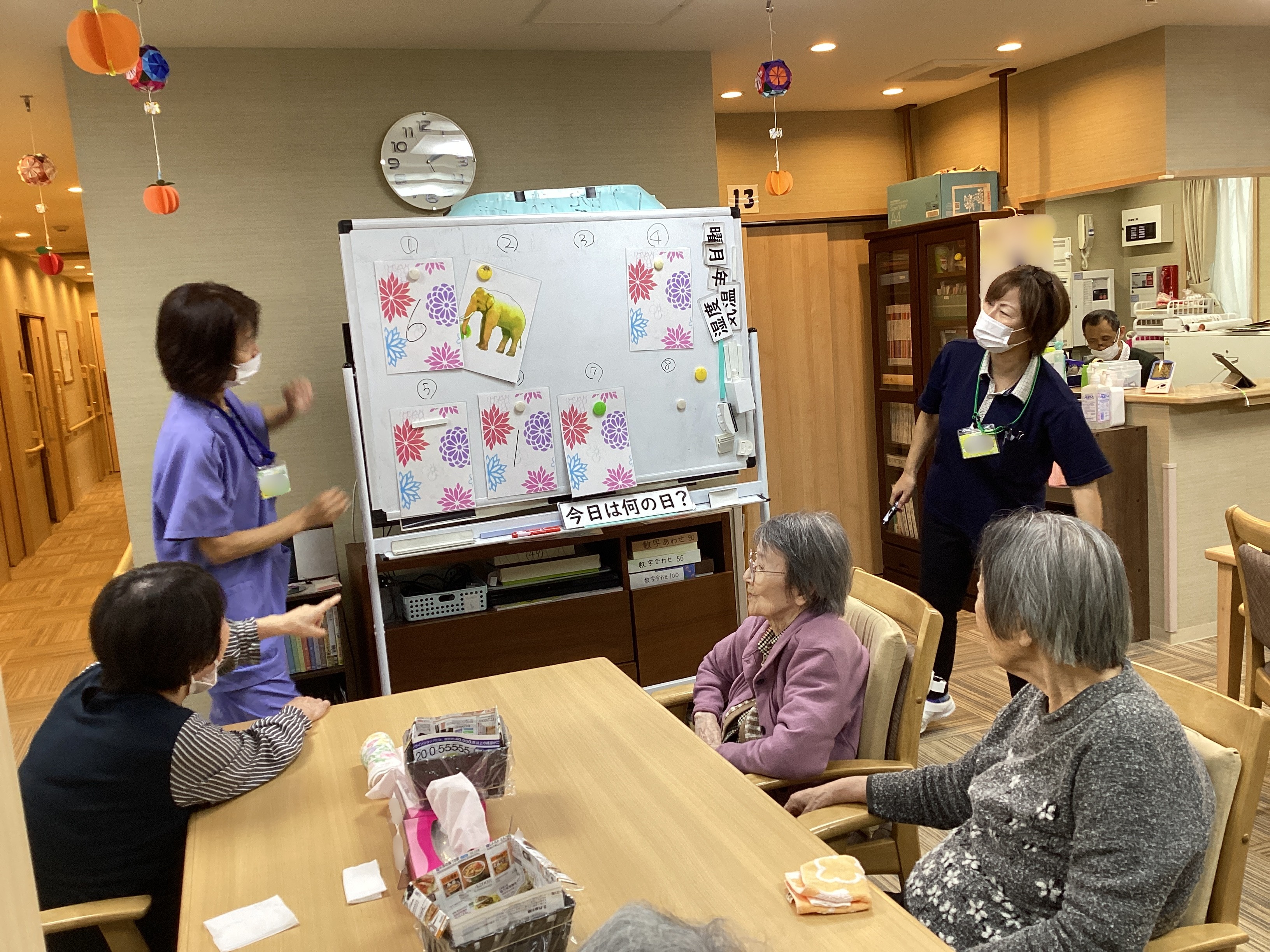 ホワイトボードを使って神経衰弱を行いました🧠「どこだったかな?」と悩みながらもカードの位置を覚えようと皆さん真剣な表情🤔カードのペアが揃うと笑顔と拍手があふれ👏🏻楽しみながら脳トレができ笑いの絶えない時間となりました✨