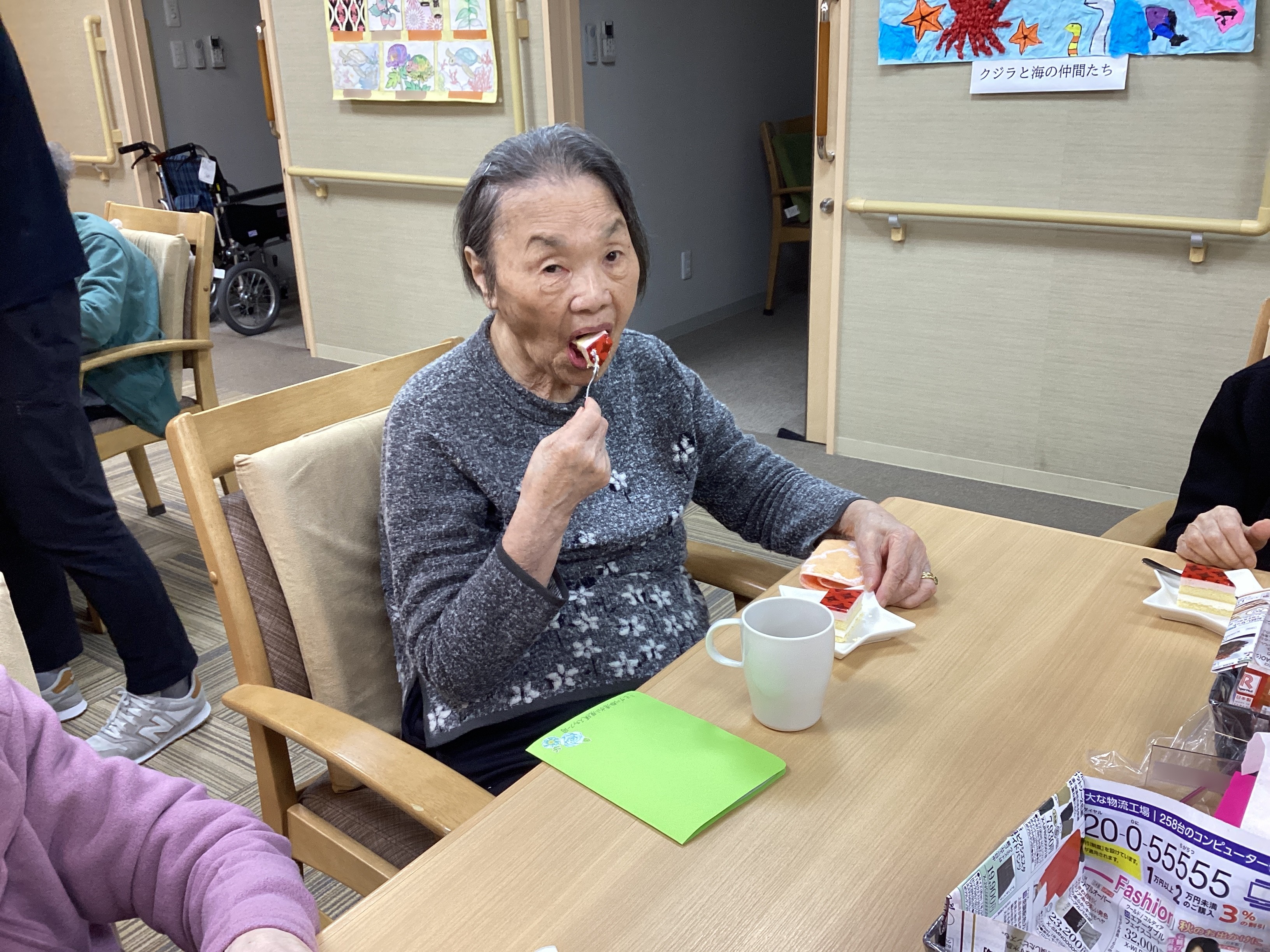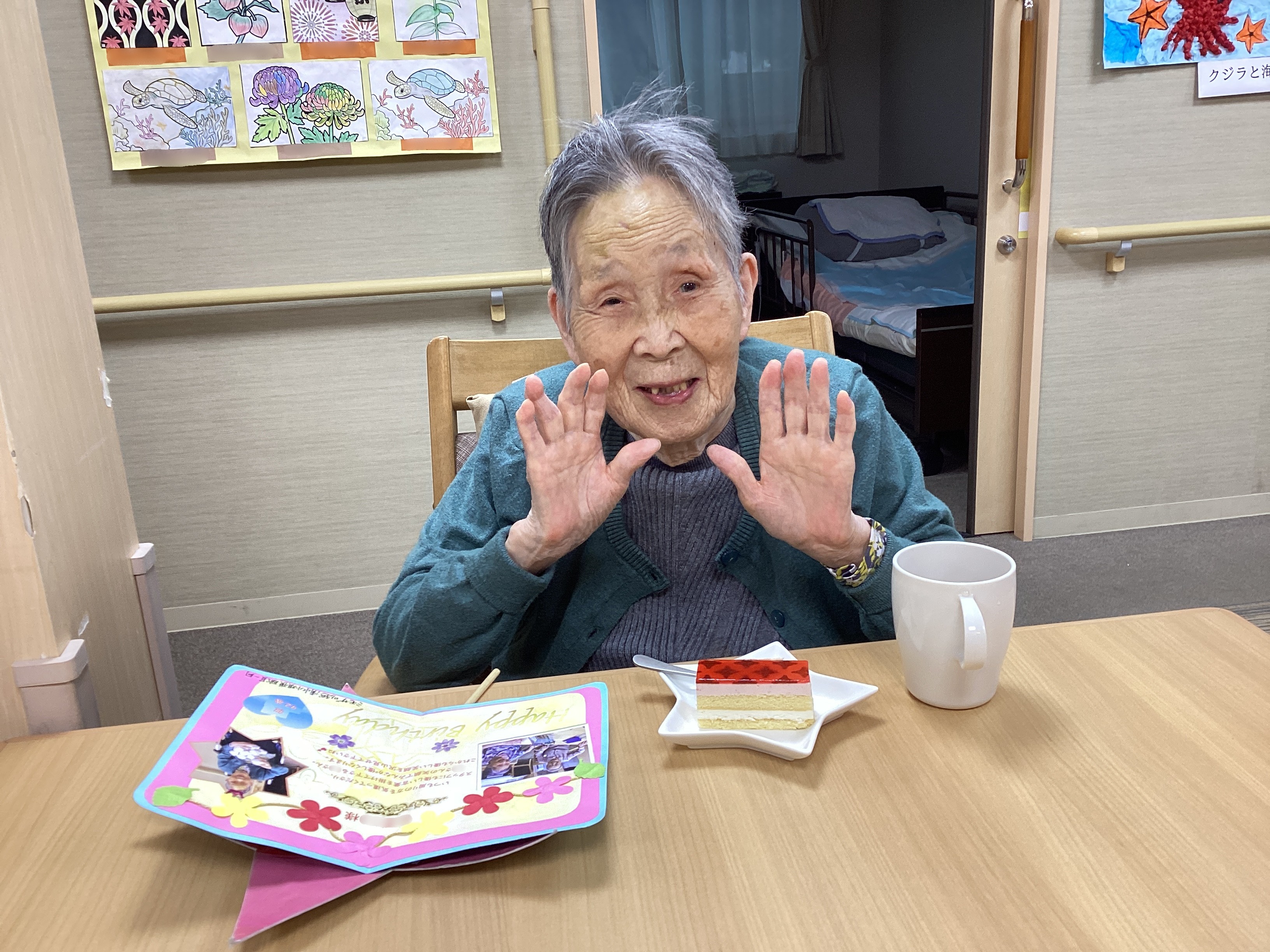 10月生まれの方のお誕生日会を行いました🎉皆さんでバースデーソングを合唱し🎶職員からは心を込めたバースデーカードをプレゼント🎁苺のケーキを召し上がり「おめでとう!」の拍手と笑顔があふれ👏🏻とてもにぎやかで楽しいお誕生日会となりました🍰✨
