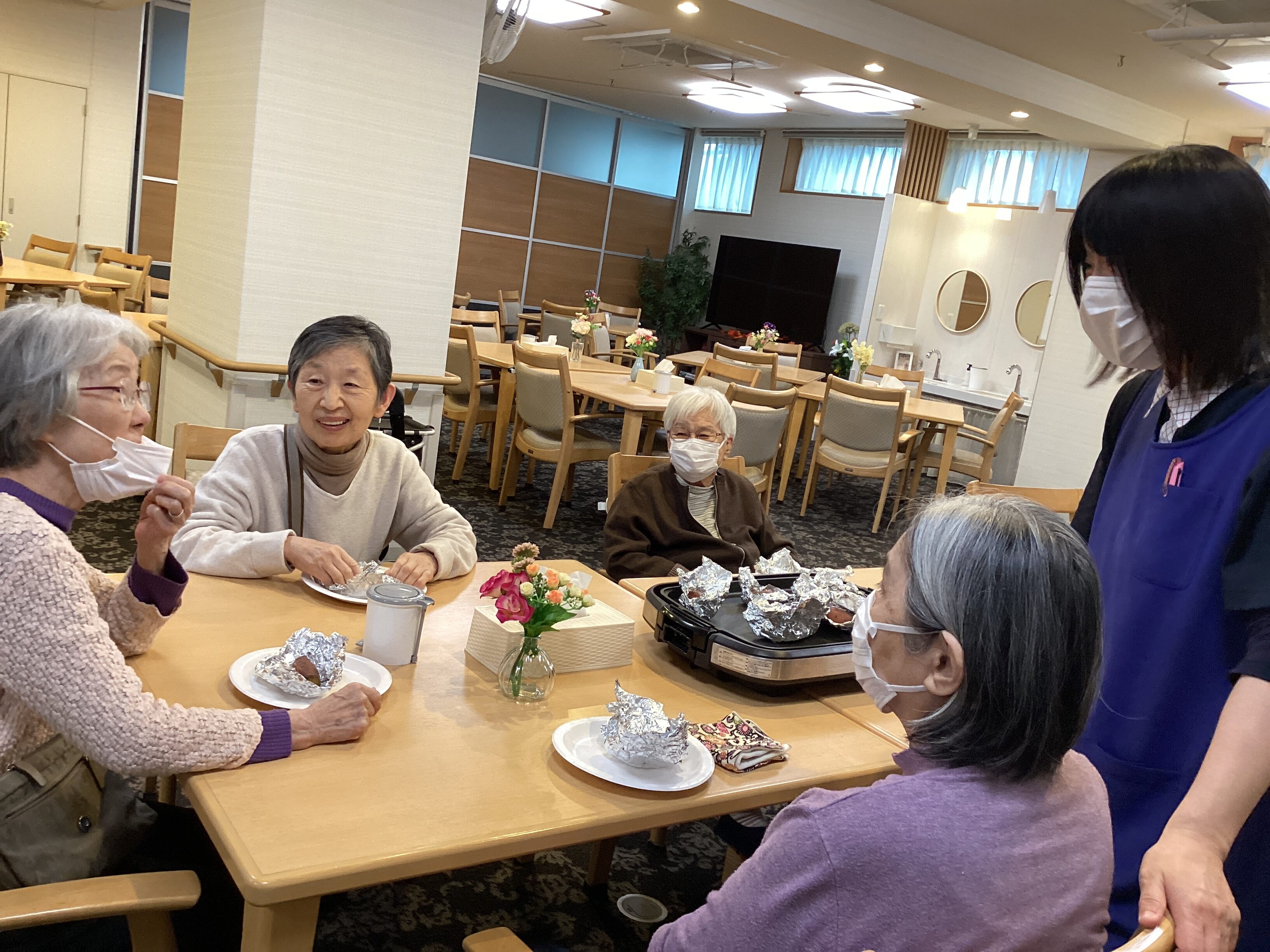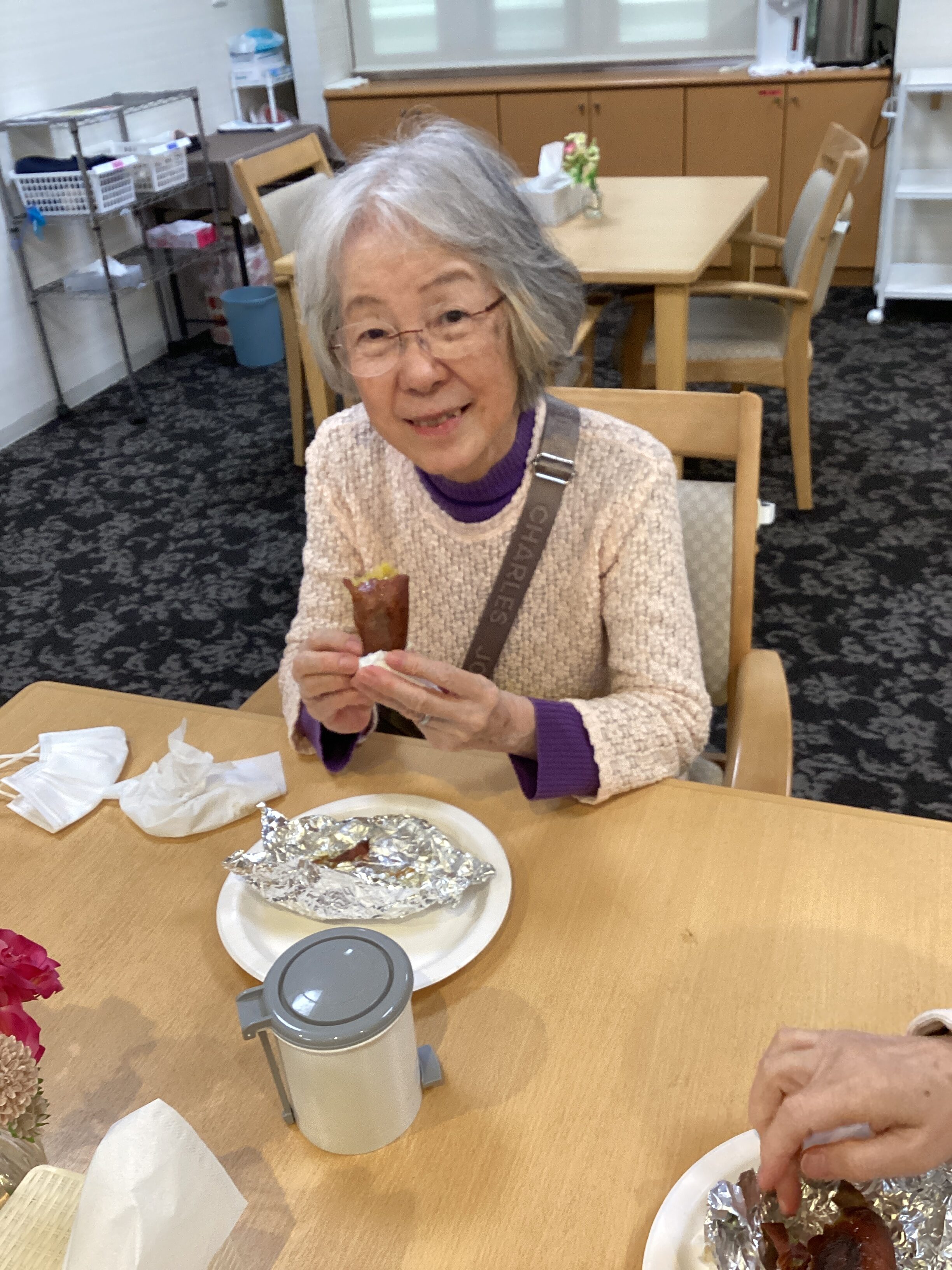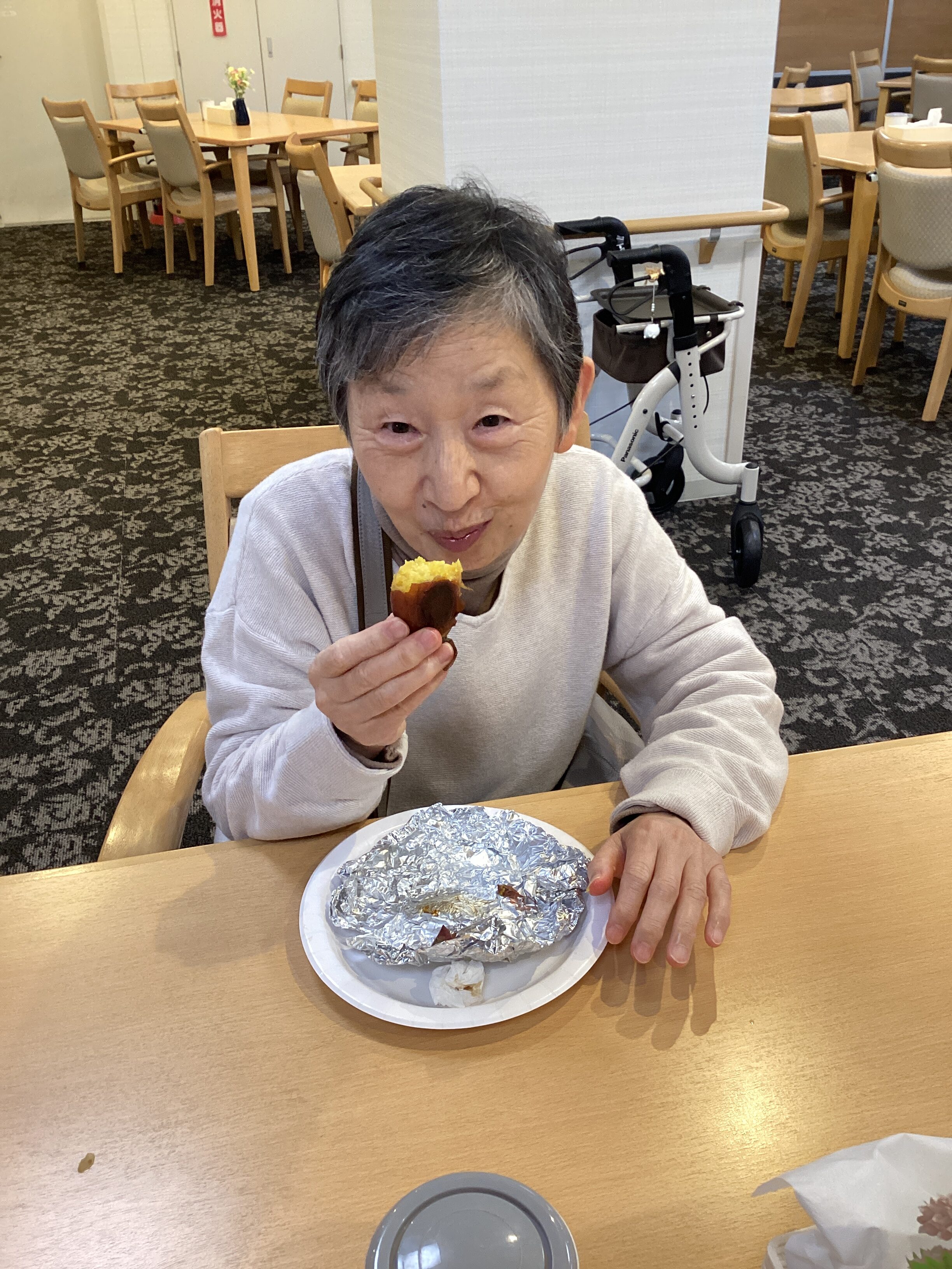 午前中から準備をしていました👍焼き芋のいい匂いが漂って「何の匂い?いい匂いがする」と聞こえるほど・・・「ホクホクして甘かった😋、ふたつ食べていい?」と、皆さんぺろりと完食👏👏👏次回もお楽しみに😆