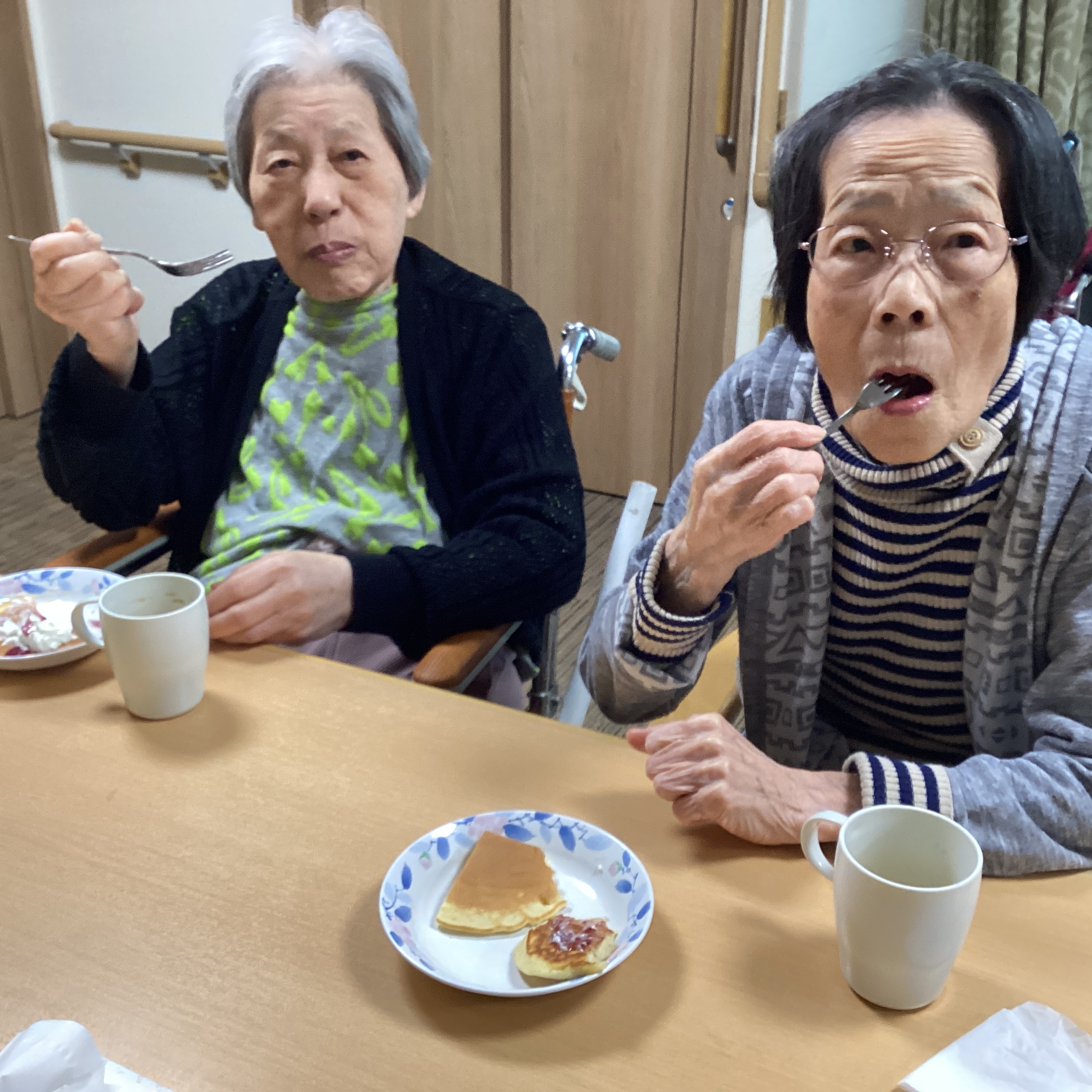 皆様でホットケーキを焼いて、楽しいお誕生日をお祝いさせて頂きました。