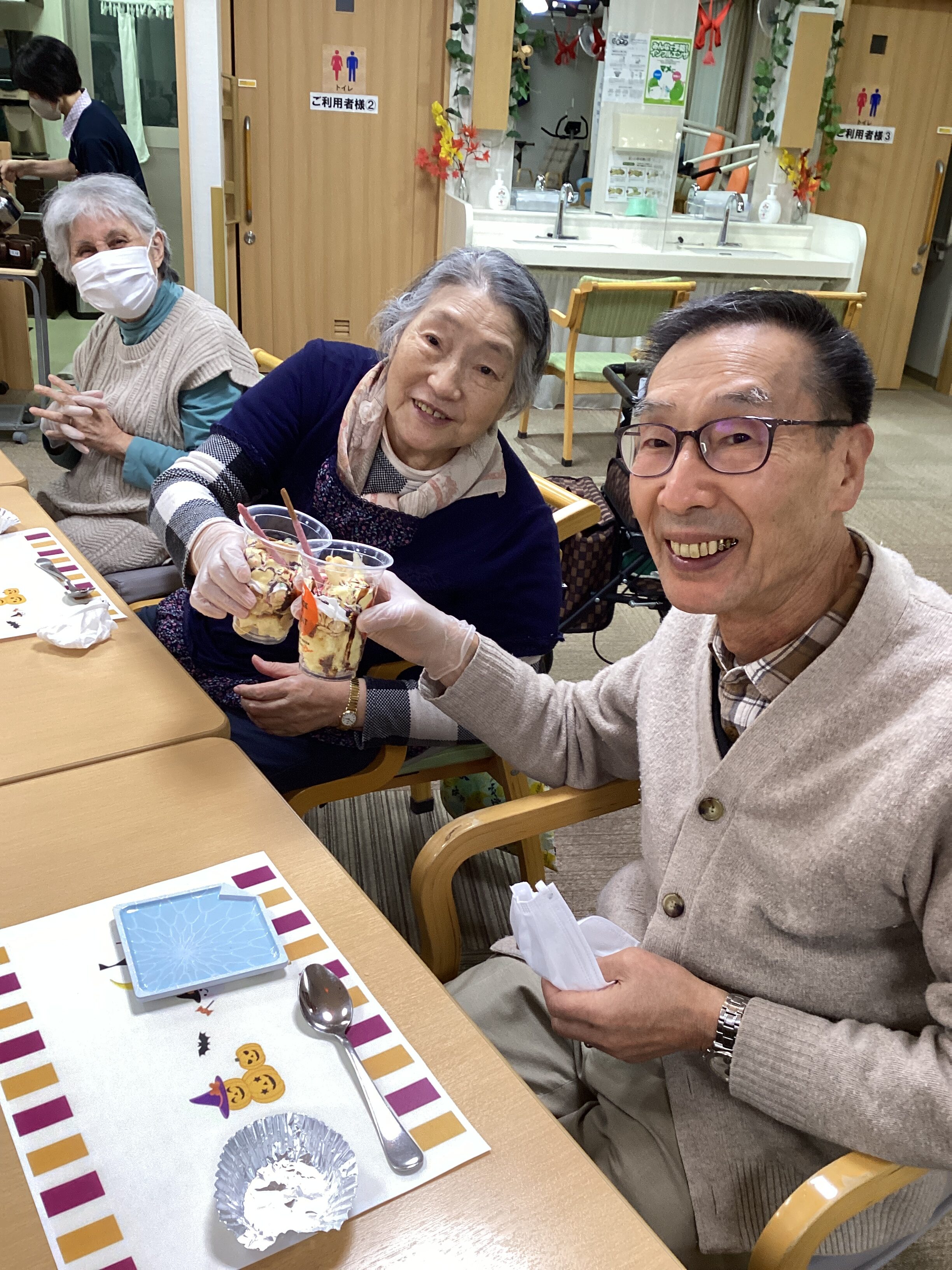 今年のハロウィンは皆でパフェを作りました!皆さん上手にトッピングされ笑顔で召し上がられてました(^▽^)/
