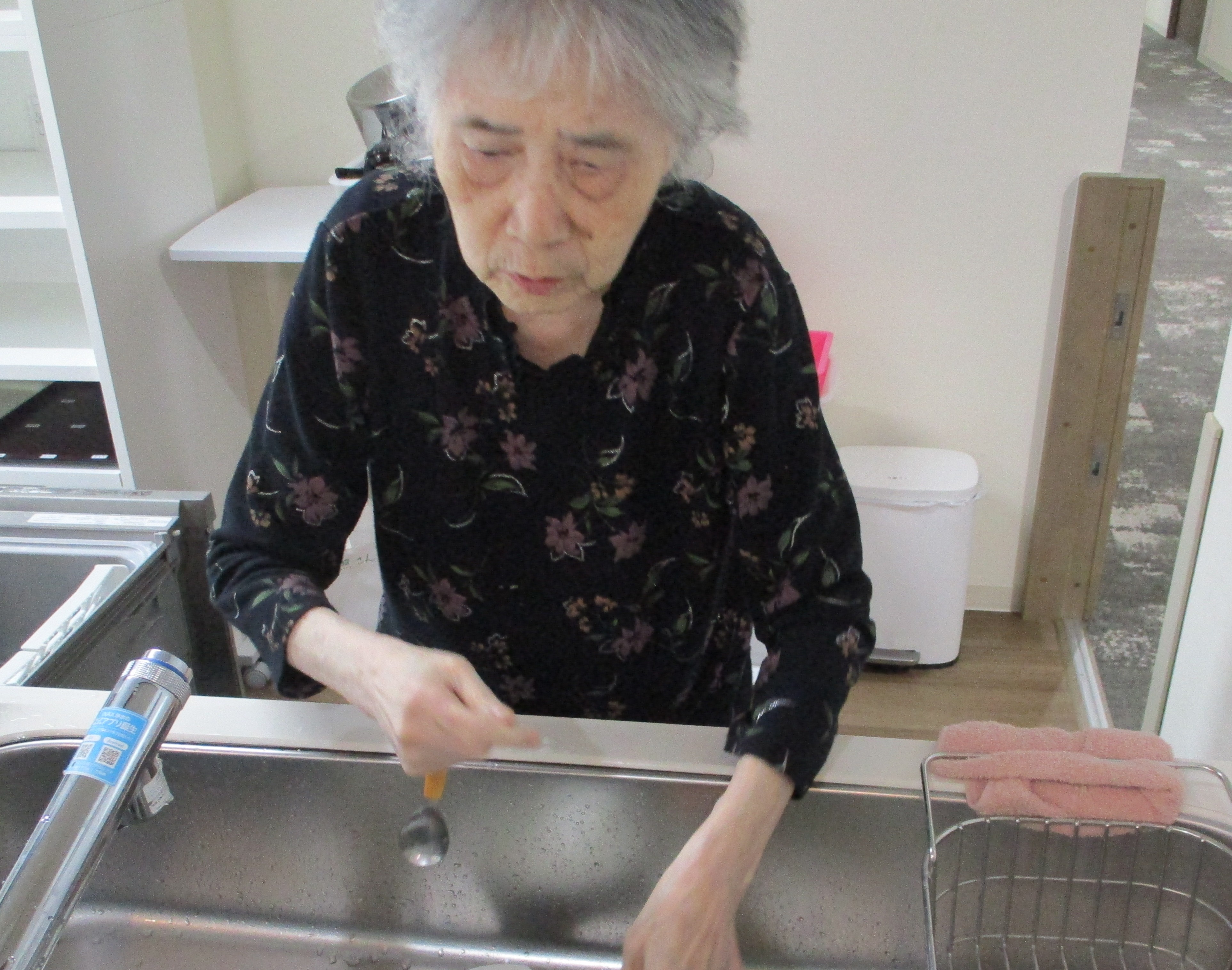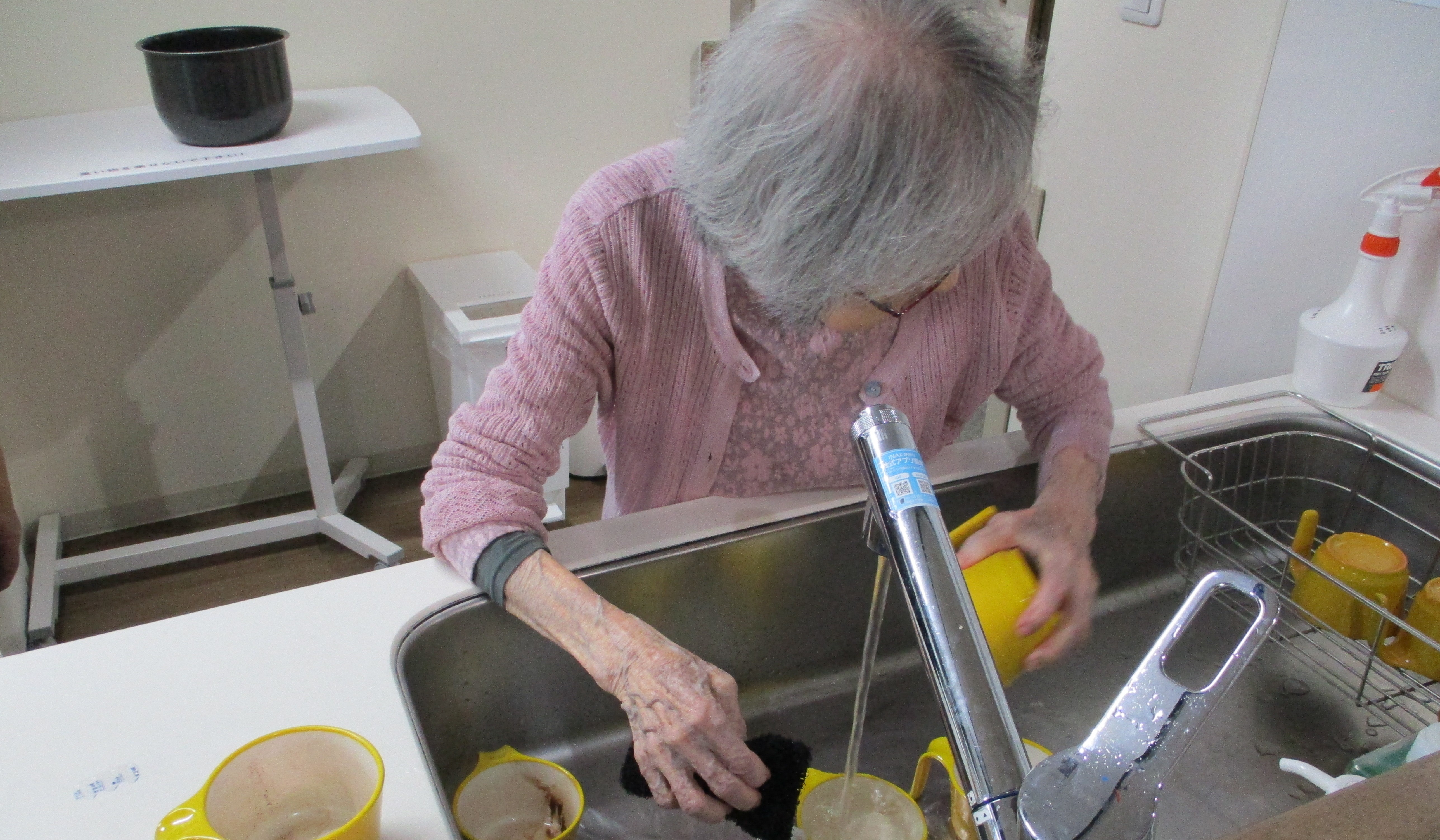 体操をしていただき 食器を洗っていただき 食事の時に使うおしぼりを丸めていただきます。 皆さまいつもありがとうございます。