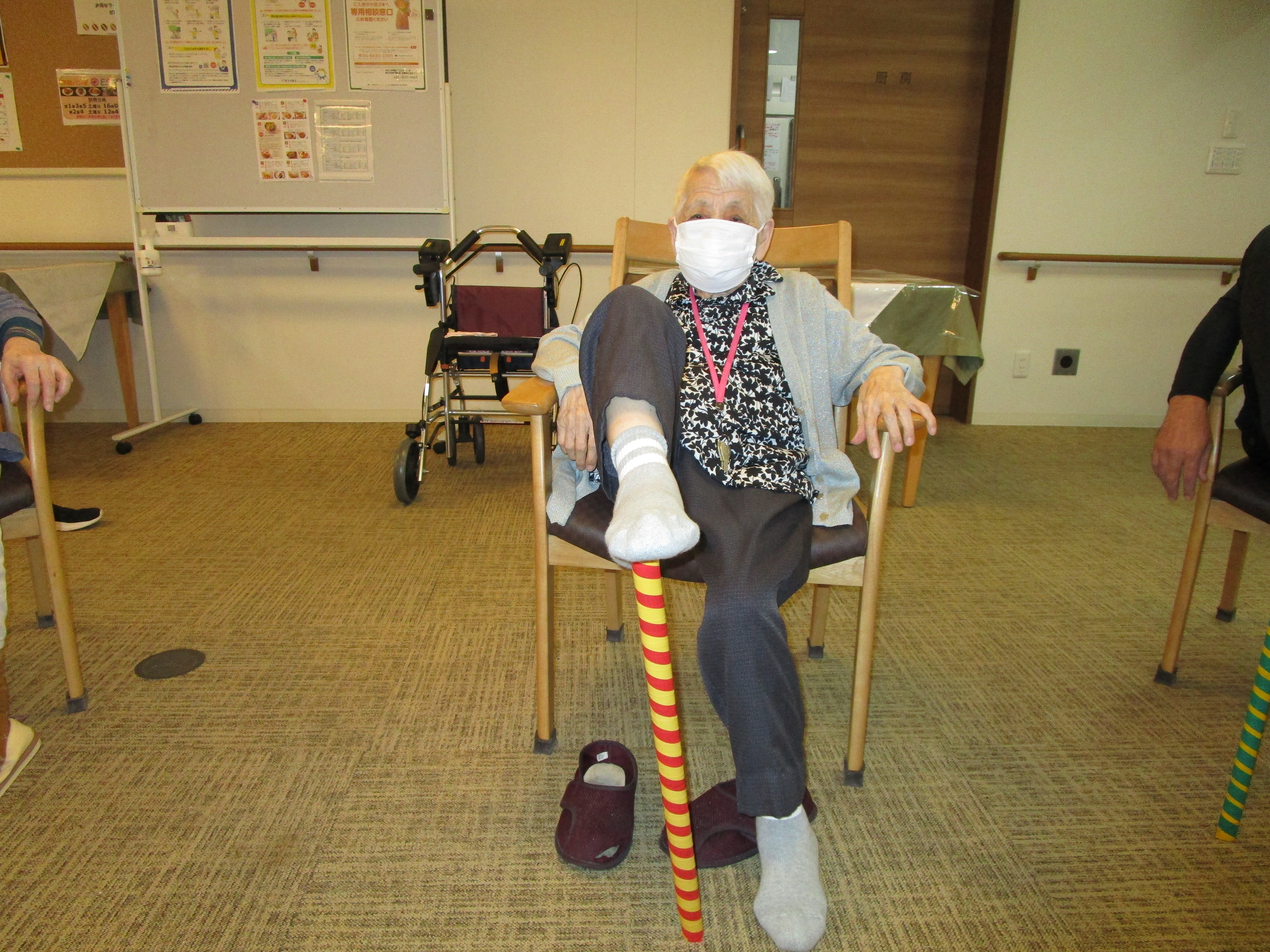 ゆずリハ先生による空中にいるような棒体操をしてもらいました(≧▽≦) 難易度の高い技も皆さんどんどんこなして凄すぎです\(^o^)/ 足をずらないように歩くにはしっかり足をあげて歩くやり方も教えてもらいました😆