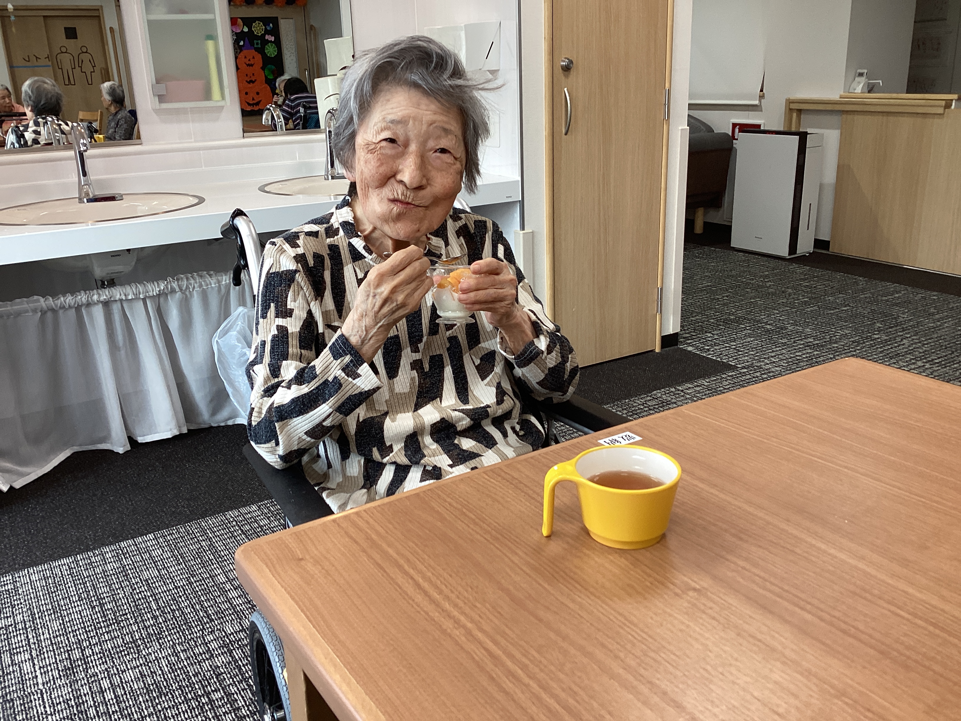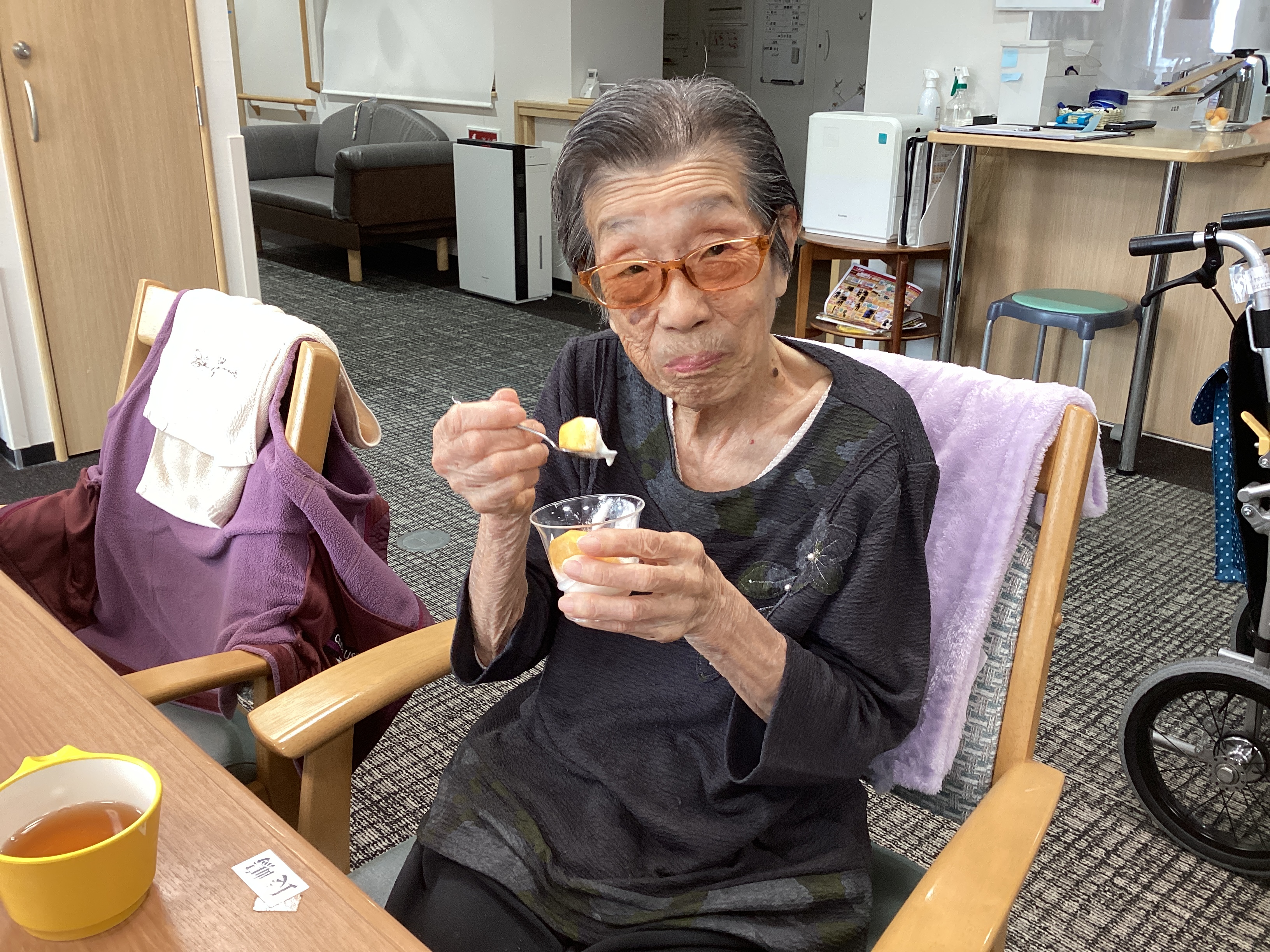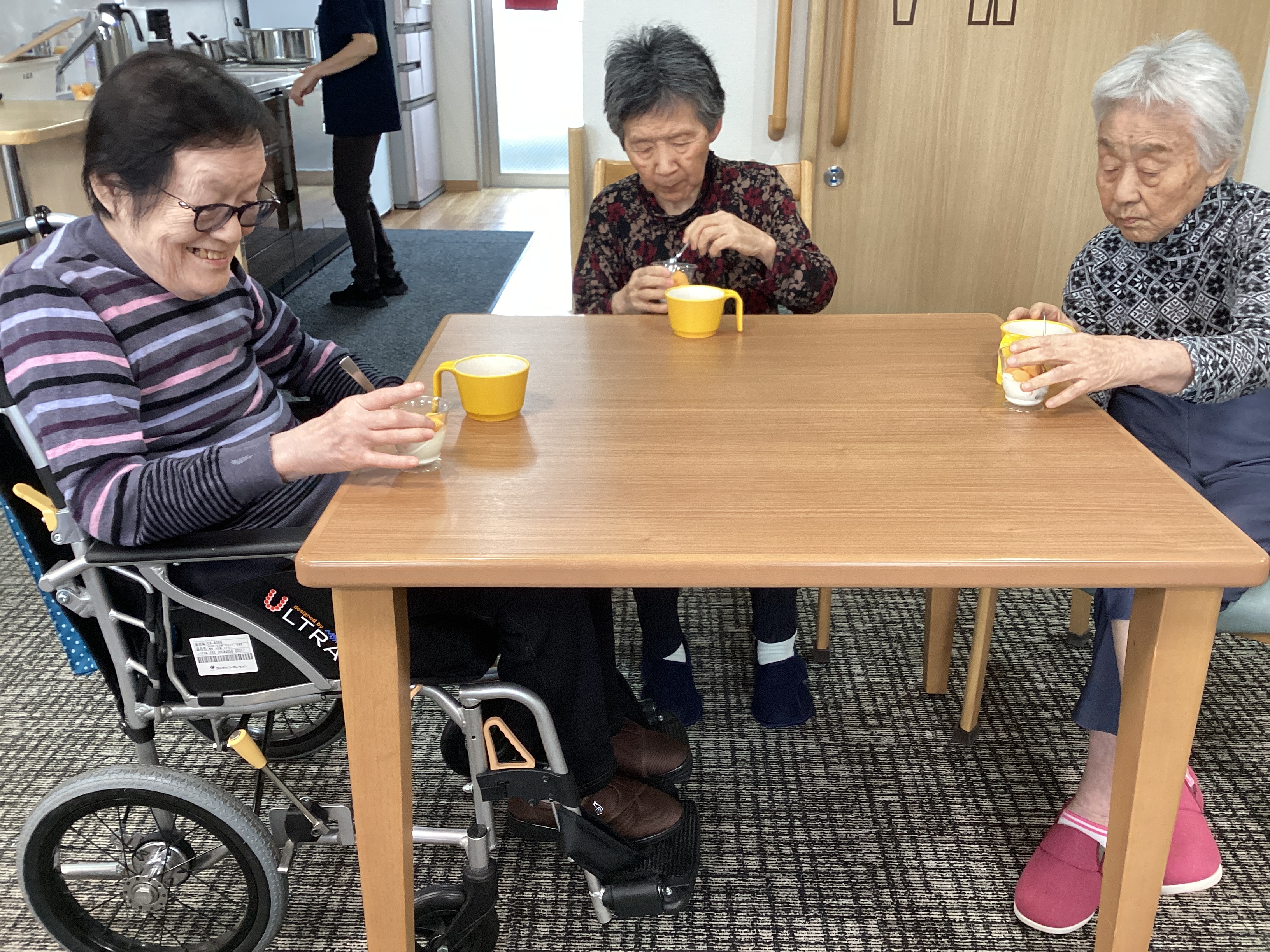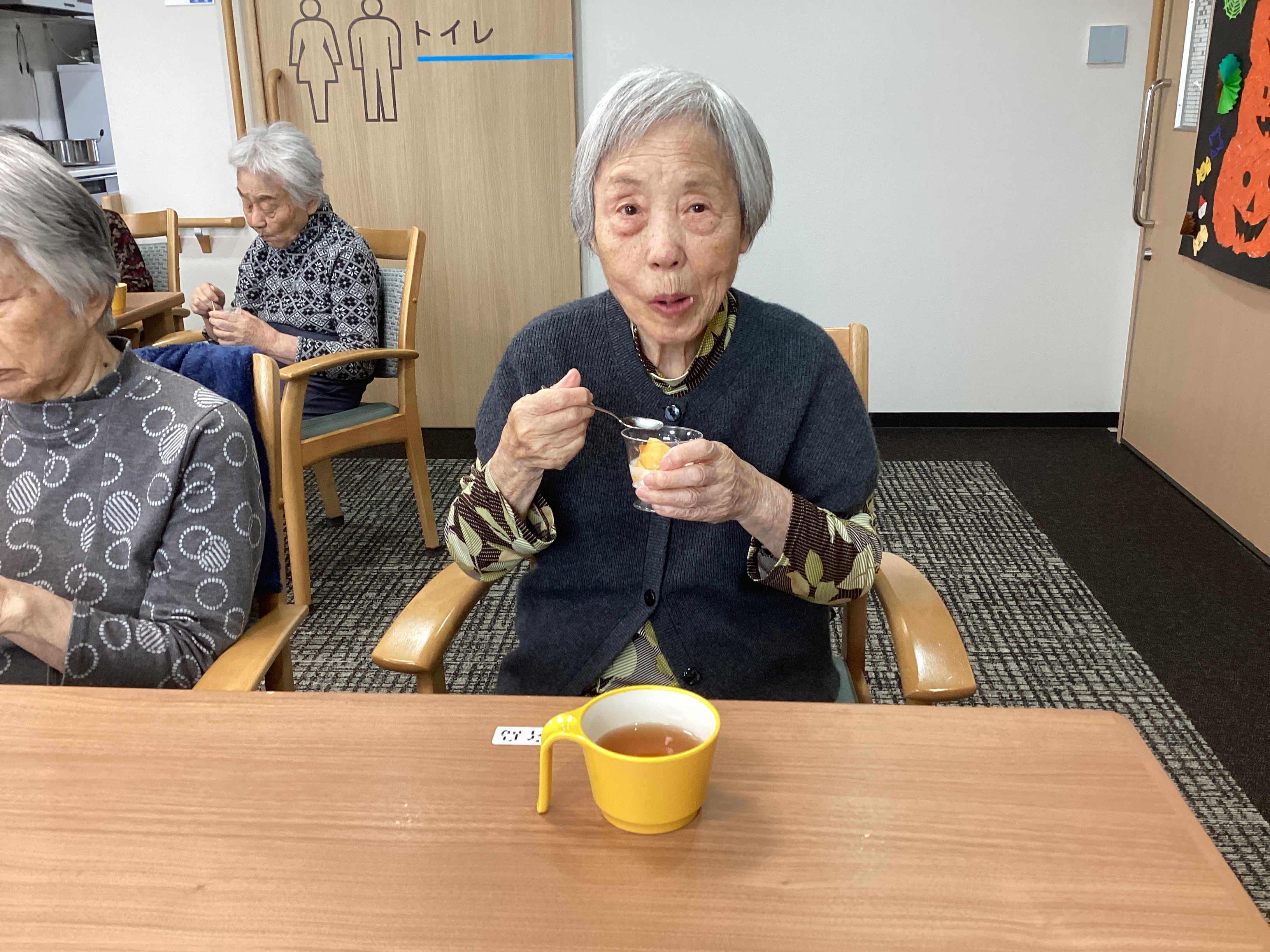 オーナー様からいただいた柿をヨーグルトにのせてみました。 甘くておいしいと大好評でした! 旬の果物は最高ですね😊