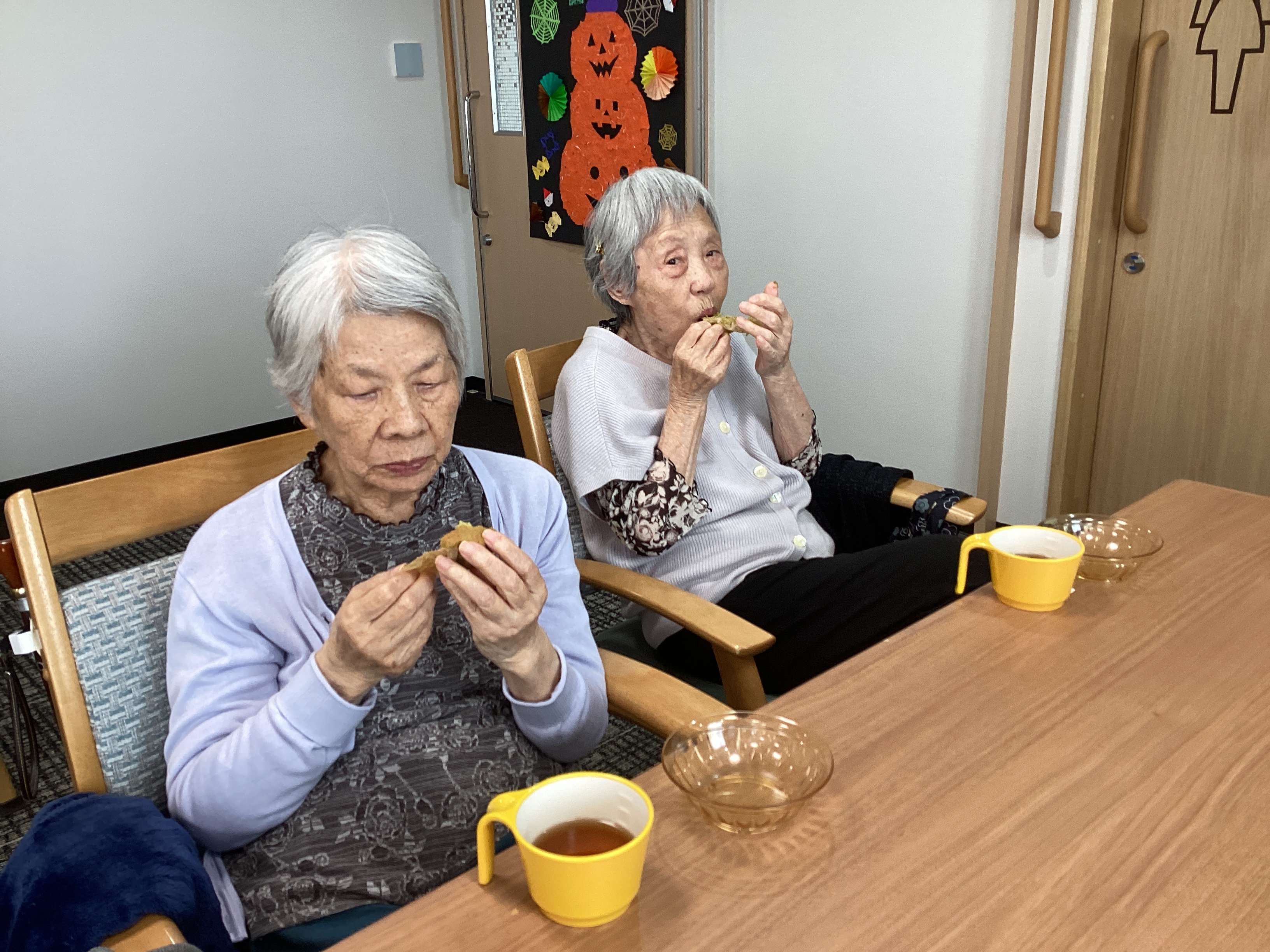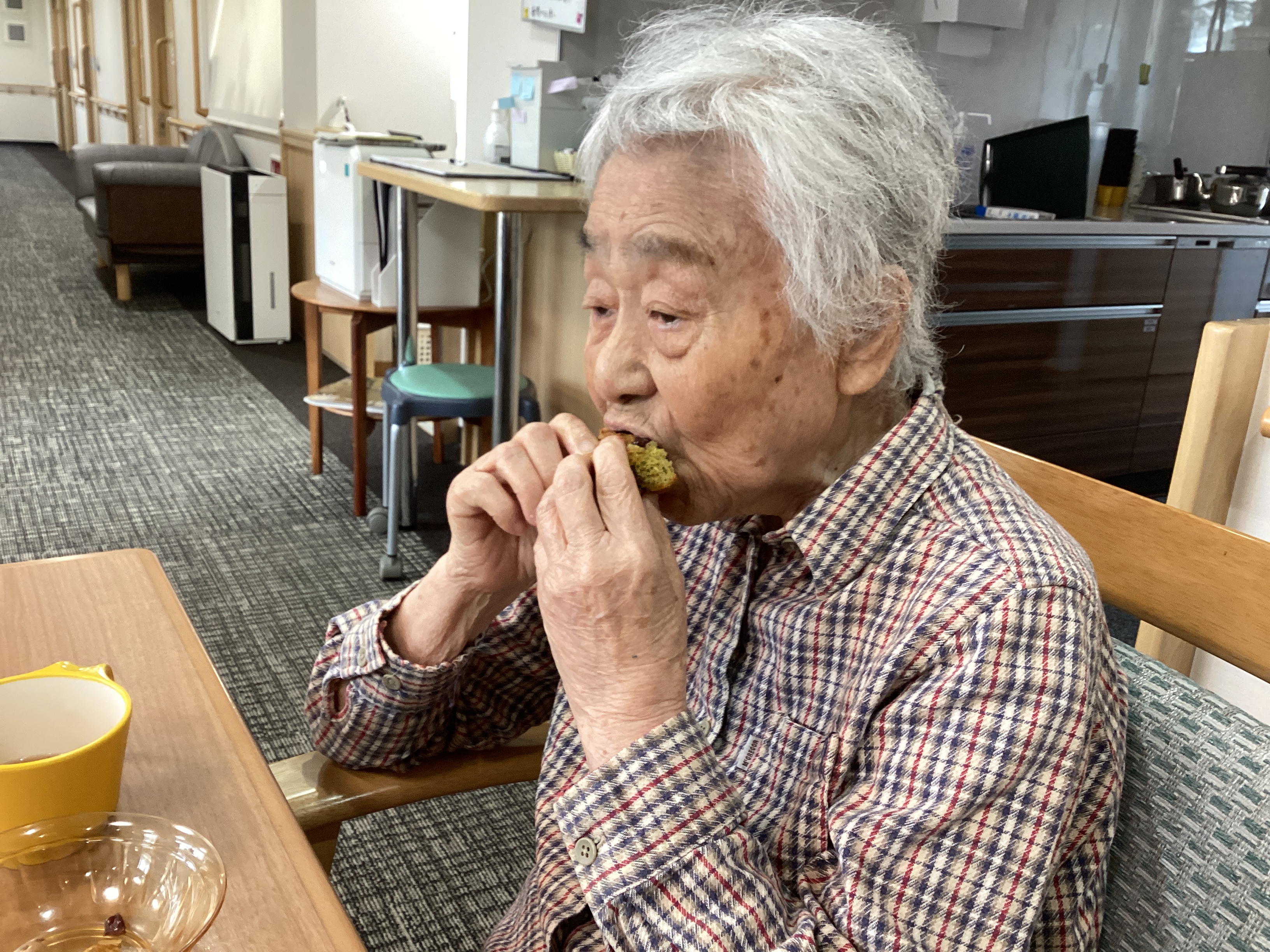 この日のおやつはスタッフ手作りの抹茶あずきケーキでした! 和菓子好きな皆様にはとても好評であっという間に食べました。 おいしそうに食べる姿を見ると作り甲斐があります😊
