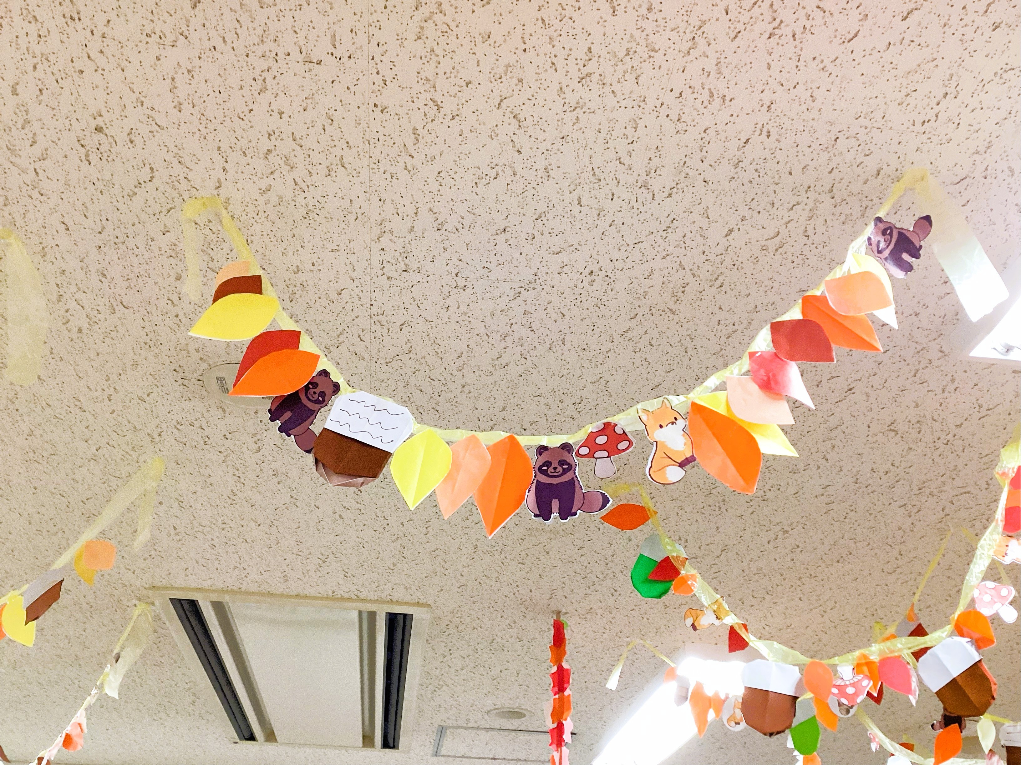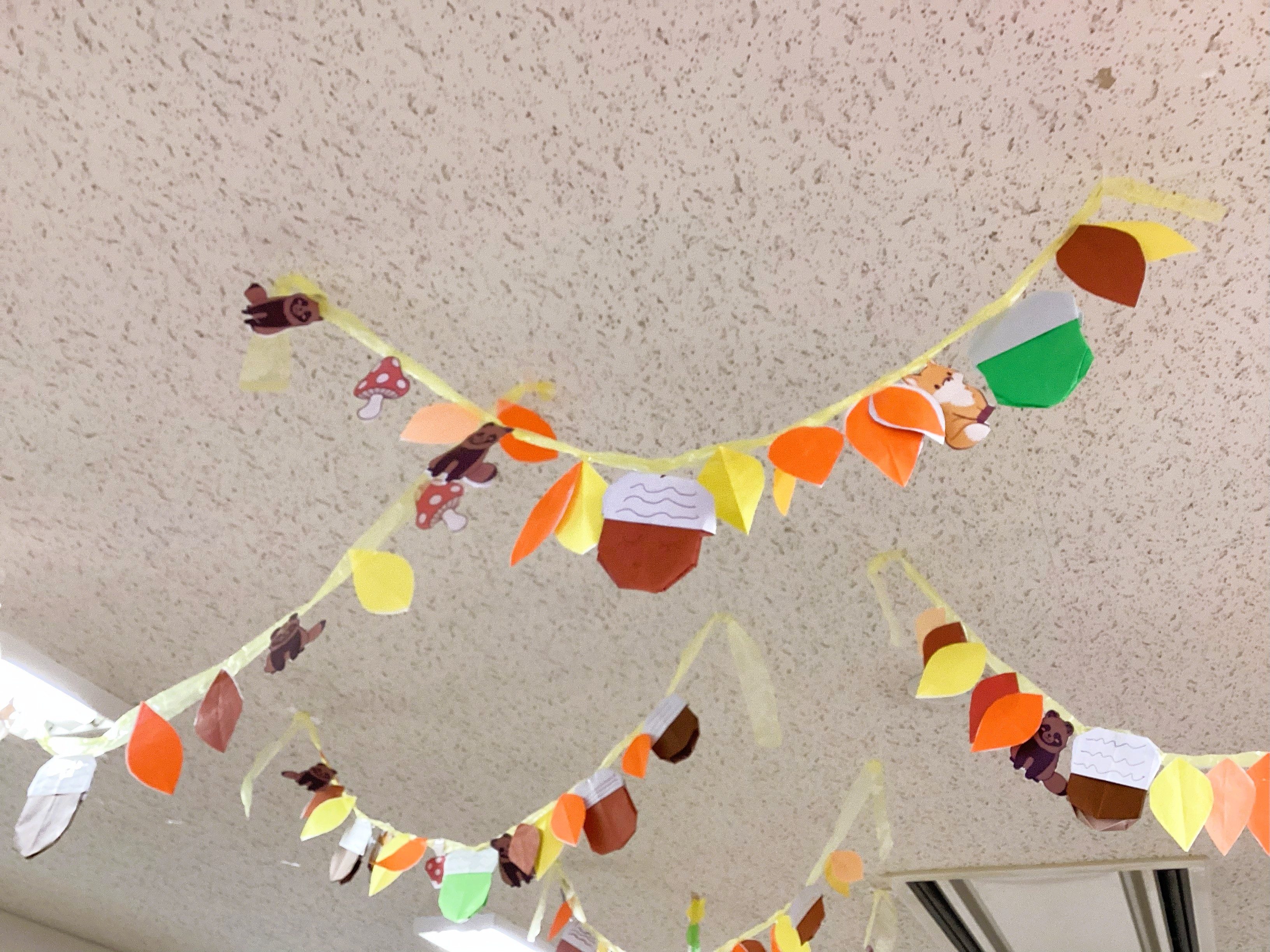 11月は10月の紅葉飾りに動物やどんぐりなど秋を加えて、更に秋を感じる雰囲気となりました。