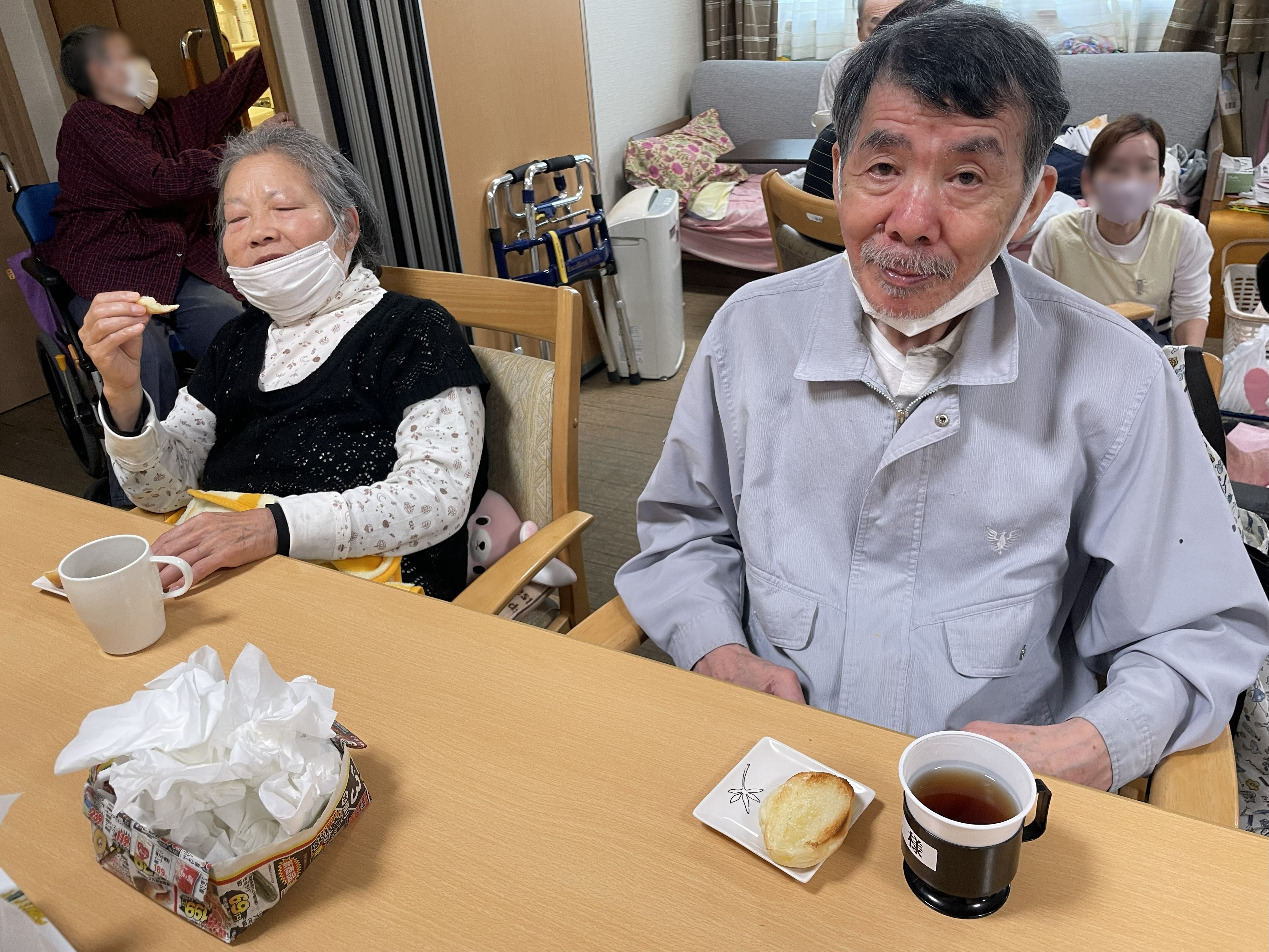 11.7 おやつレクでロールパンにバターとシュガーを塗って こんがり焼き上げました🥰 出来立てを召し上がっていただいたので喜んでいただけた様子でした😋