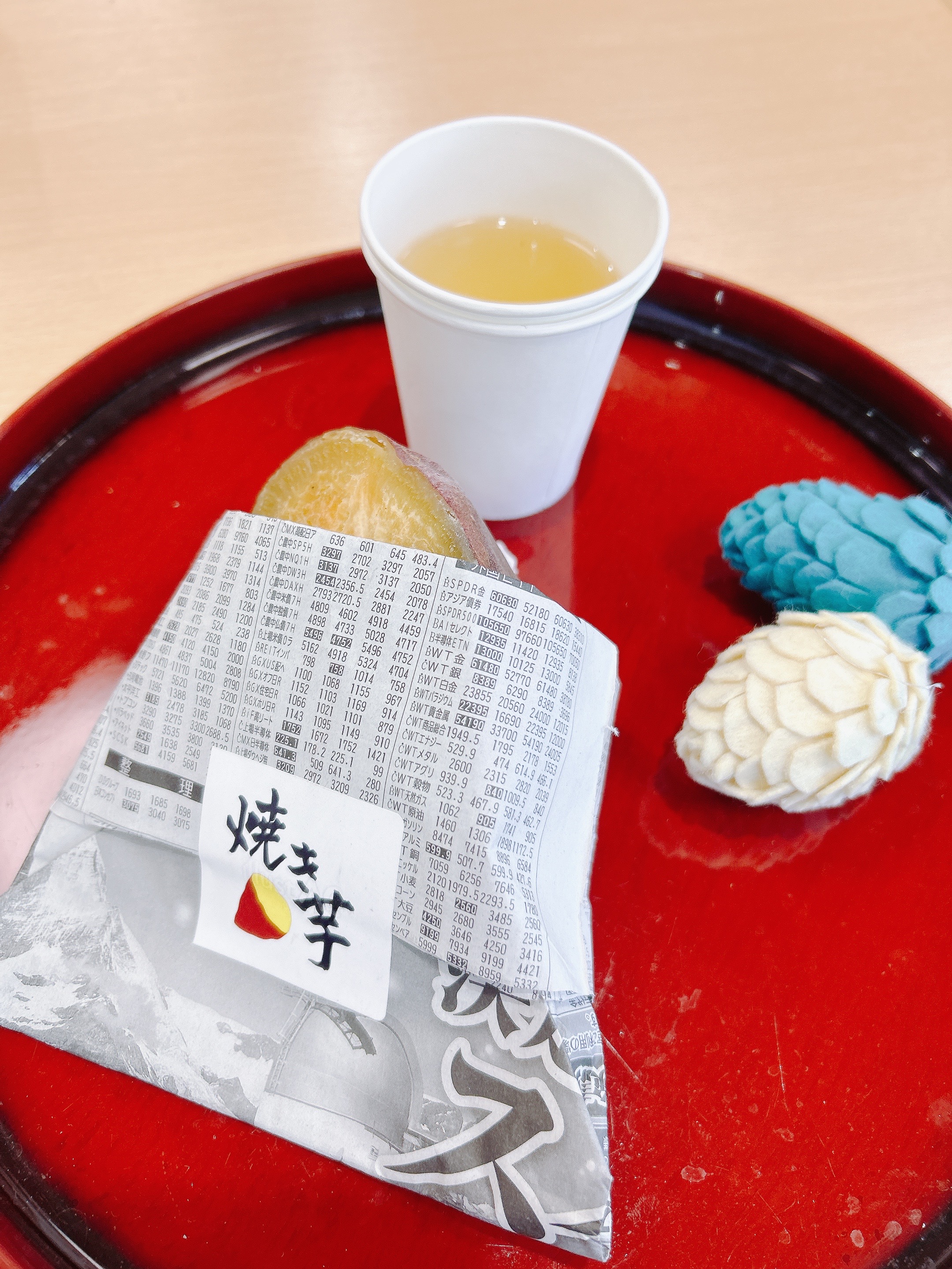 皆様の大好きな焼いもを作りました。今年は紅はるかでホクホクの焼き芋でした。 緑茶と一緒にどうぞ💛