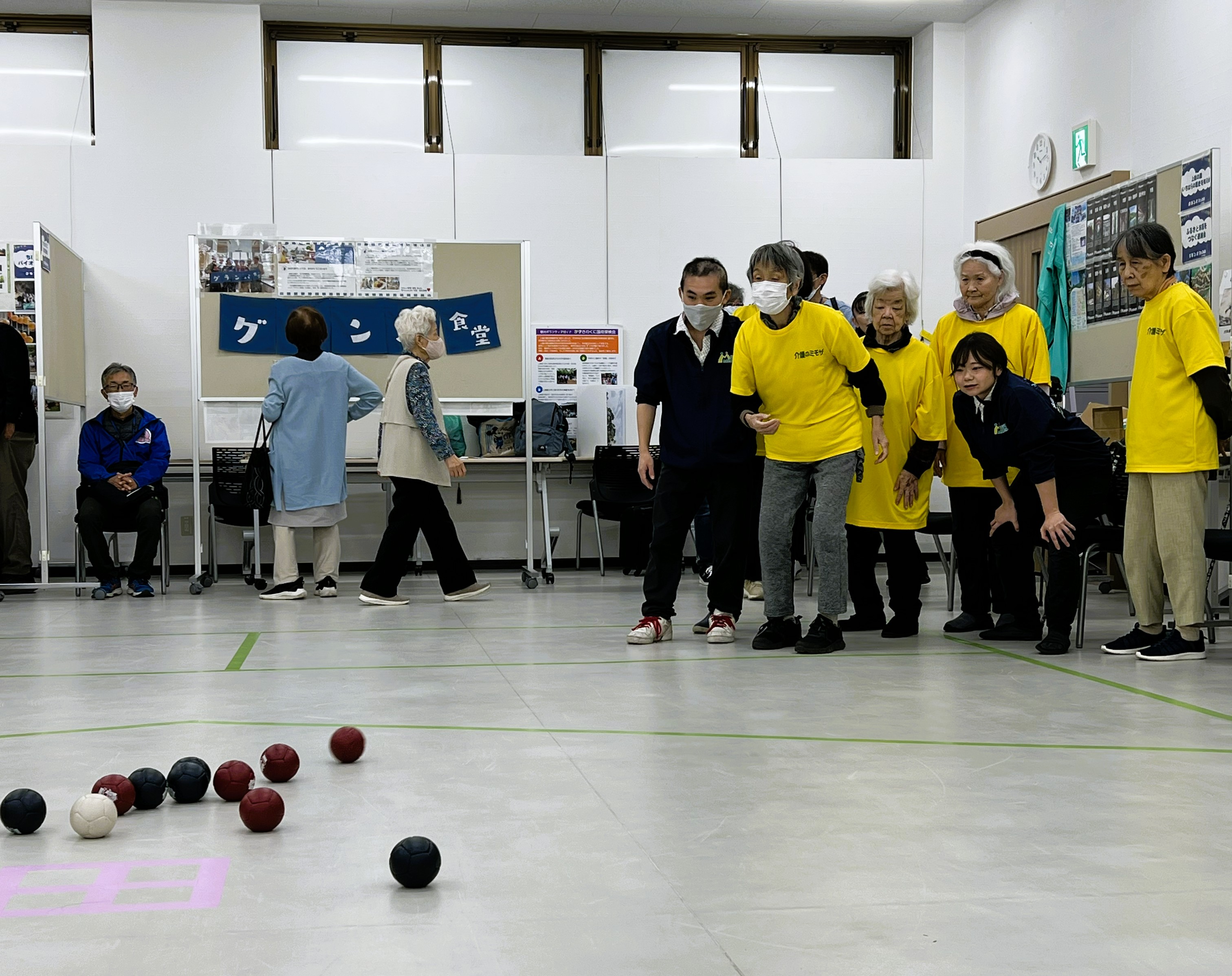 利用者様と地域の皆様でボッチャ交流してきました!㏌グランパカップ ということで、豪華賞品をかけた”本気”の勝負!!グランパフェスタの様子も後程大公開★ ご利用者様と一緒に大白熱!スーパープレイの連続で、さあ!結果はどうだっ!!