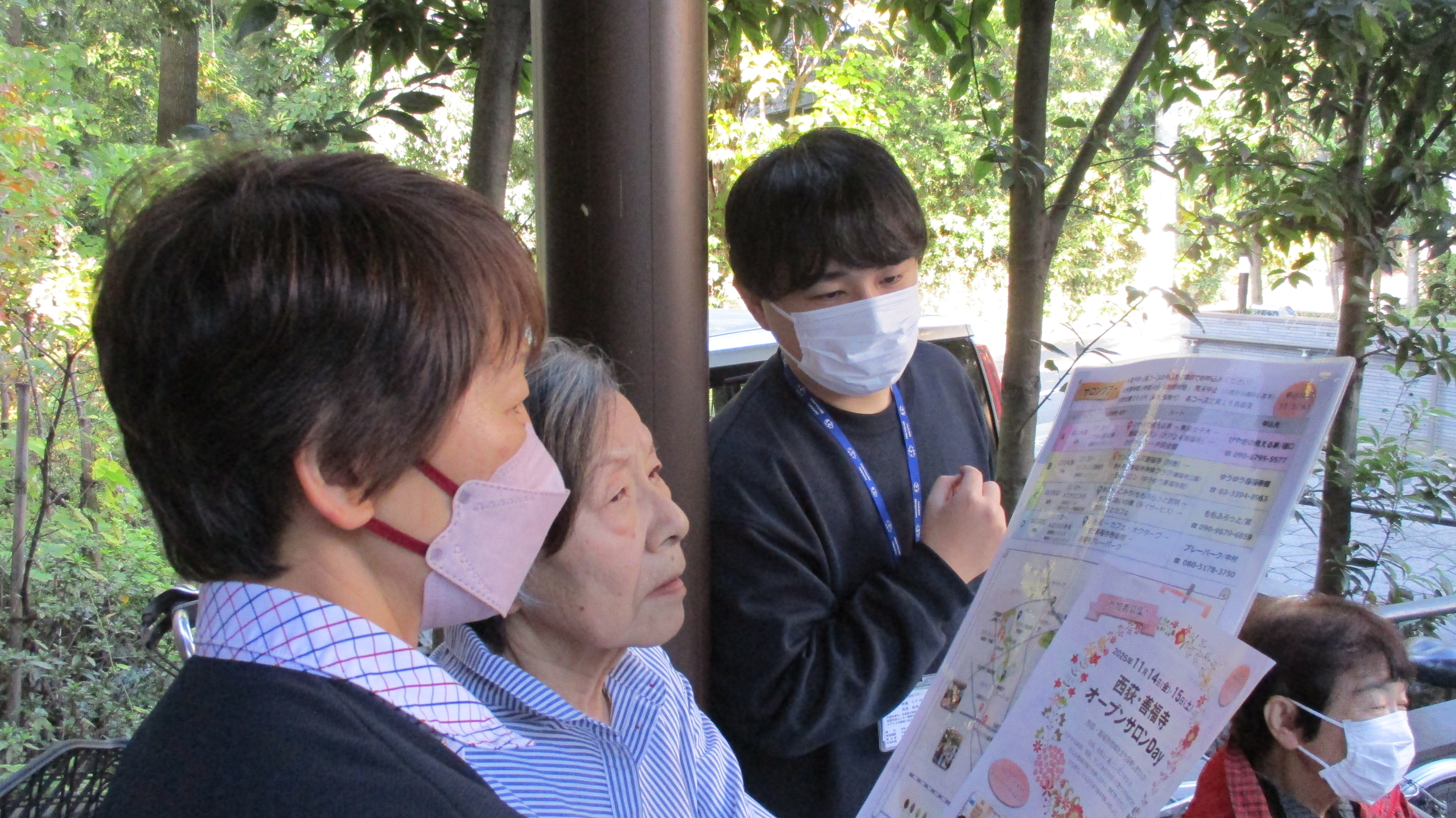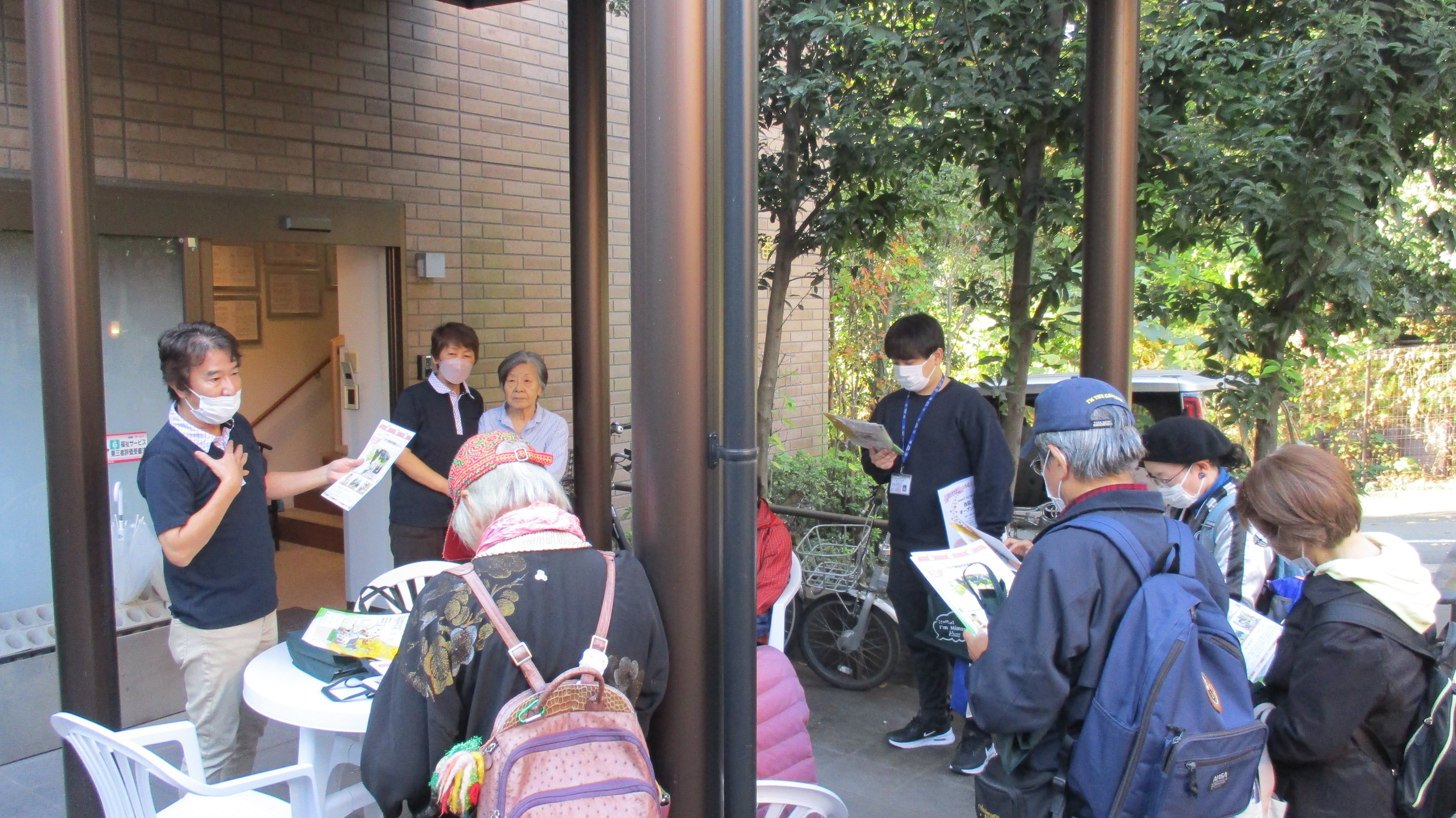 地域包括支援センターケア24が主催で『地域で育ったサロンに立ち寄り、街歩きをたのしもう』というイベントに今年も参加しました。10数人の地域の方々が訪問され、施設の内容をパンフレットやミモザ通信、社報を入れ施設長が説明しました。