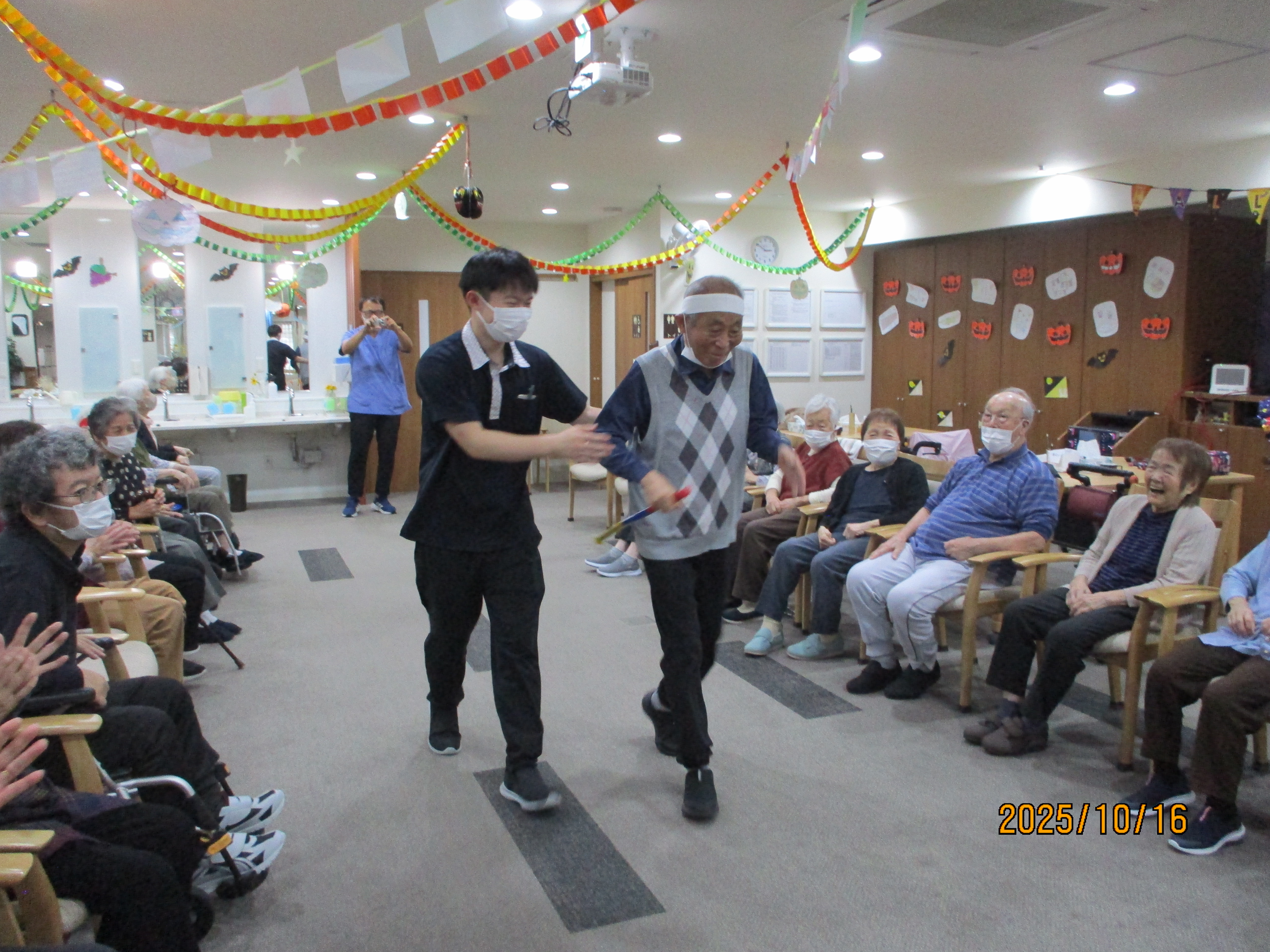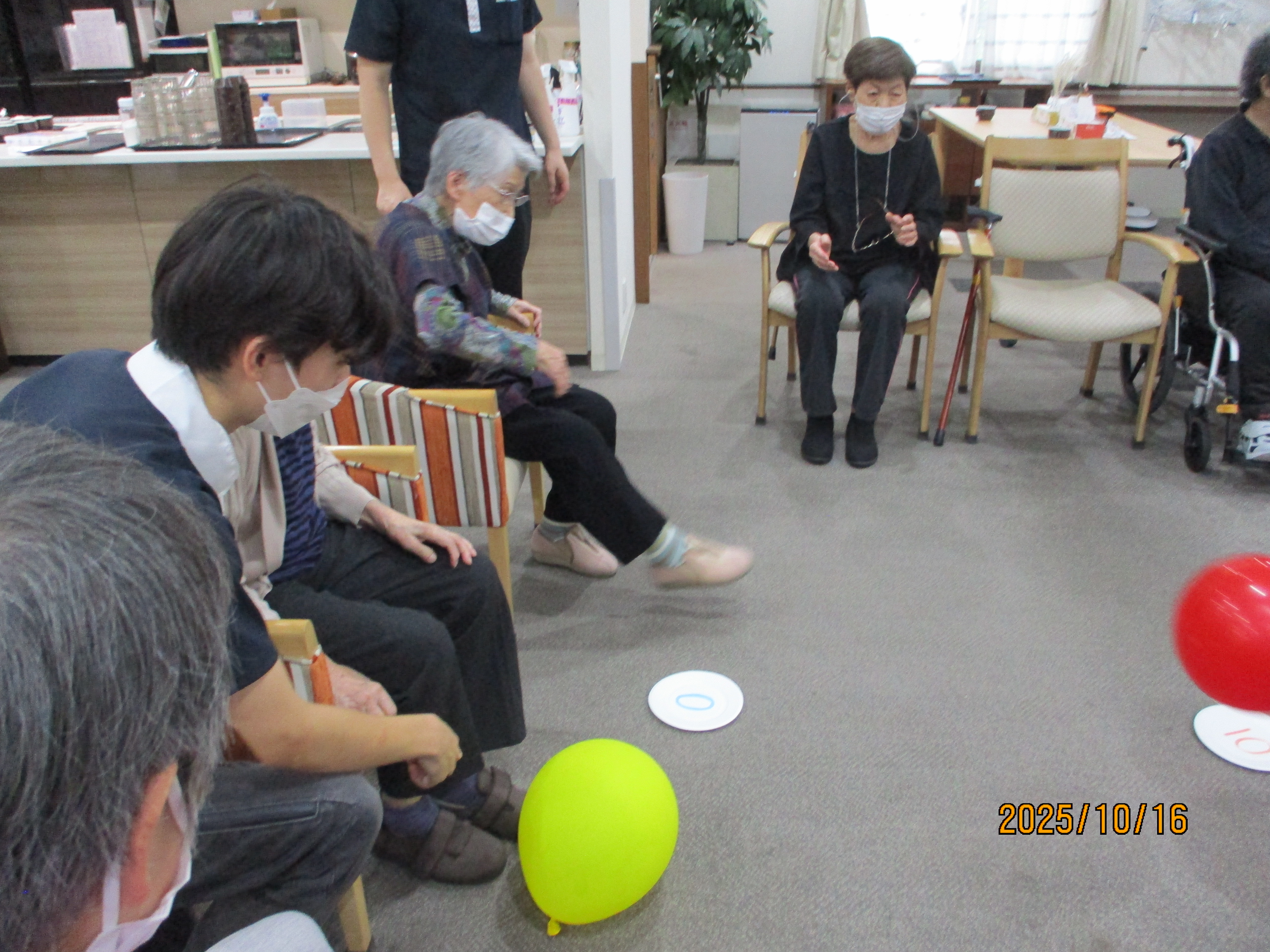 秋といえば、「スポーツの秋」ということで江戸川鹿本ではミモザ大運動会を行いました! 種目は、玉入れ・しりとりボール送り・風船飛ばし・リレーの4種目で、大変盛り上がりました! 皆さんにメダルを贈呈し、記念撮影を行い、良い思い出となりました!